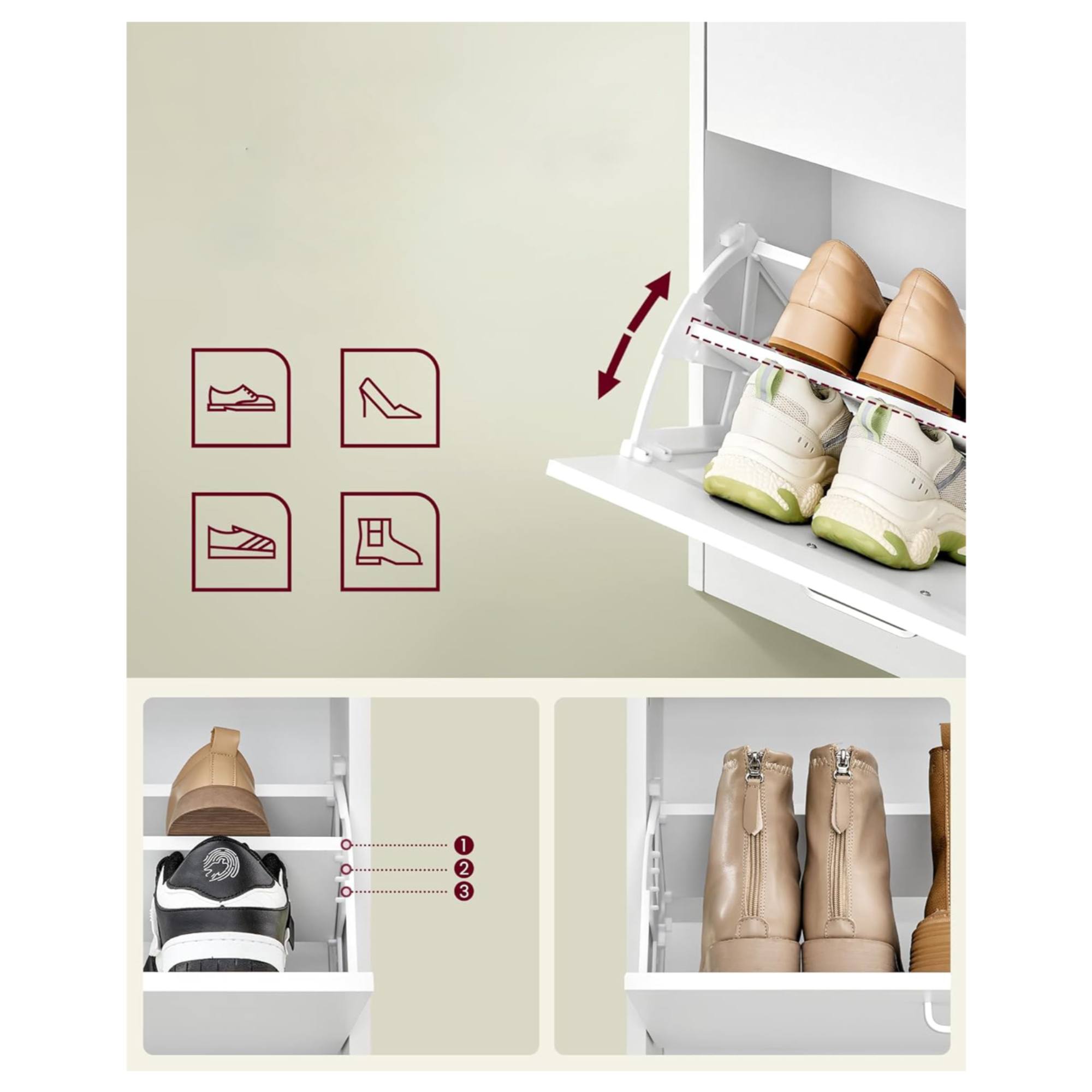 - Typ skrinky na topánky: Výklopné skrinky na topánky