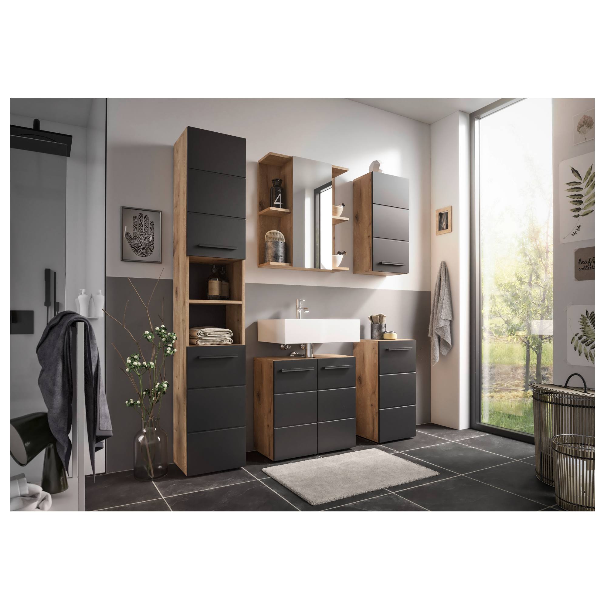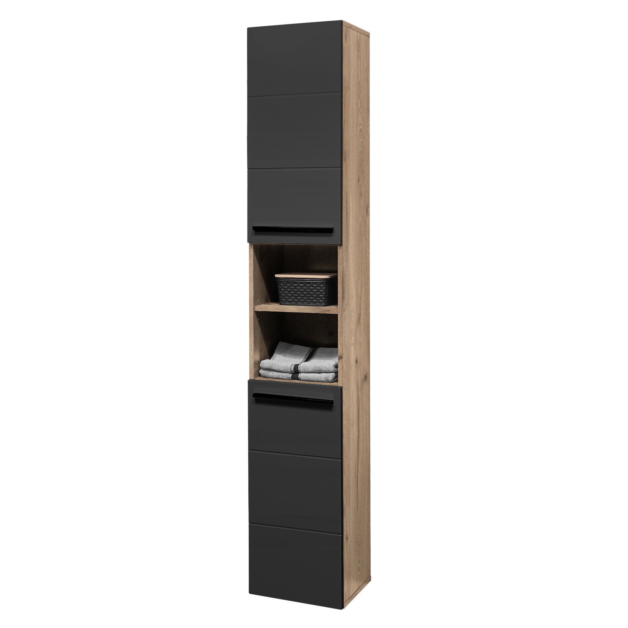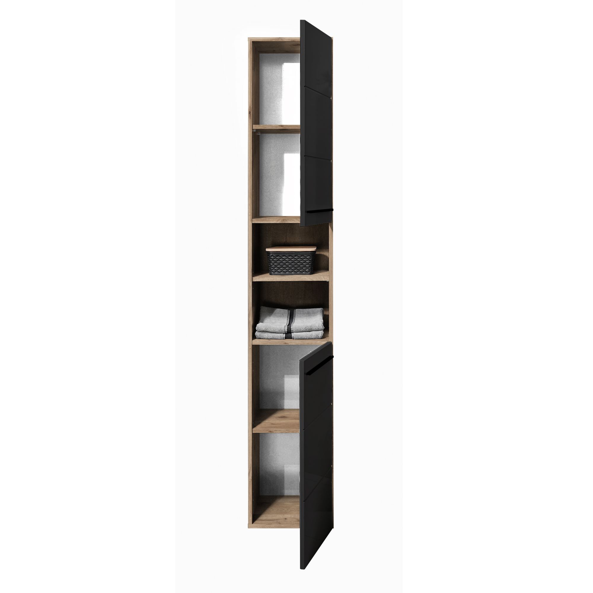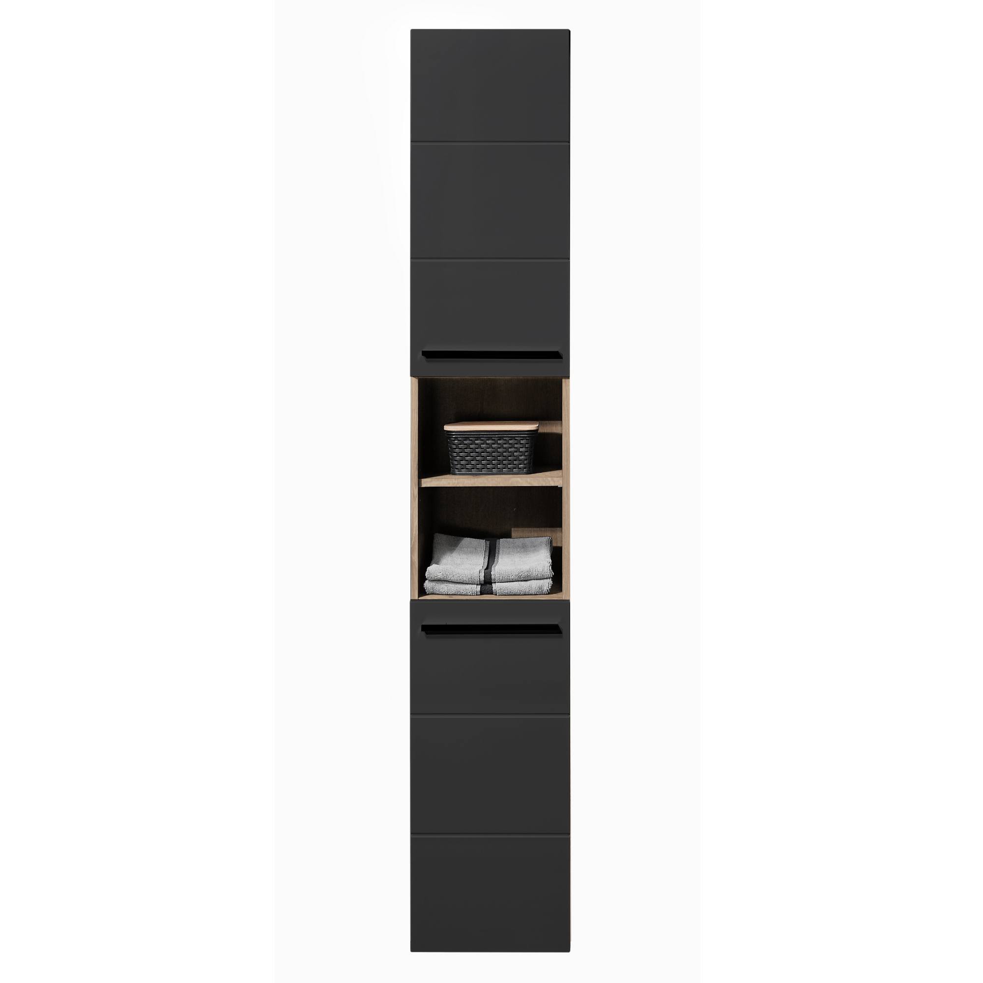 Vysoká kúpeľňová skriňa VISTA - dub viking/matná čierna