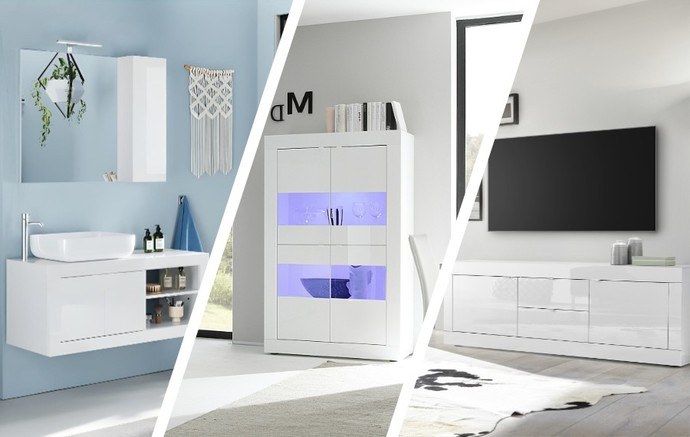Vysoká kúpeľňová skrinka BASIC 16 - biela lesklá