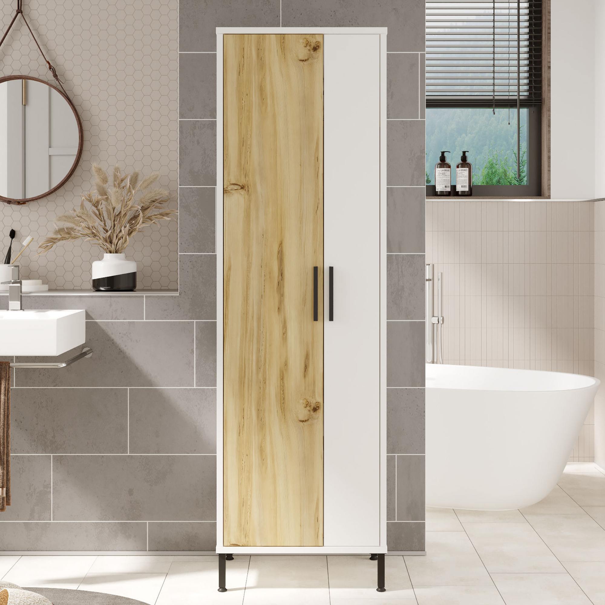 Vysoká kúpeľňová skrinka TABLERO - orech/biela
