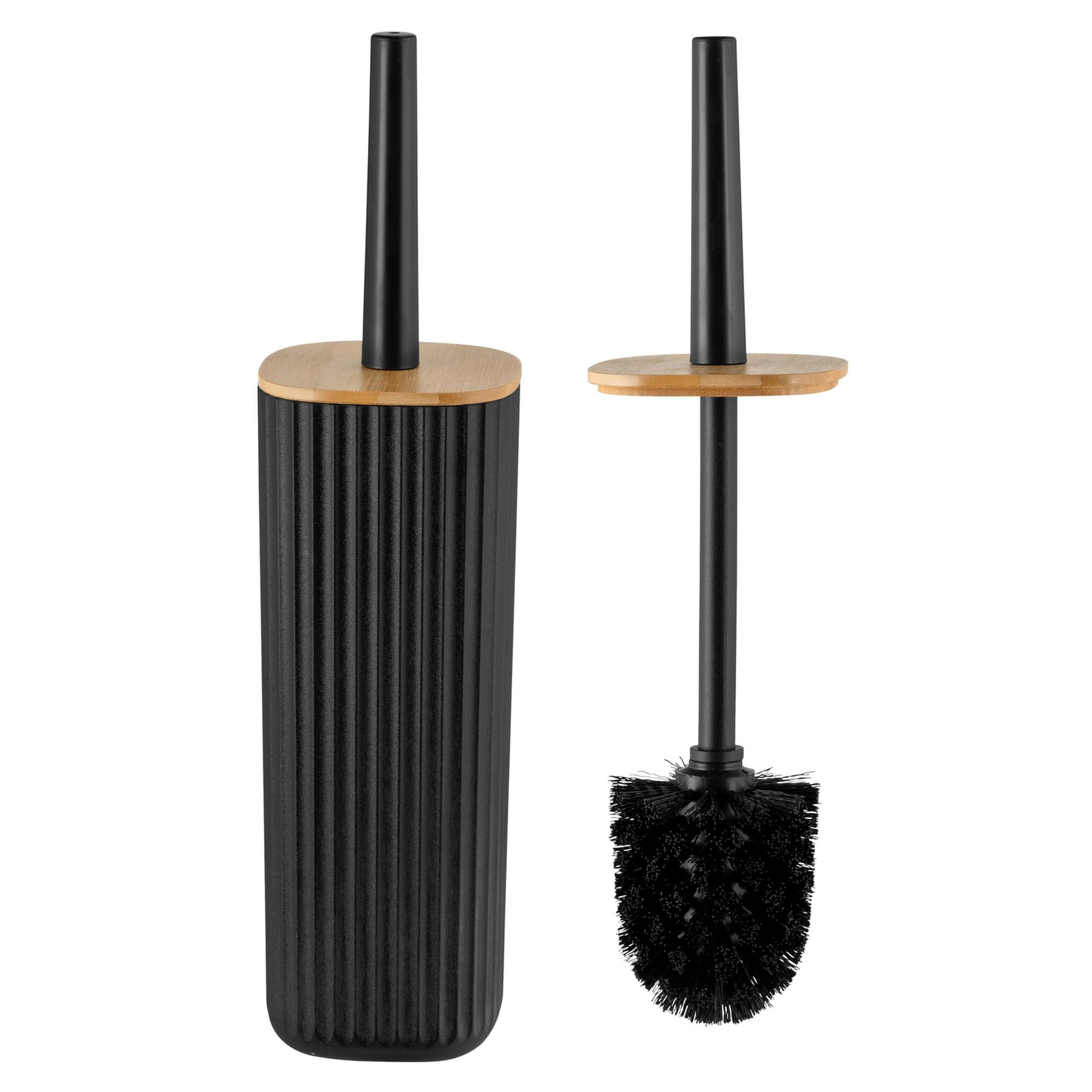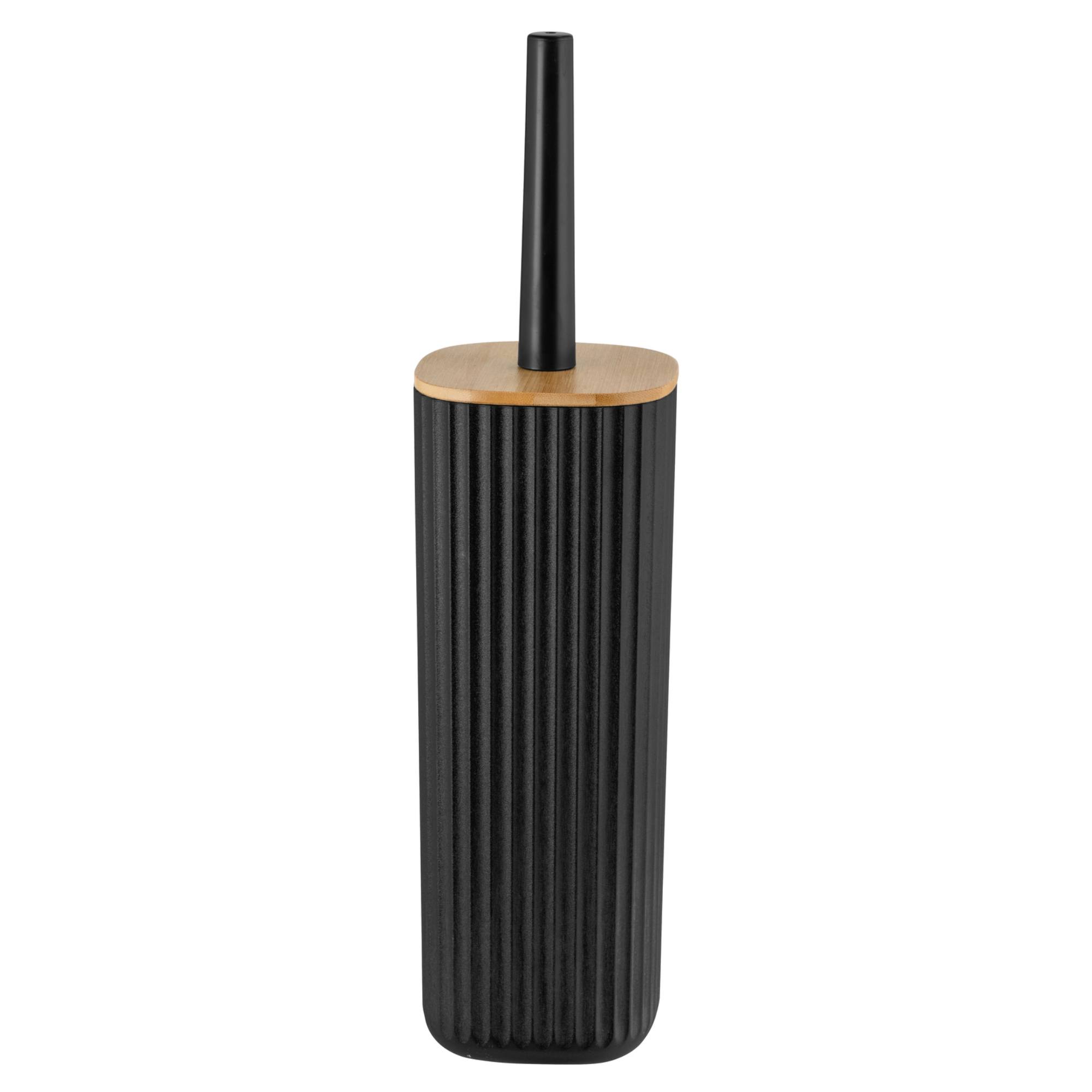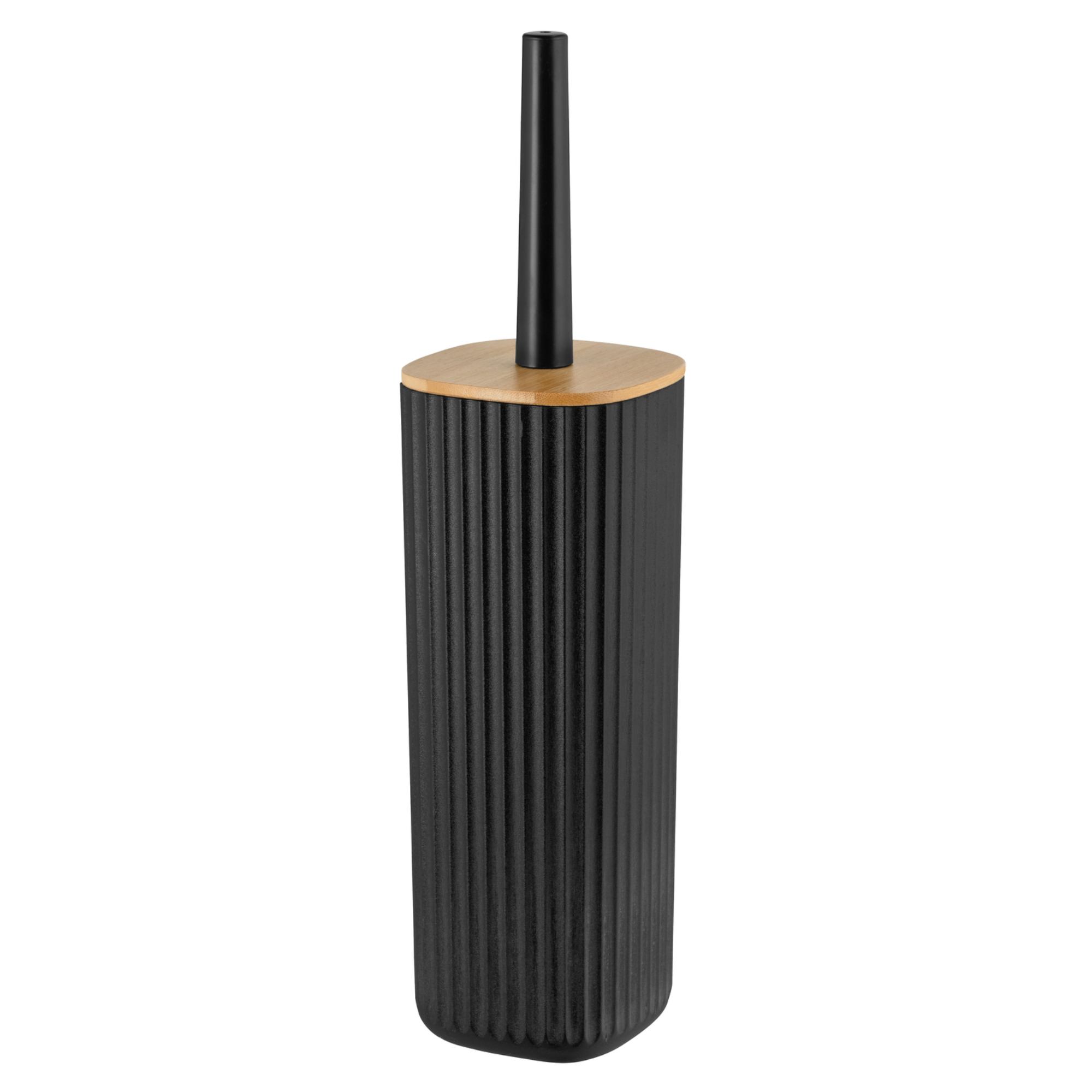 Nádoba je vyrobená z plastu v rebrovanom vyhotovení. Je doplnená bambusovým vekom, ktoré chráni pred znečistením a únikom zápachu. Navyše dodáva prírodný nádych a kontrastne oživuje inak jednoduchý vzhľad. Kefka s priemerom 7,5 cm zabezpečí hygienické prostredie toalety.