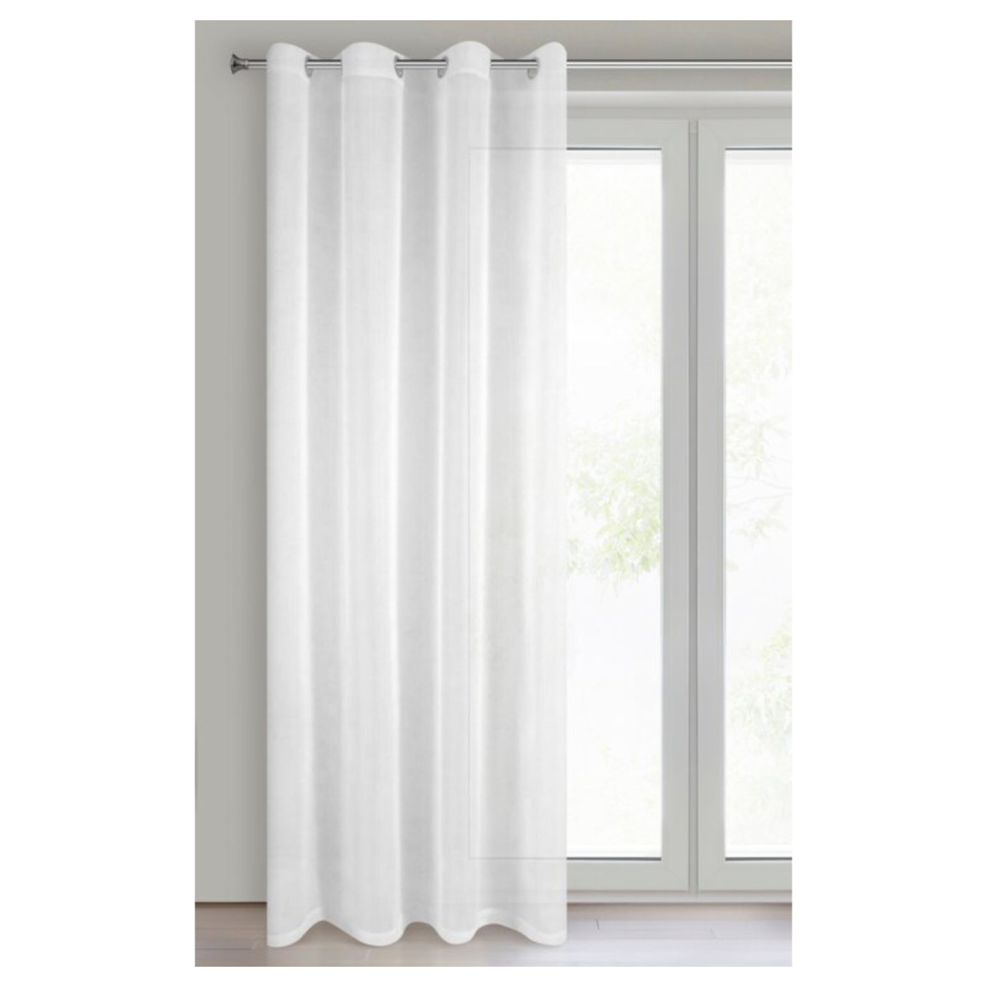 Je vyrobená z ľahkej a jemnej látky v snehovobielej farbe, ktorá skrášli každú miestnosť. Vďaka jednofarebnému a jednoduchému vyhotoveniu sa bude vynímať v rôznych interiéroch. Prepúšťa dostatok svetla a zároveň poskytuje súkromie. Zloženie zo 100 % polyesteru vám umožní ľahkú údržbu. Je vybavená praktickým a úhľadným zavesením na kovové očká s priemerom 4 cm.