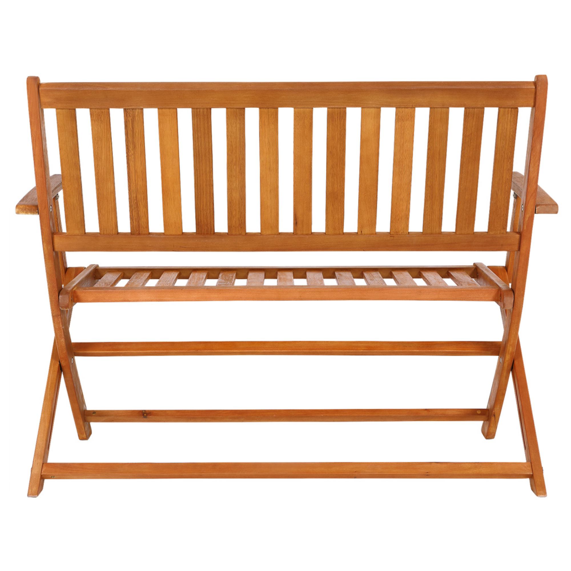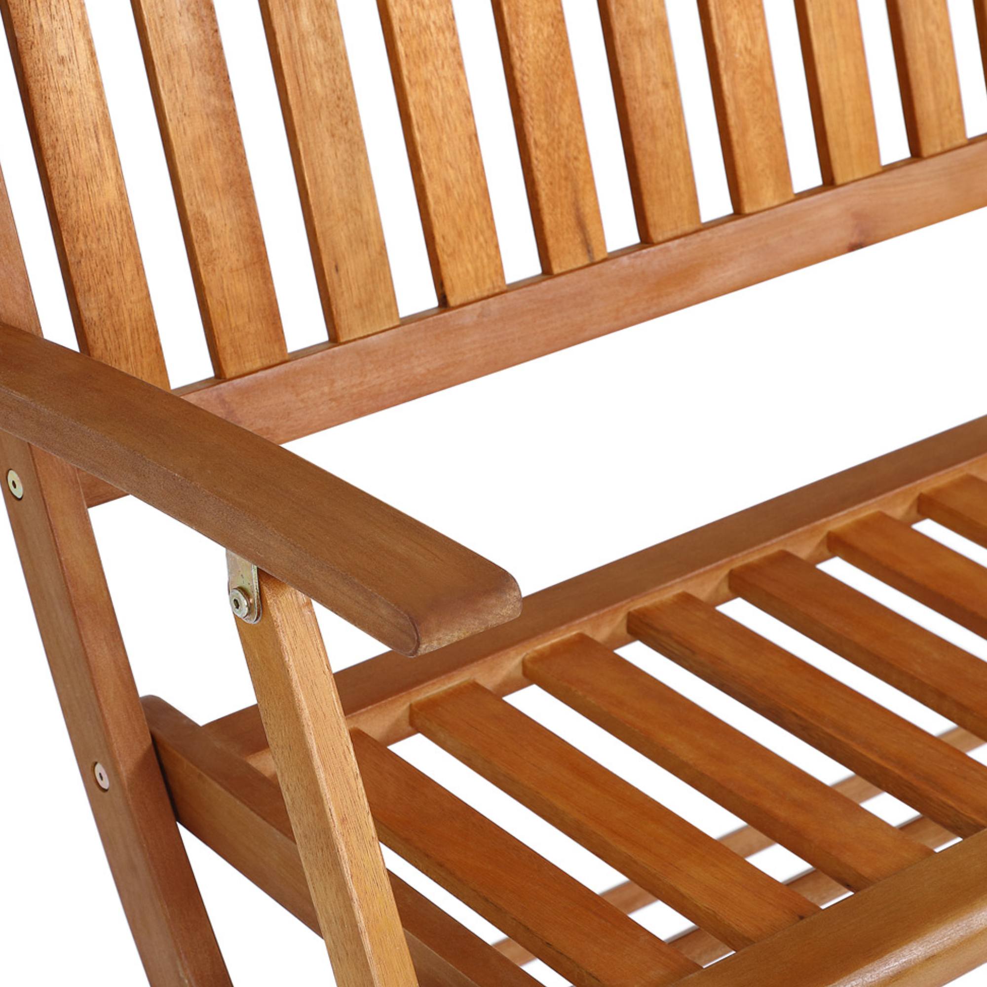 Konštrukcia tejto lavičky je vyrobená z masívneho eukalyptového dreva a jej povrch je olejovaný. Lavička je vybavená podrúčkami, ktoré prispievajú k pohodliu pri sedení. Pretože je skladacia, nezaberie pri skladovaní zbytočne veľa priestoru.