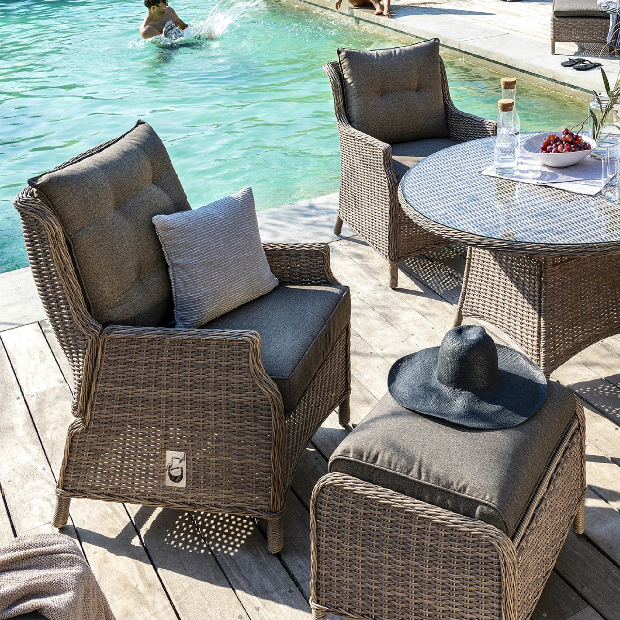 Praktická záhradná stolička FLORENZ1, z odolného umelého ratanu v šampanskom (hnedej) farbe. Je ideálnym doplnkom kresla série FLORENZ2. Rám stoličky je vyrobený z hliníka a výplet je z polyratanu. Stolička je ideálna ako podložka pod nohy, prípadne ju možno využiť, ako ďalšie miesto na sedenie. Maximálna nosnosť až 100 kg.