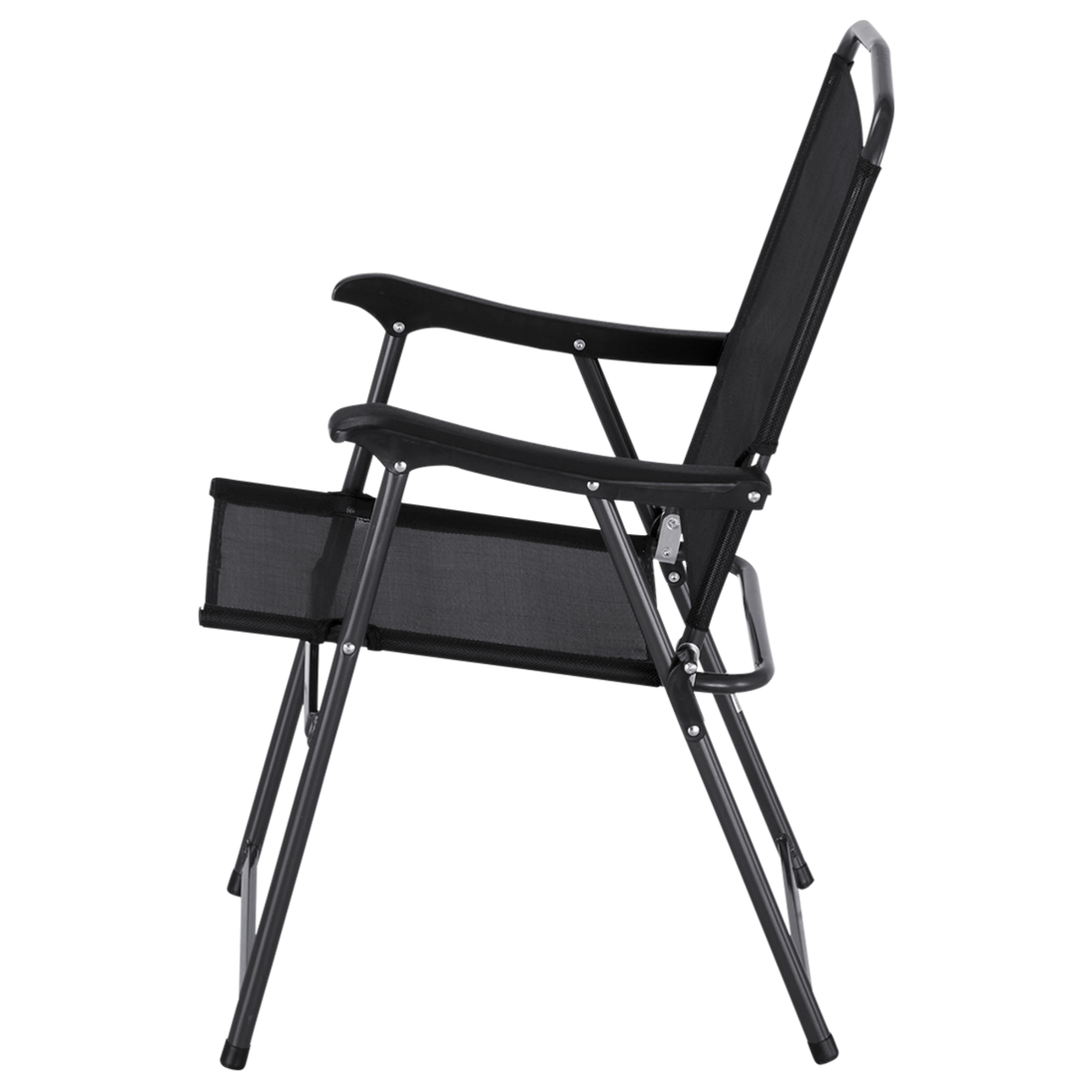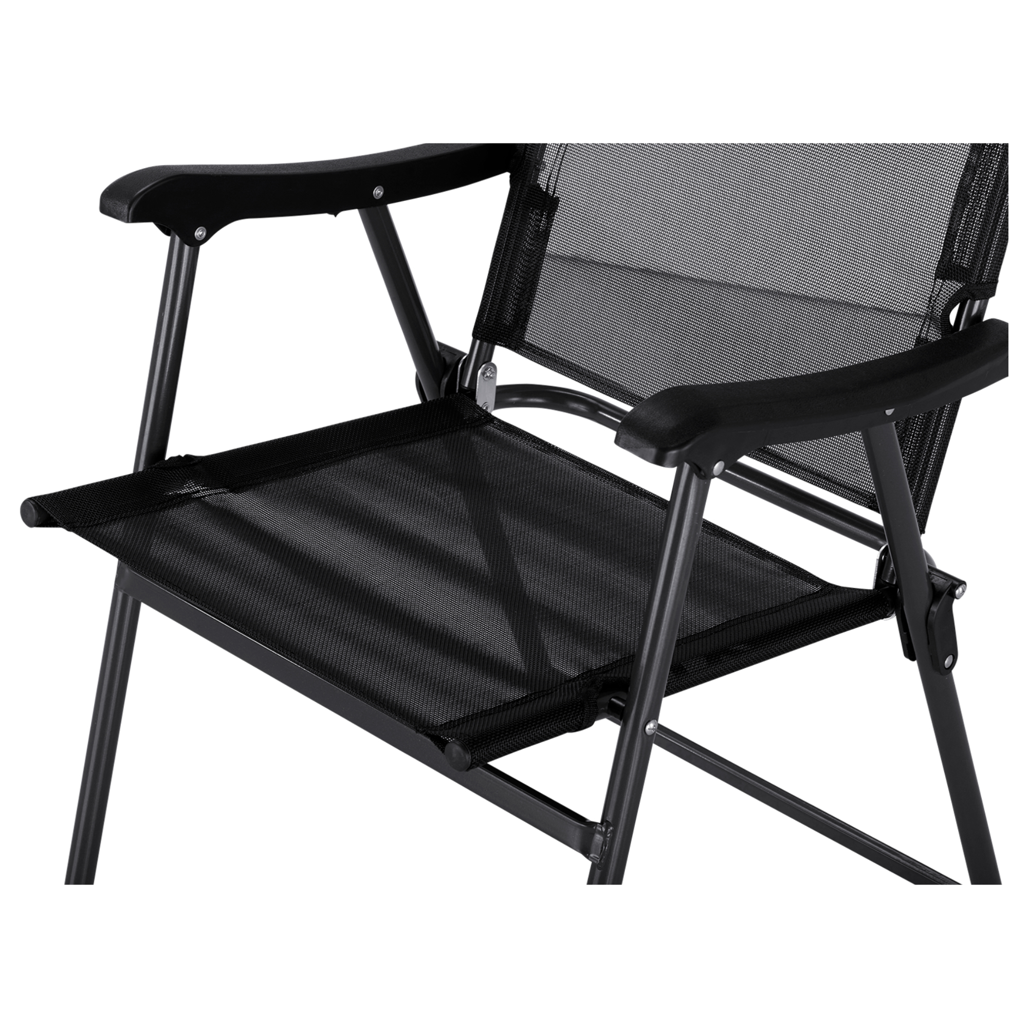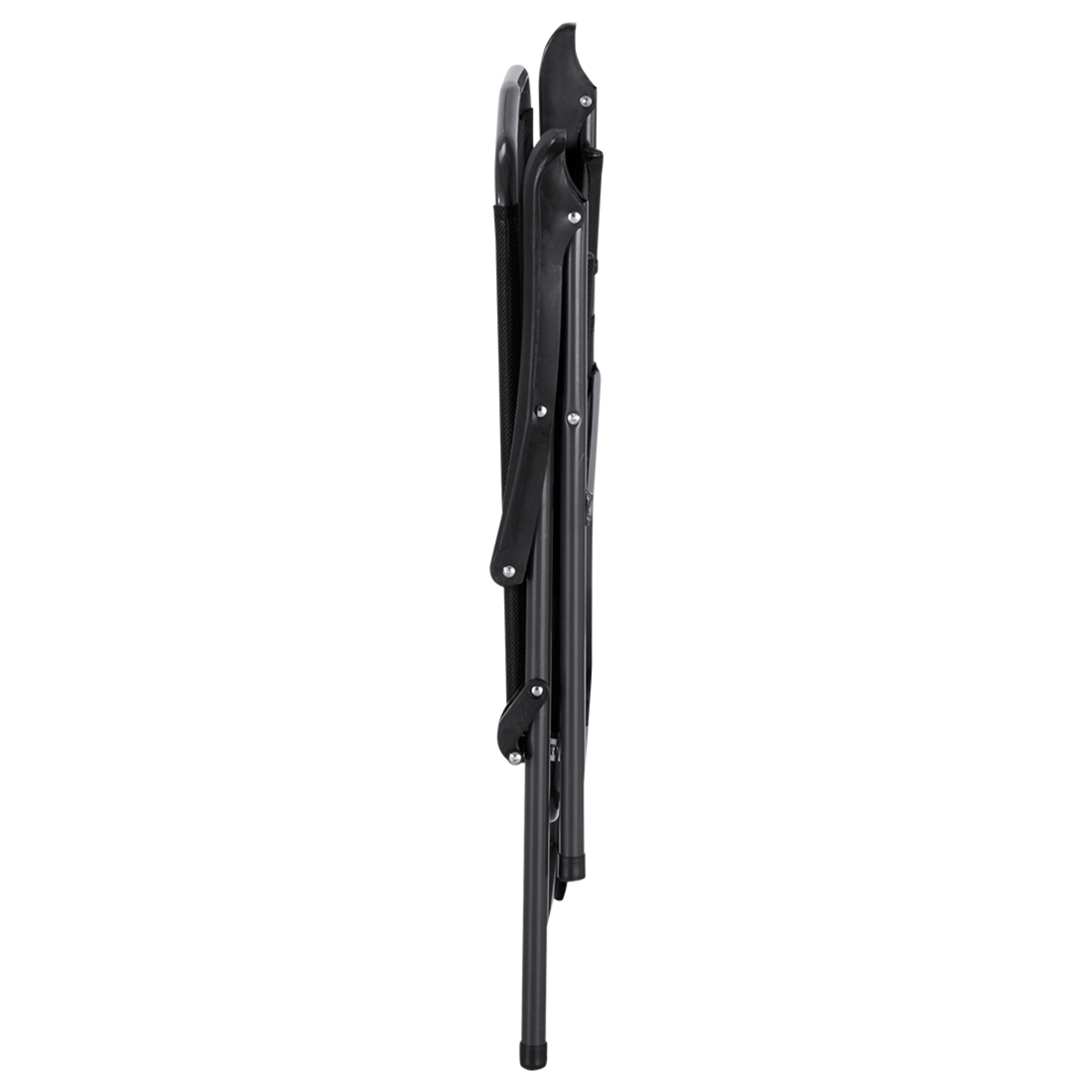 Je vyrobená z kovu v antracitovej farbe, ktorý zaisťuje pevnosť a stabilitu. Materiál tkaniny sedadla a operadla v čiernej farbe je kombináciou PVC a polyesteru, čo pridáva na odolnosti a pohodlí. Vďaka skladacej funkcii ju ľahko a rýchlo uskladníte, čo ušetrí veľa miesta. Maximálna nosnosť stoličky je 110 kg.