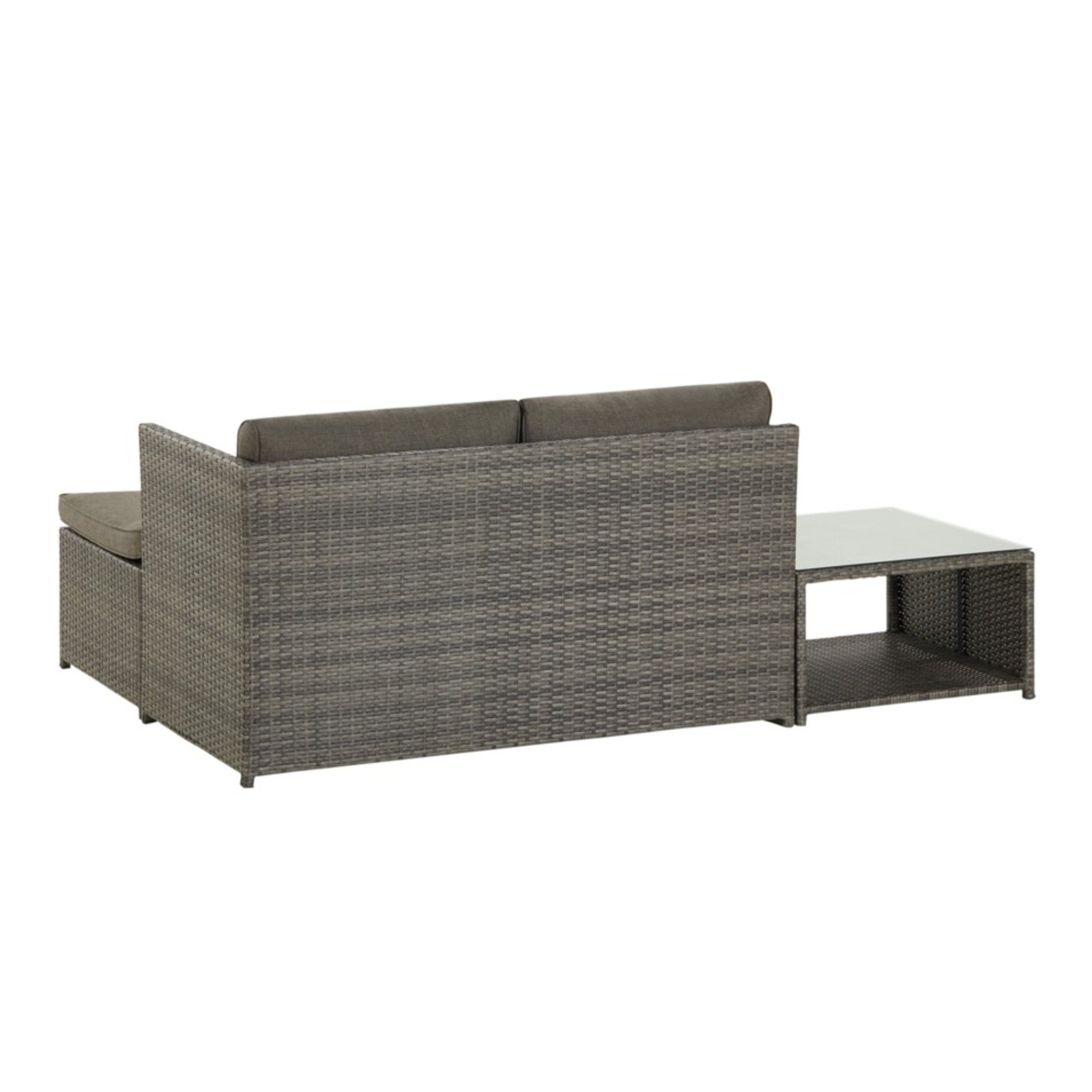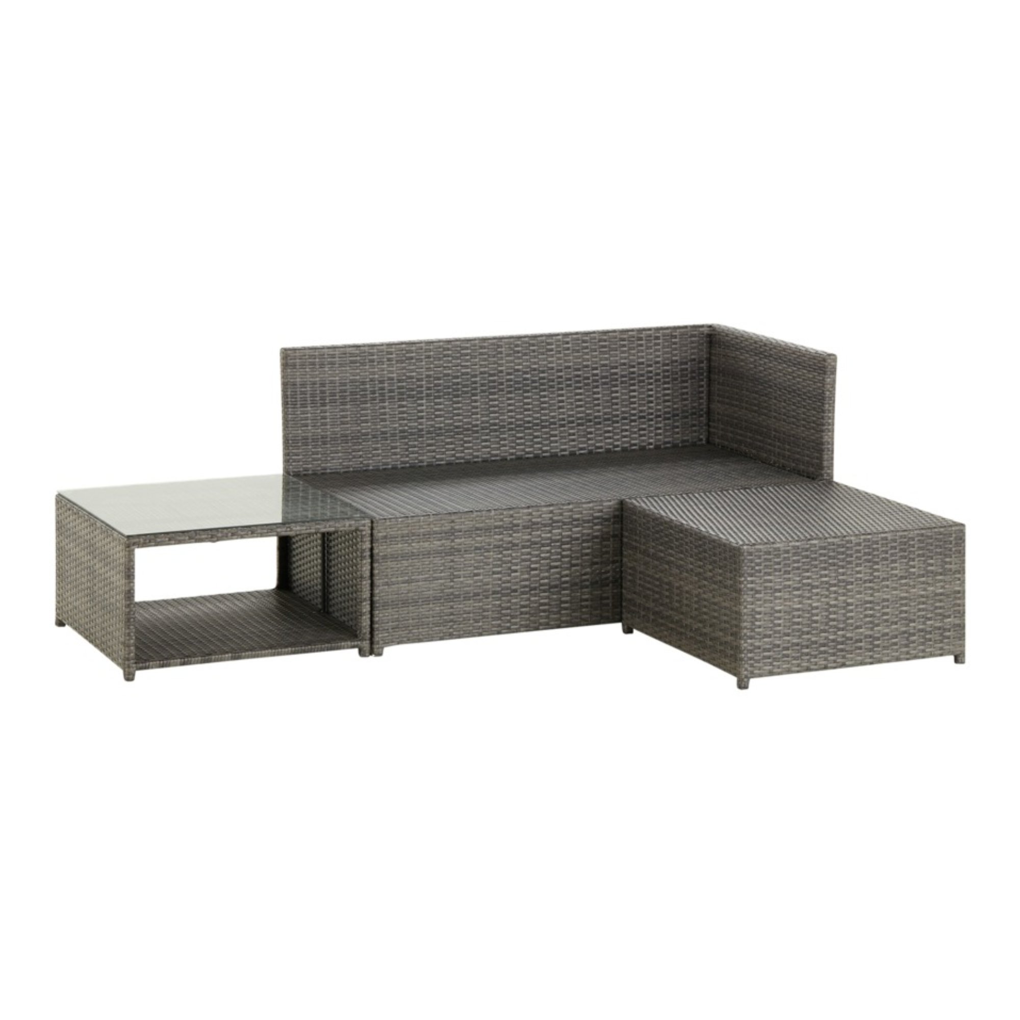 Trojdielna záhradná zostava BURANO je skvelým doplnkom pre vaše vonkajšie sedenie. Skladá sa z dvojmiestnej pohovky, taburetu a praktického kávového stolíka. Nenápadný a zároveň štýlový dizajn dodá vašej terase, balkónu alebo záhrade nádych modernej elegancie. Konštrukcia je vyrobená z kovového rámu, ten je vypletaný kvalitným polyratanom v sivom odtieni. Tento materiál sa vyznačuje veľkou odolnosťou proti poveternostným vplyvom a UV žiareniu. Ďalšou prednosťou je ľahká údržba a dlhá životnosť. Súčasťou balenia sú aj pohodlné podušky a operadlá na chrbát, ktoré prispejú k vášmu maximálnemu komfortu. Plocha stolíka je krytá čírym tvrdeným sklom.