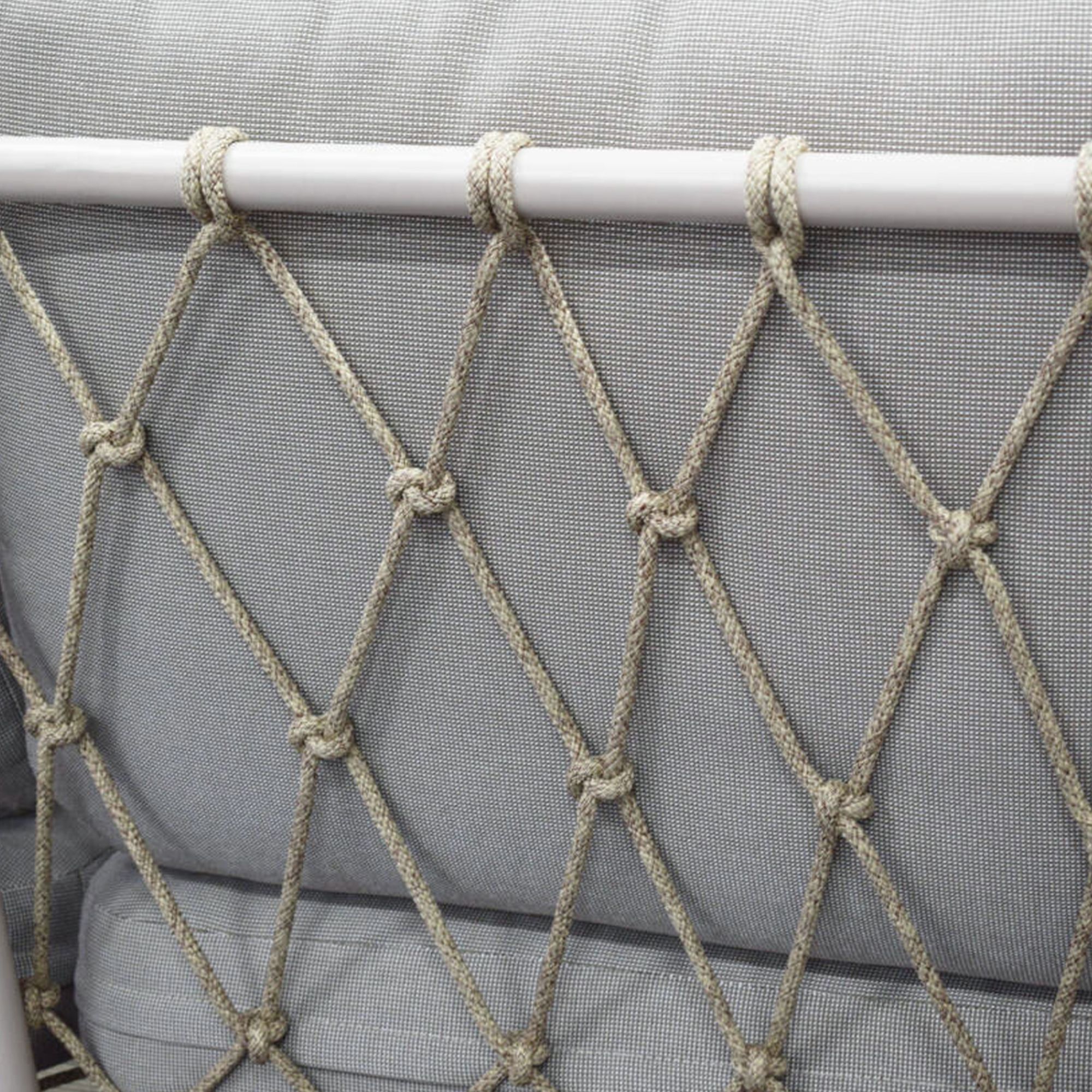 Nábytok má pevnú a stabilnú konštrukciu, ktorá je vyrobená z kovu. Z kovu je aj horná doska stolíka, ktorú zdobí dekor duba. Sedenie na kreslách a dvojmiestnej pohovke je príjemné a pohodlné nielen vďaka mäkkým penovým sedákom, ale aj vďaka podrúčkam a vankúšom. Operadlá sú opletené polyetylénovými povrazmi.