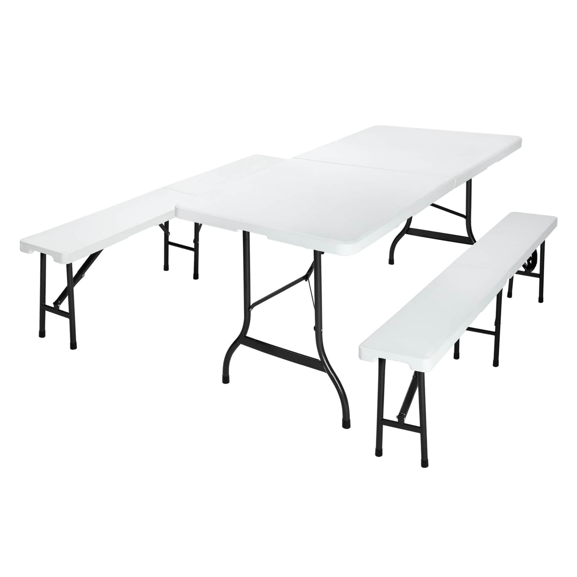 Moderná záhradná zostava MOLMA sa skladá zo stolu a 2 lavíc.