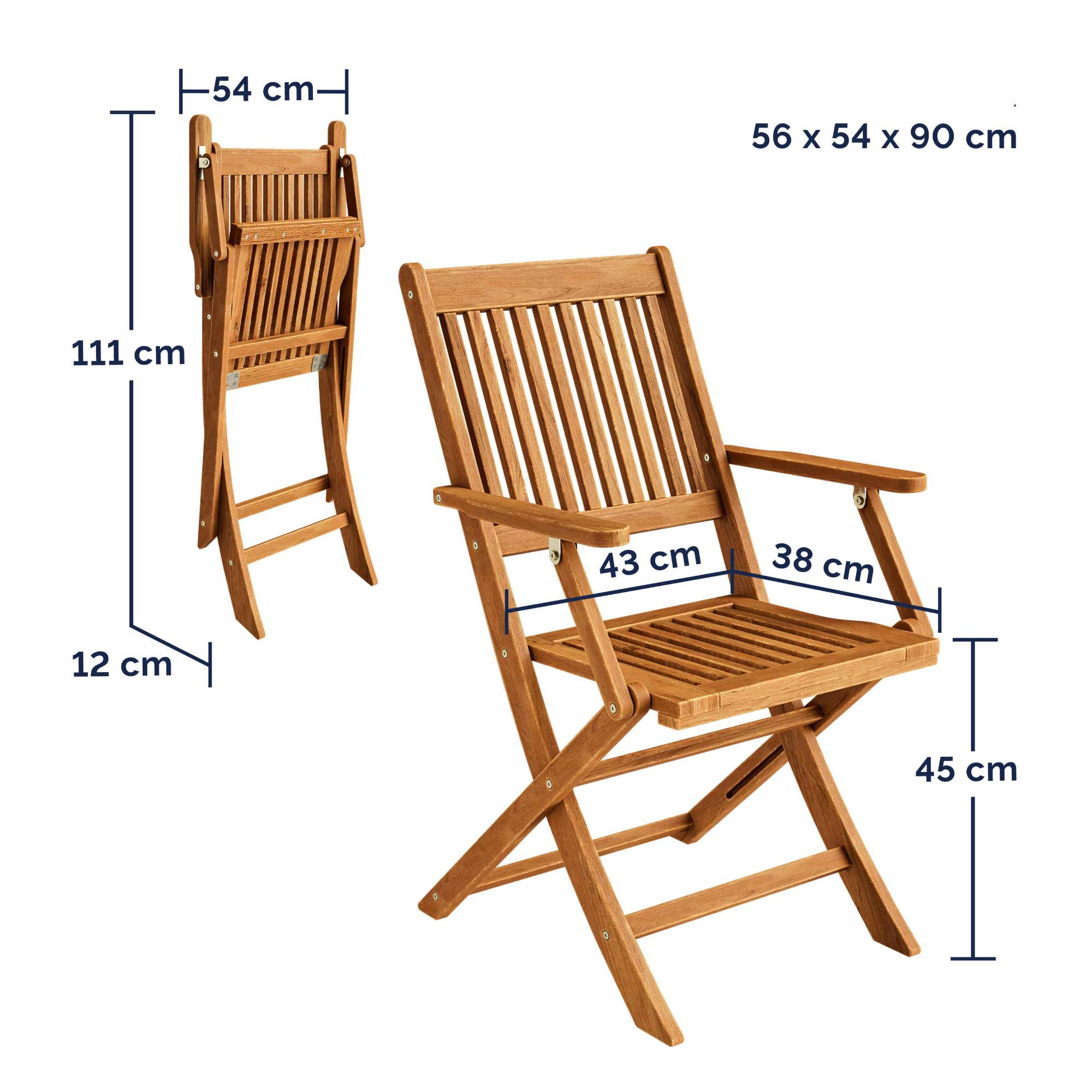 Konštrukcia tohto nábytku je vyrobená z masívneho akáciového dreva a jej povrch je olejovaný. Stoličky, ktorých nosnosť je 160 kg, aj stôl sú skladacie, a tak pri skladovaní nebudú zaberať zbytočne veľa priestoru.