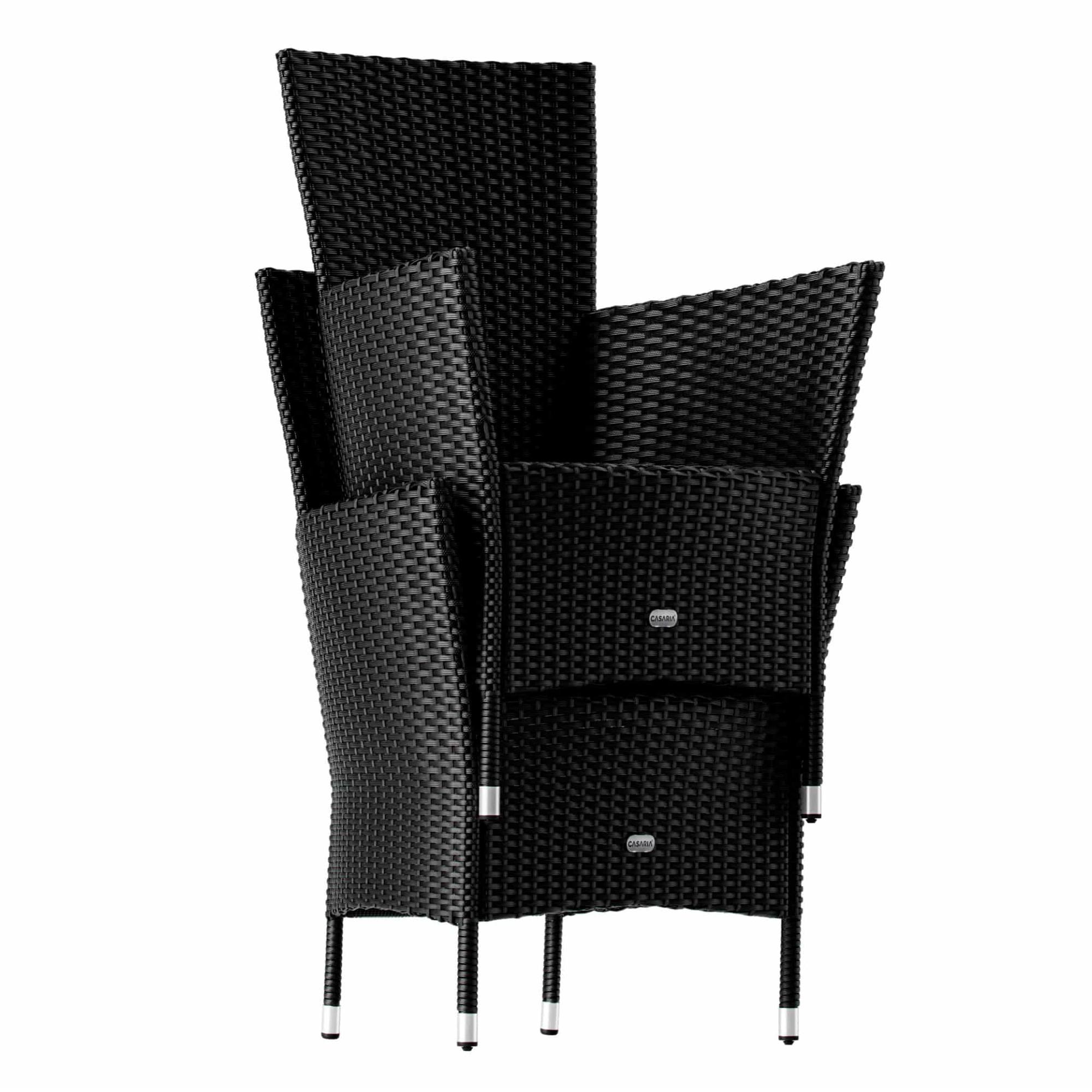 Záhradná zostava VERONA 3, ktorá vďaka svojmu modernému vzhľadu zažiari v každej záhrade, sa skladá zo stola a 4 stohovateľných kresiel.