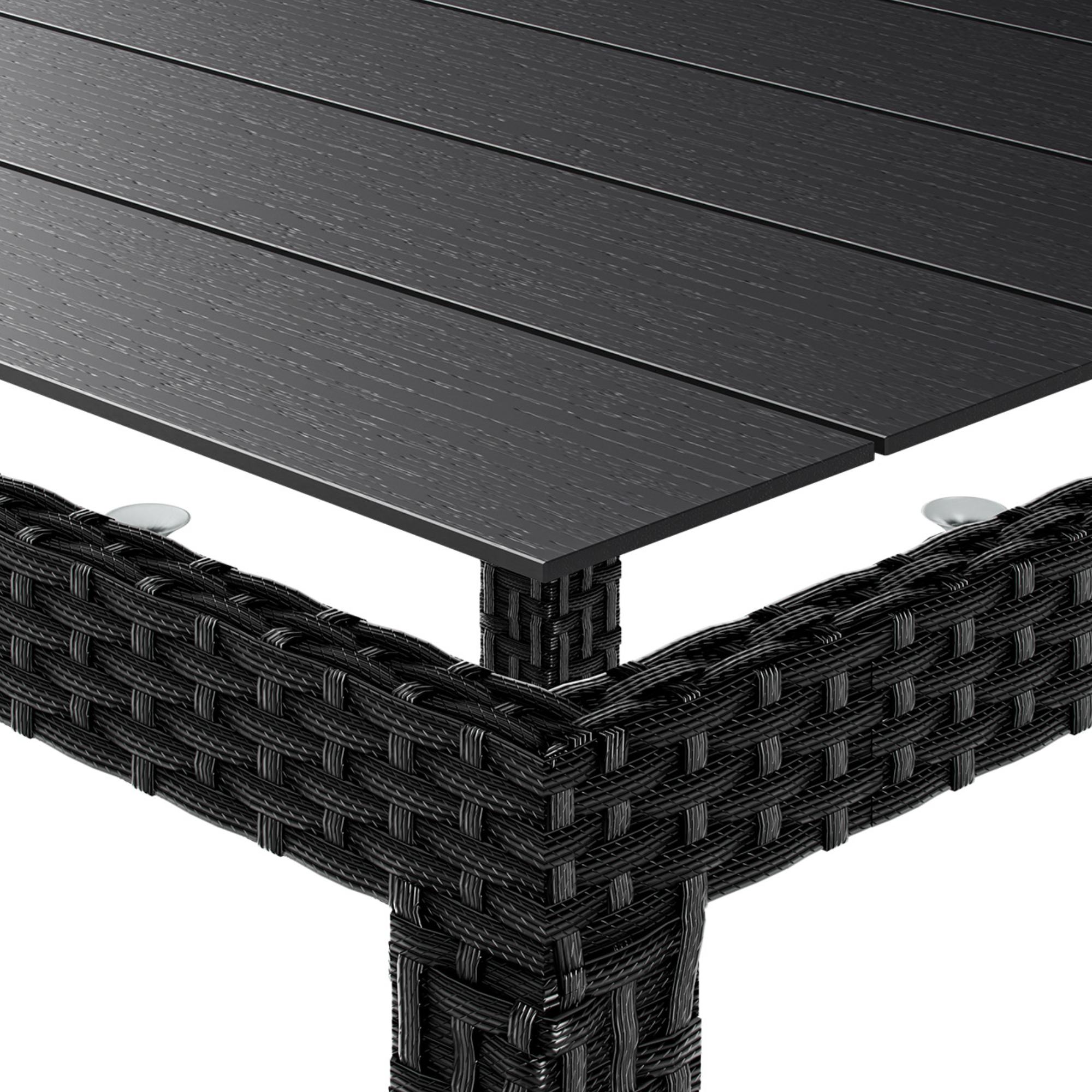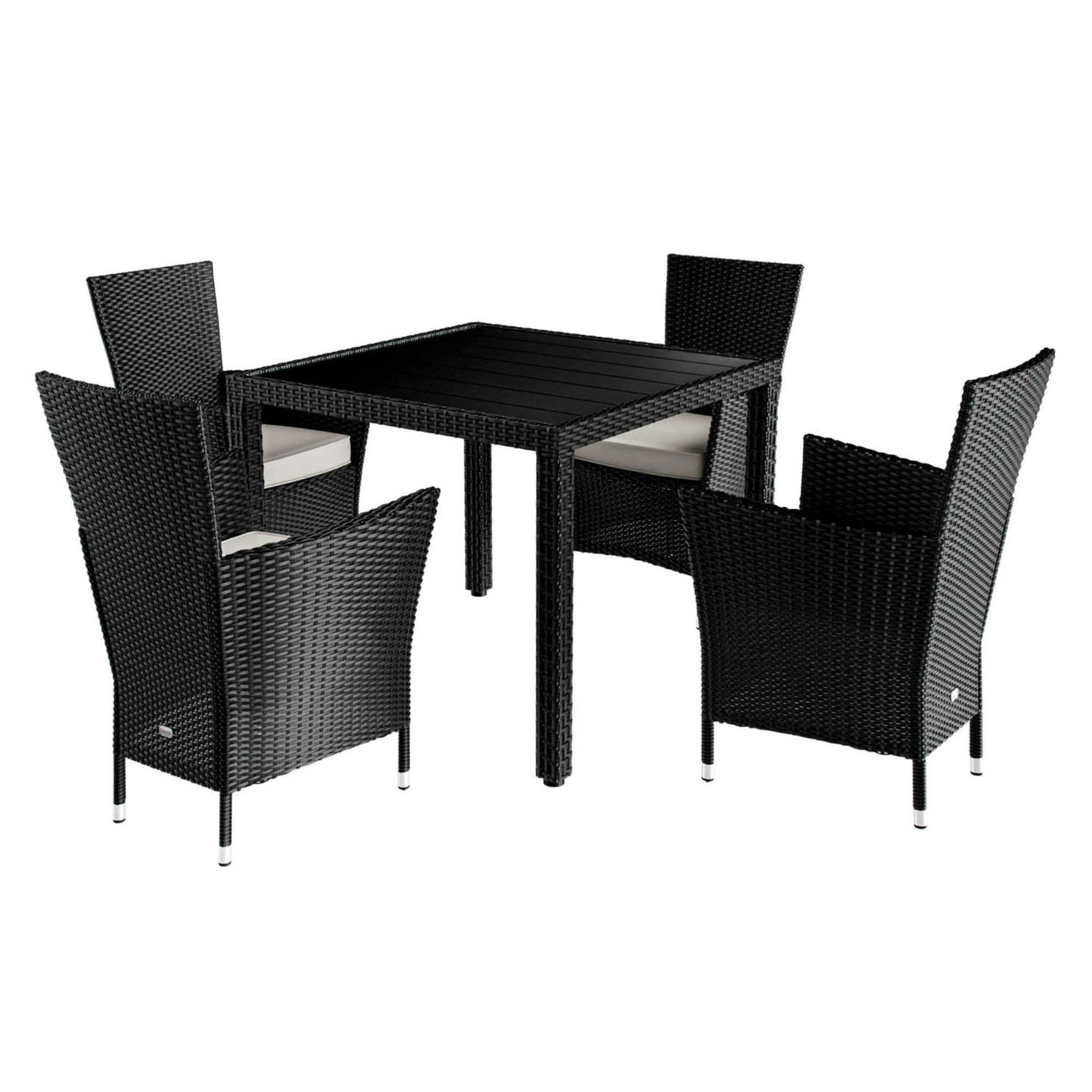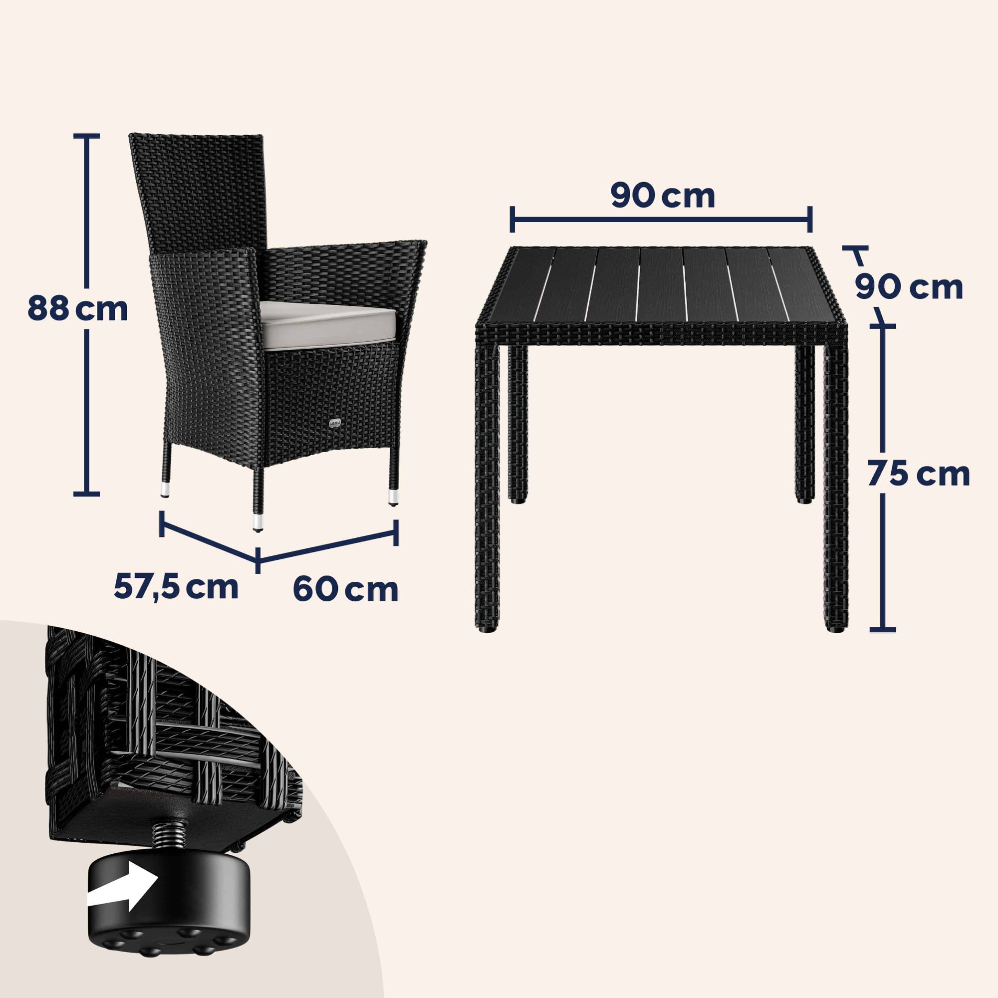 Pevná a stabilná konštrukcia tohto nábytku je vyrobená z ocele ** a ** opletená polyratanom **. Nohy stola i kresiel sú zakončené **nastaviteľnými skrutkami, vďaka ktorým bude zostava stabilná aj na nerovnom povrchu. Horná doska stola je z ľahko udržovateľného materiálu WPC, ktorý je tvorený kombináciou drevitej hmoty a plastu. O pohodlné sedenie sa starajú nielen podrúčky, ale aj mäkké penové sedáky s hrúbkou 7 cm. Tie majú vodoodpudivé poťahy so zipsom, ktoré je možné v prípade znečistenia ľahko zložiť a vyprať v práčke na 30 °C.