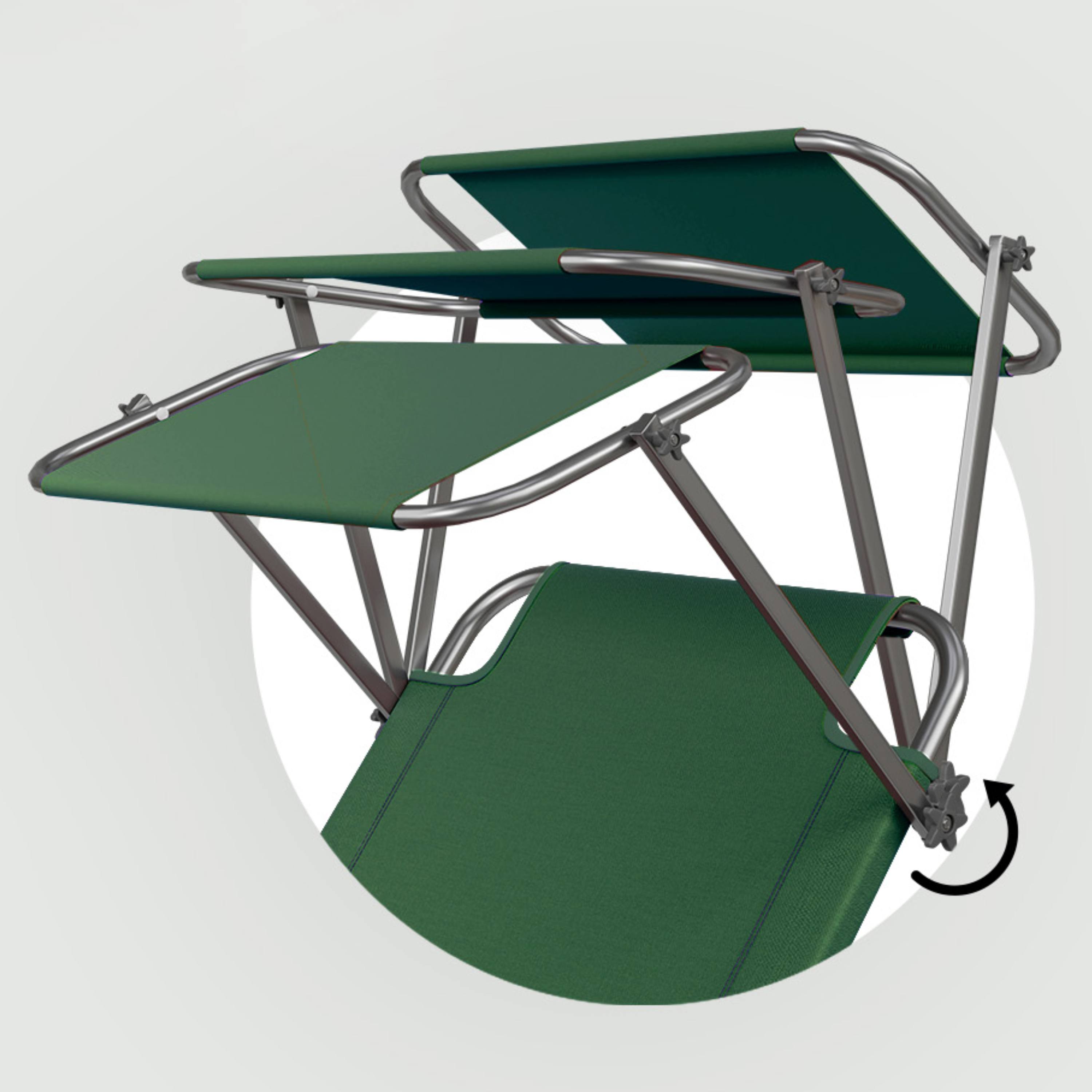 Vďaka skladacej konštrukcii je možné ležadlo jednoducho zložiť, prenášať aj úsporne uskladniť. Stabilitu ležadla zabezpečuje pevný hliníkový rám s robustnými kovovými kĺbmi a zosilnenými zaisťovacími prvkami. Priedušná textília je zároveň pevná, odolná voči poveternostným vplyvom aj UV žiareniu, takže je ideálna na vonkajšie použitie.
