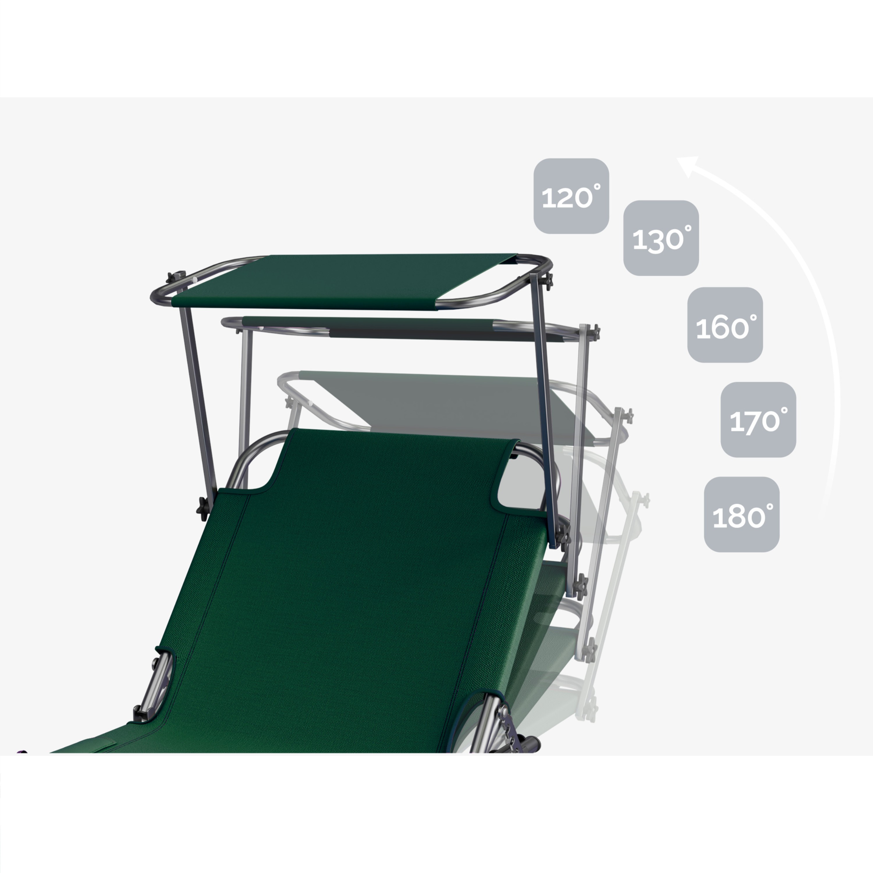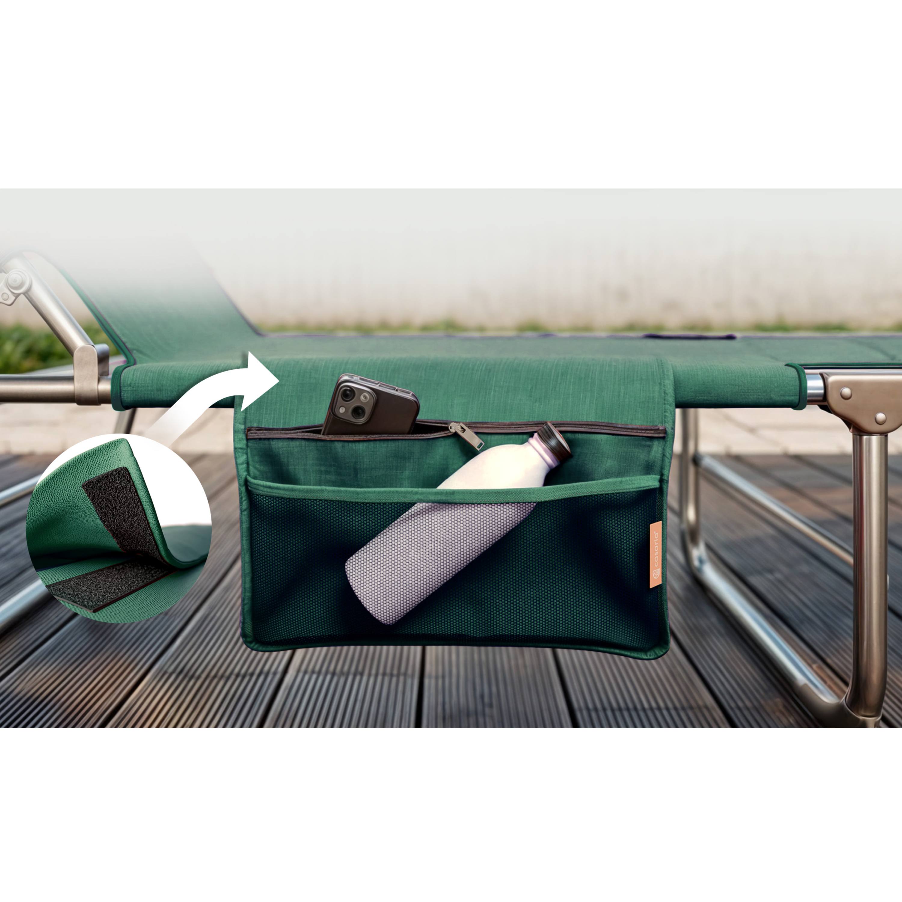 Veľkorysá ležacia plocha s rozmermi 190x60 cm poskytuje dostatok miesta na pohodlné ležanie. Operadlo je možné nastaviť do 4 rôznych polôh, takže si jednoducho nájdete ideálnu pozíciu na odpočinok, čítanie alebo opaľovanie. Ležadlo je navyše vybavené plynule nastaviteľnou slnečnou clonou, ktorá poskytuje príjemný tieň počas horúcich dní. Praktickým detailom je aj odnímateľné bočné vrecko s priehradkou na zips a sieťovanou časťou, kam si môžete uložiť telefón, okuliare alebo opaľovací krém, aby ste ich mali vždy po ruke.