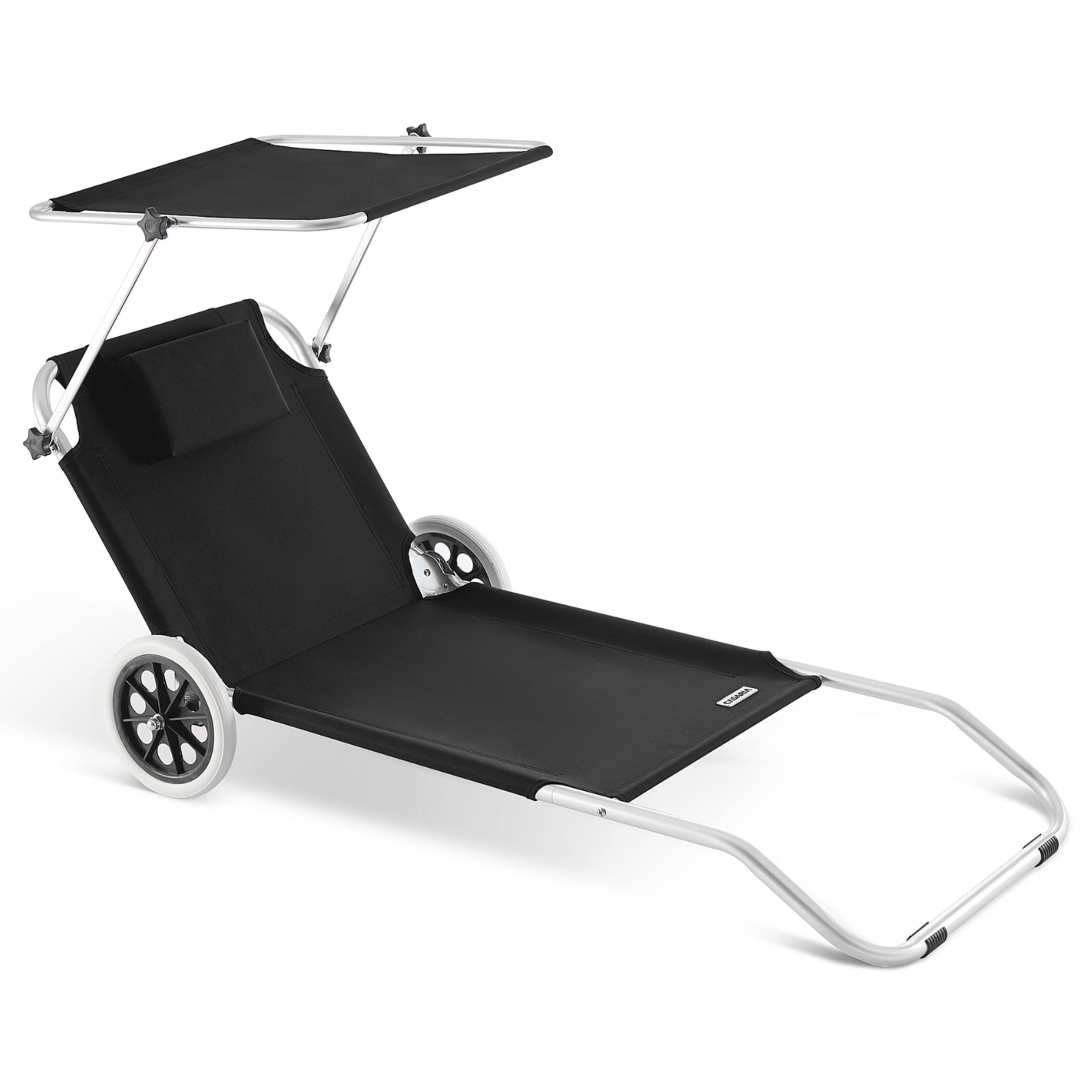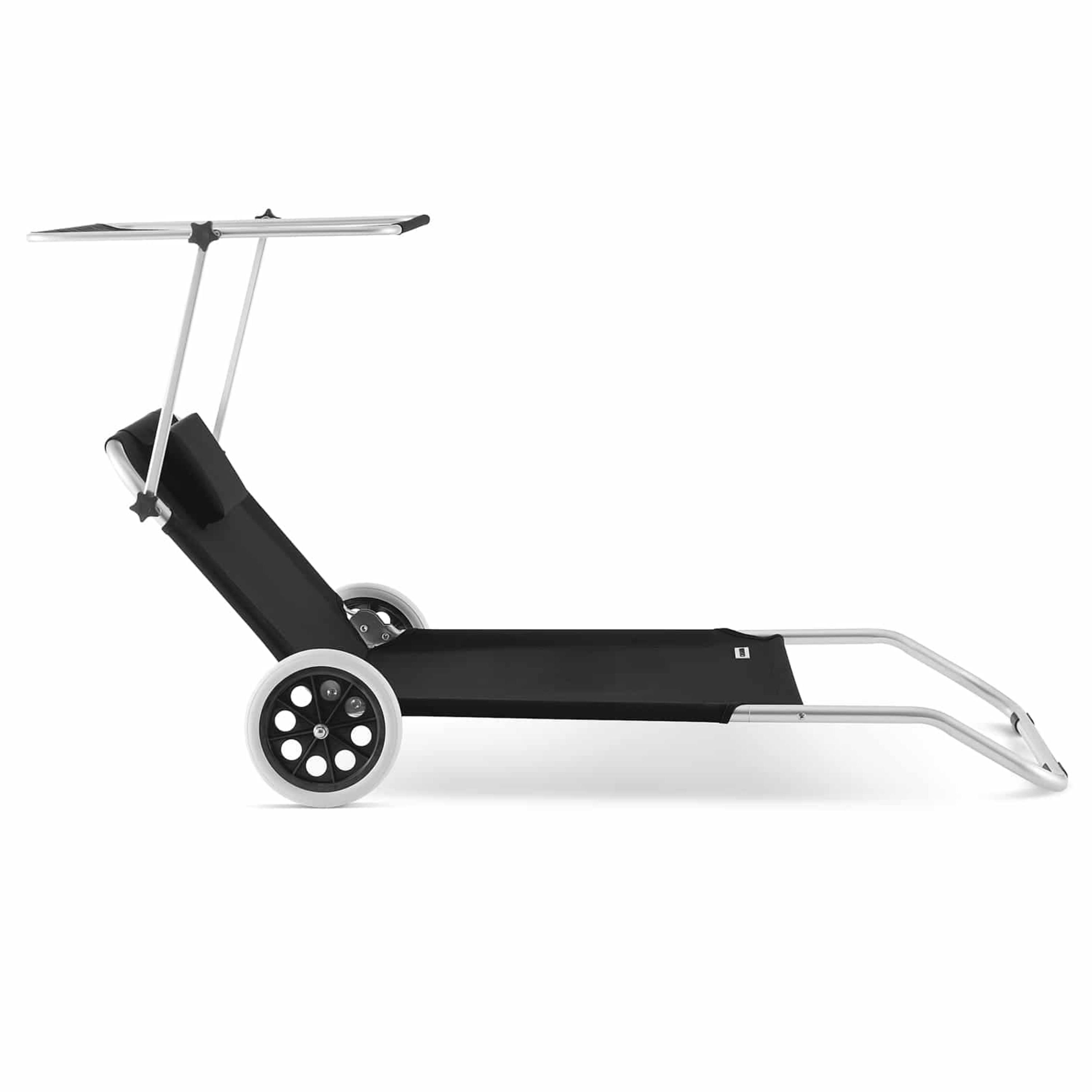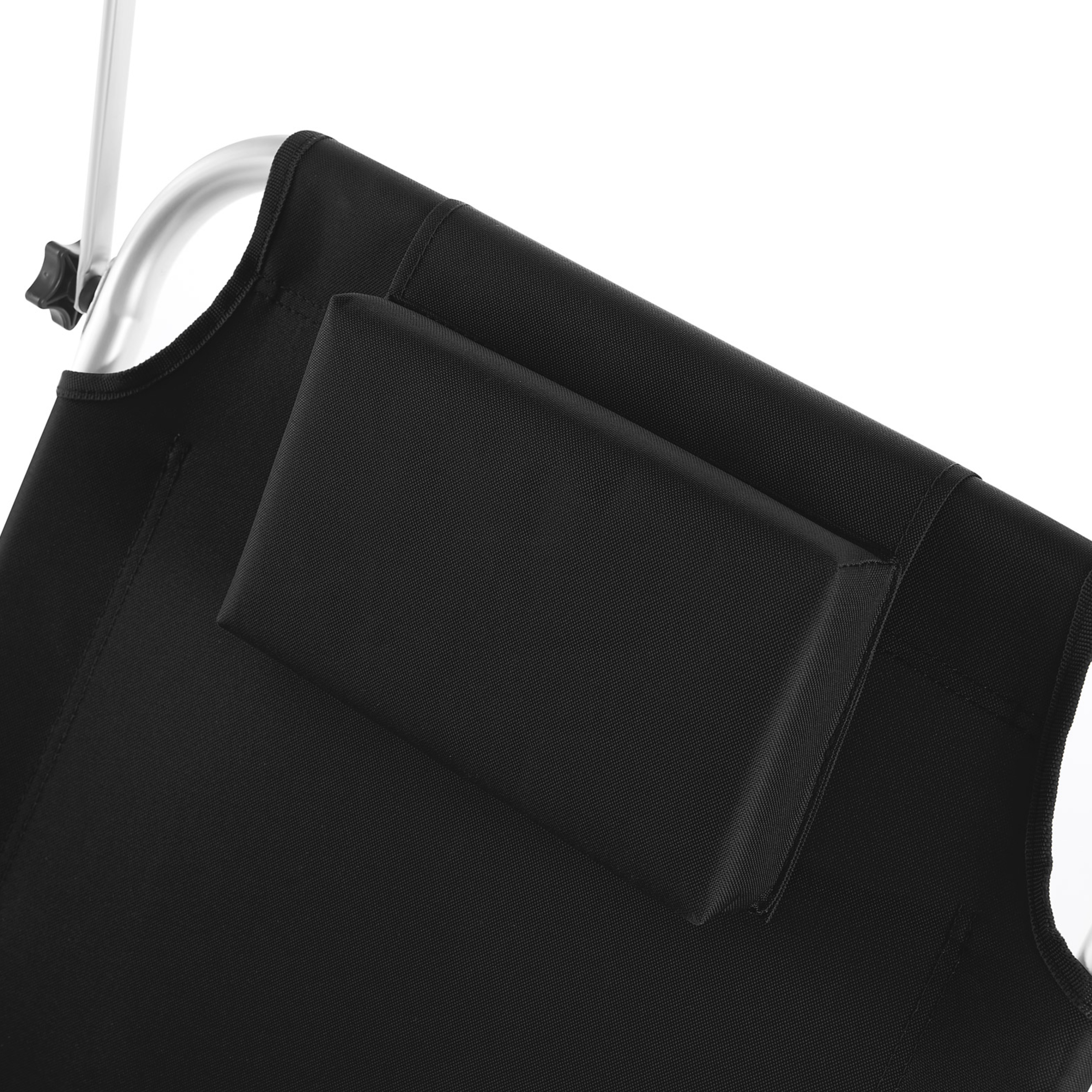 Ležadlo ponúka vysoký komfort vďaka operadlu nastaviteľnému do 5 polôh, takže si jednoducho zvolíte ideálnu pozíciu na odpočinok alebo čítanie. Súčasťou je aj mäkký vankúšik zabezpečujúci pohodlnú oporu hlavy. Ďalším praktickým prvkom je plynule nastaviteľná slnečná clona, ktorá vám umožní zatieniť oblasť hlavy. Na zadnej strane operadla sa nachádza aj veľké sieťované vrecko, do ktorého môžete uložiť telefón, okuliare, opaľovací krém alebo iné drobnosti, ktoré chcete mať vždy po ruke.