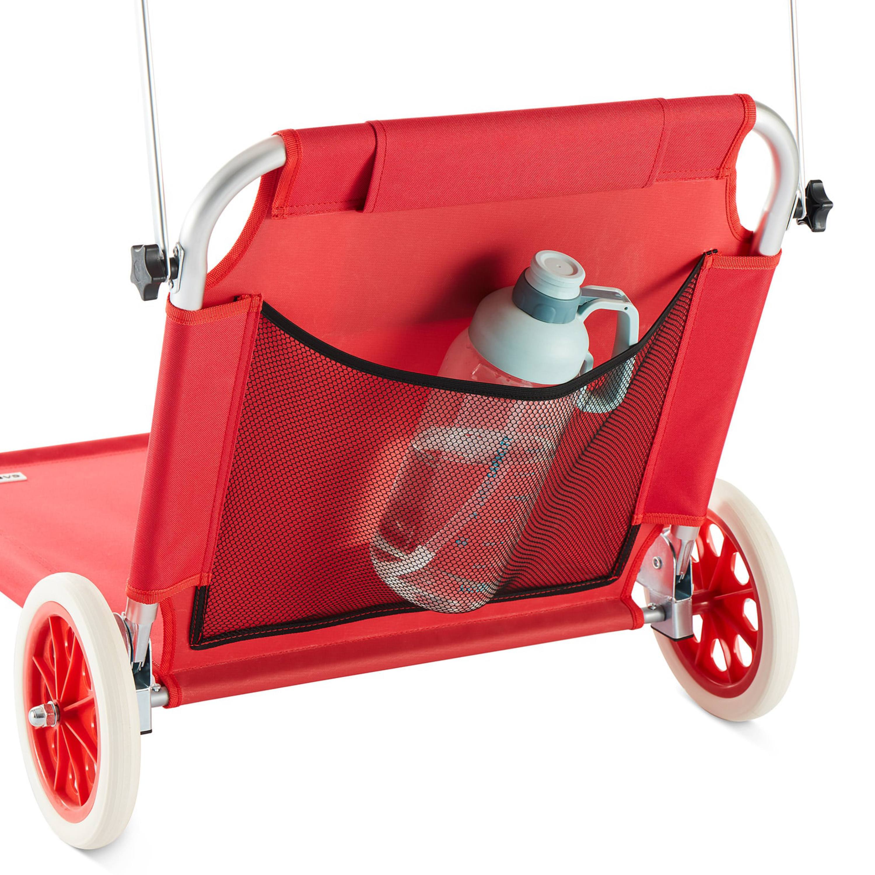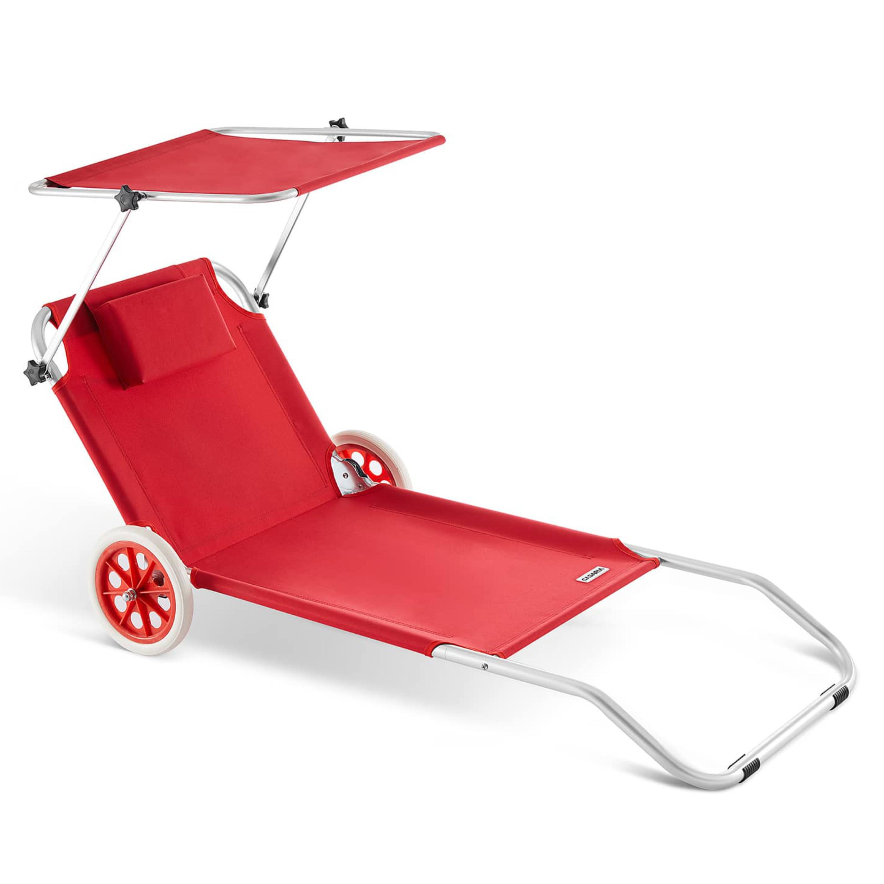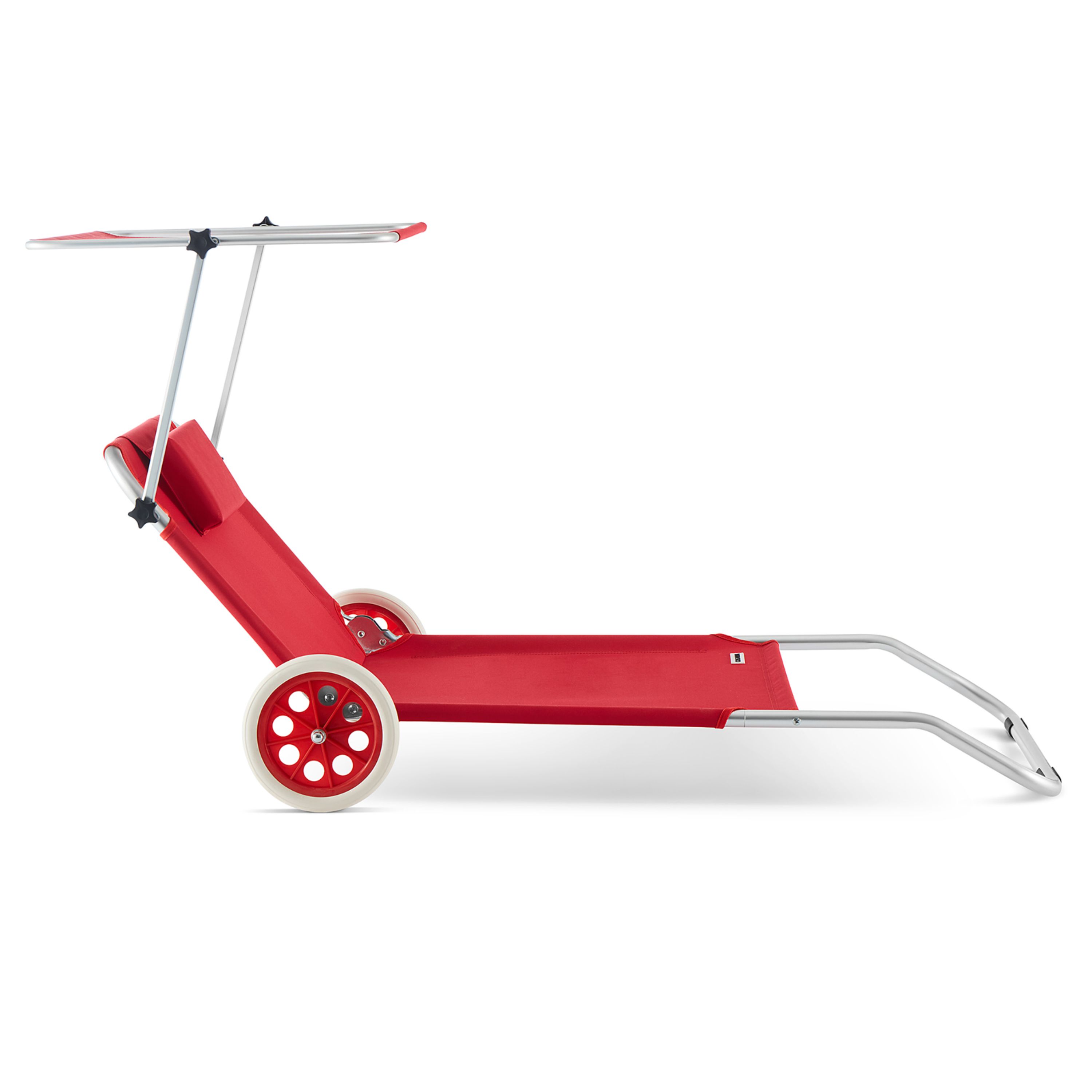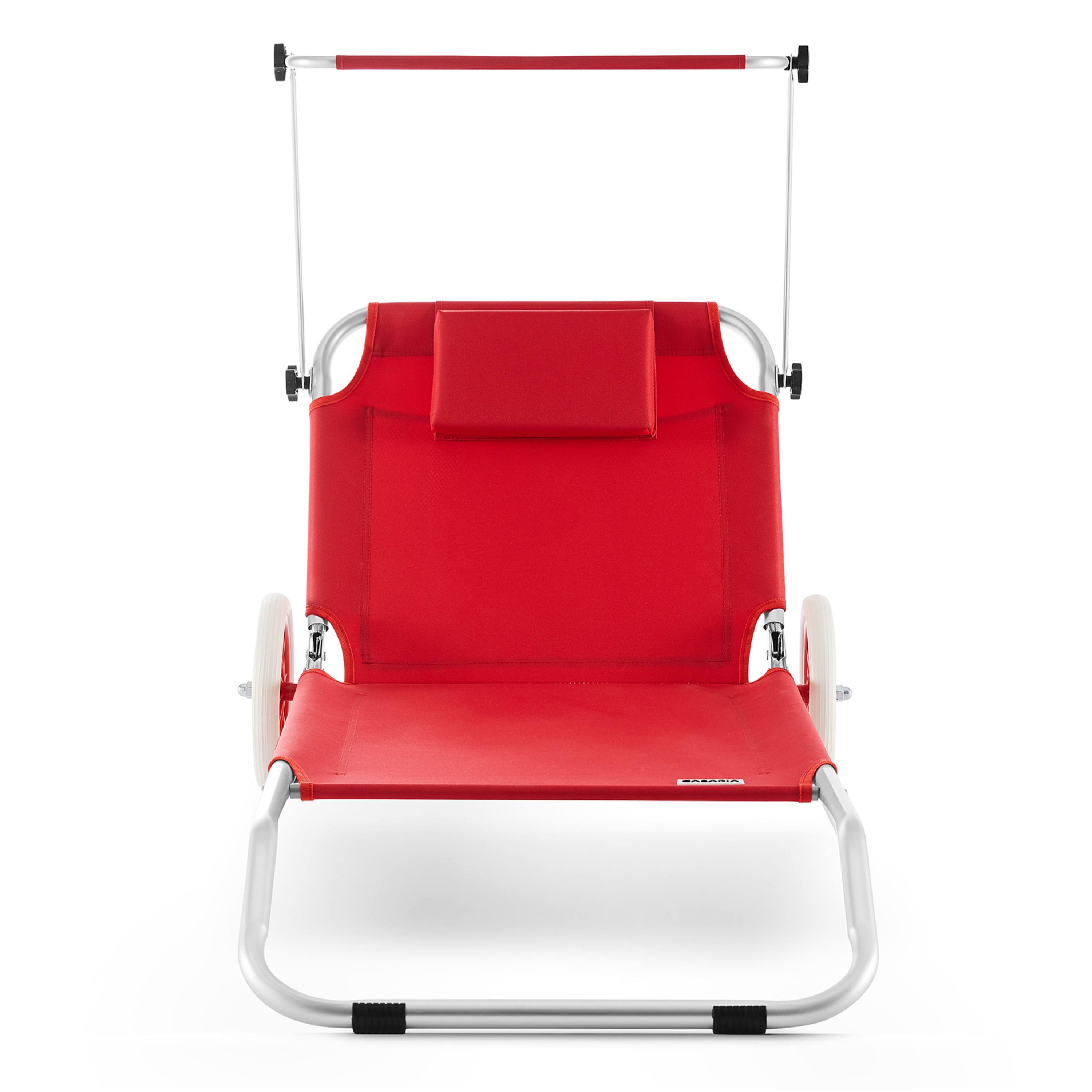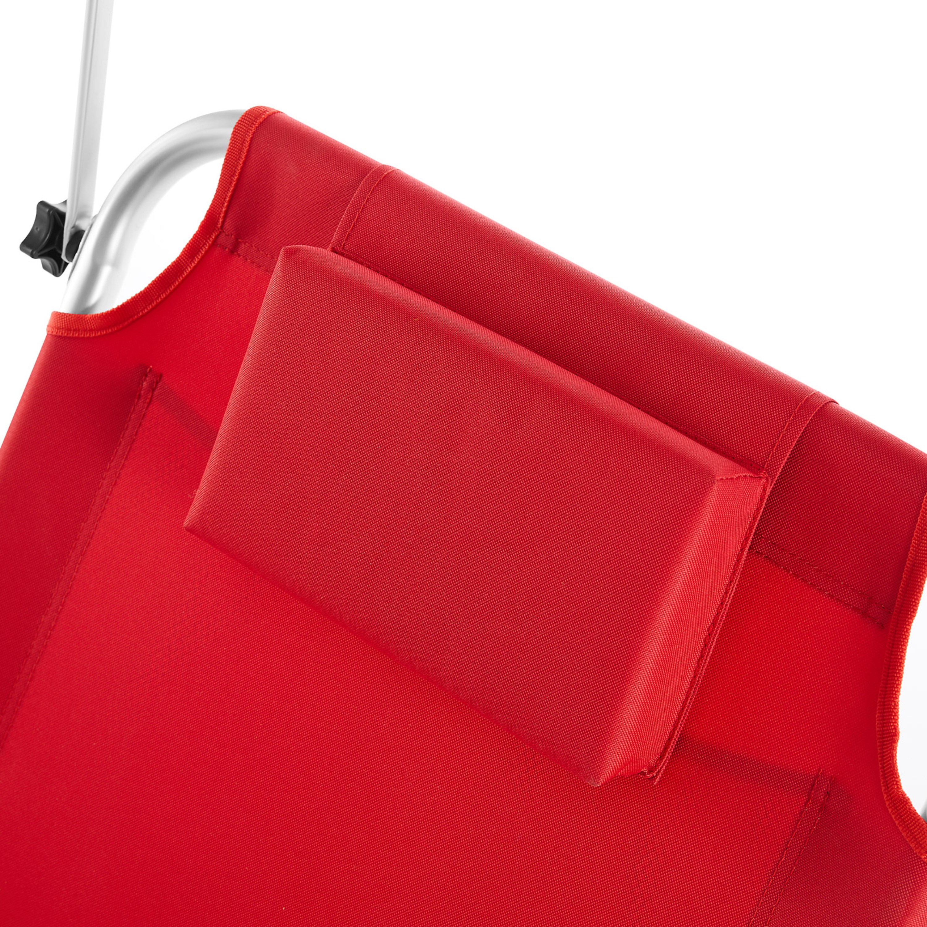Ležadlo ponúka vysoký komfort vďaka operadlu nastaviteľnému do 5 polôh, takže si jednoducho zvolíte ideálnu pozíciu na odpočinok alebo čítanie. Súčasťou je aj mäkký vankúšik zabezpečujúci pohodlnú oporu hlavy. Ďalším praktickým prvkom je plynule nastaviteľná slnečná clona, ktorá vám umožní zatieniť oblasť hlavy. Na zadnej strane operadla sa nachádza aj veľké sieťované vrecko, do ktorého môžete uložiť telefón, okuliare, opaľovací krém alebo iné drobnosti, ktoré chcete mať vždy po ruke.