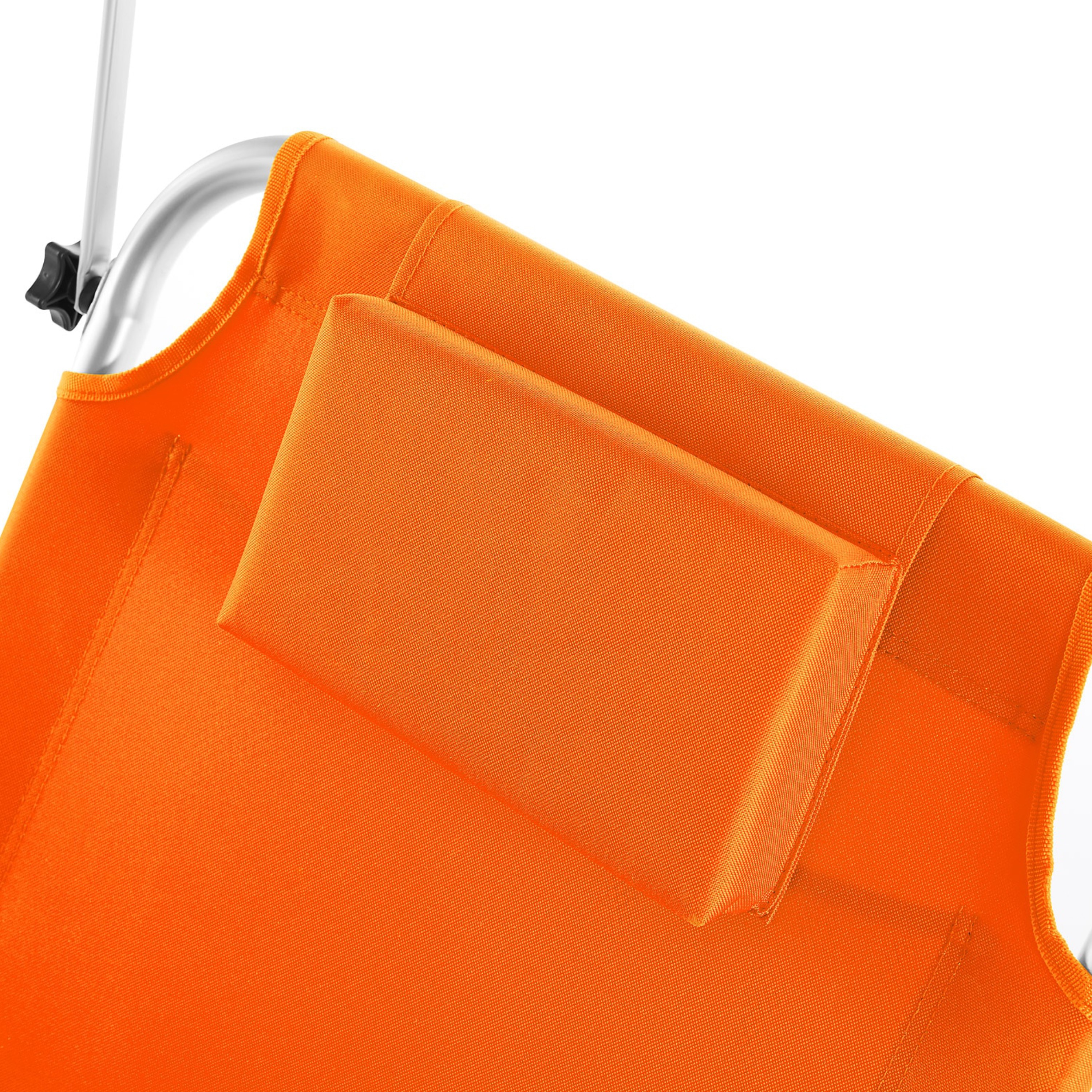 Ležadlo ponúka vysoký komfort vďaka operadlu nastaviteľnému do 5 polôh, takže si jednoducho zvolíte ideálnu pozíciu na odpočinok alebo čítanie. Súčasťou je aj mäkký vankúšik zabezpečujúci pohodlnú oporu hlavy. Ďalším praktickým prvkom je plynule nastaviteľná slnečná clona, ktorá vám umožní zatieniť oblasť hlavy. Na zadnej strane operadla sa nachádza aj veľké sieťované vrecko, do ktorého môžete uložiť telefón, okuliare, opaľovací krém alebo iné drobnosti, ktoré chcete mať vždy po ruke.