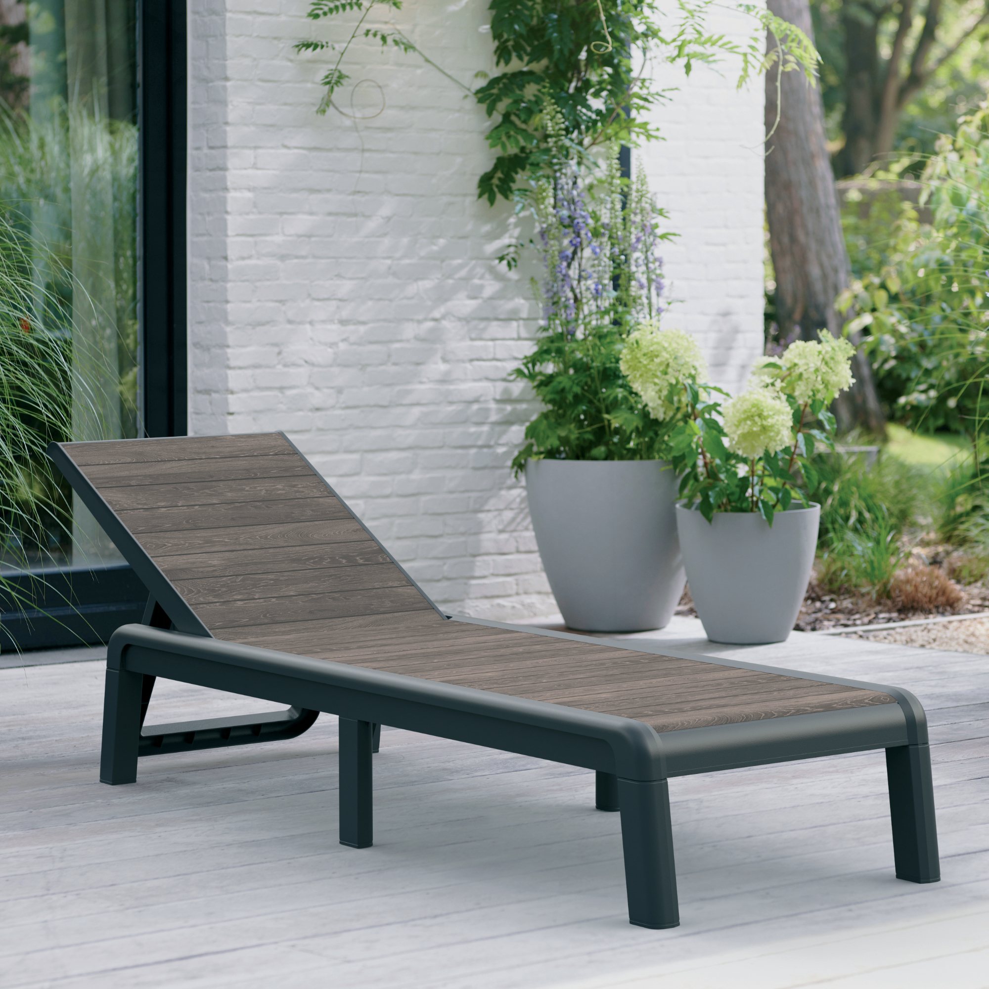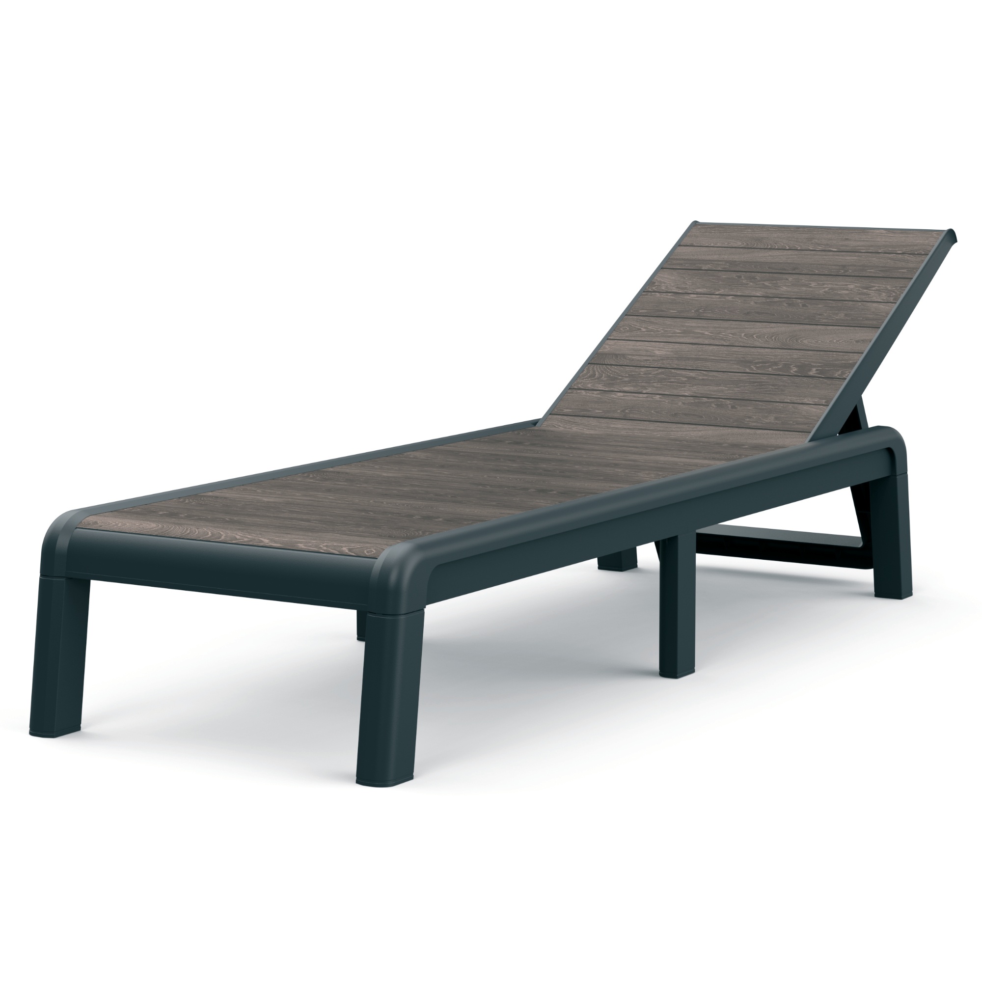 Stabilná konštrukcia ležadla je vyrobená z lisovaného plastu, ktorý je nenáročný na údržbu a odolný voči poveternostným podmienkam. Horná časť ležadla má povrch upravený technológiou DECOCOAT, vďaka ktorej dokonale pripomína drevo.
