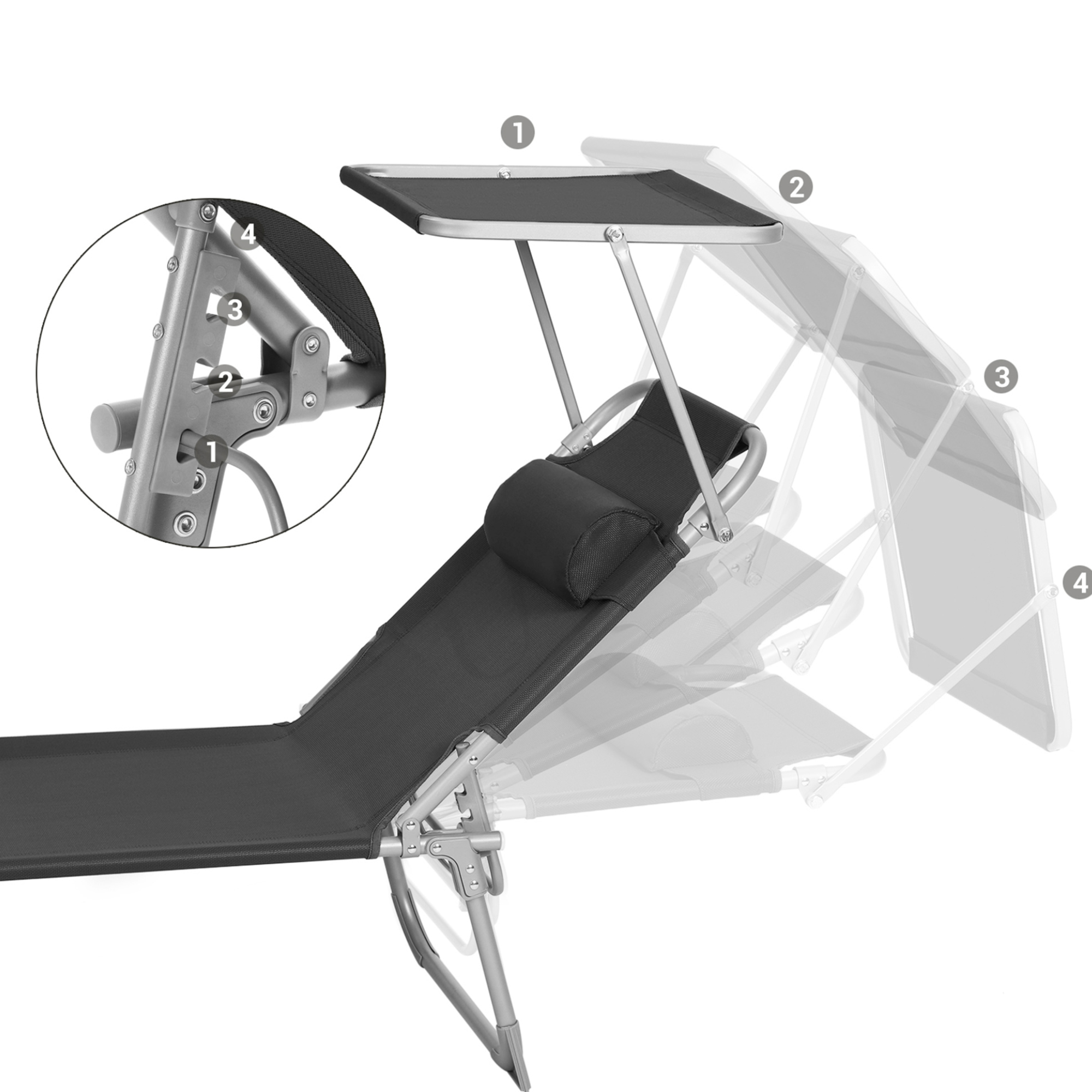 Toto ležadlo má stabilnú konštrukciu, ktorá je vyrobená z kovu. Jeho poťah je zo syntetickej tkaniny odolnej voči UV žiareniu. Ležadlo má polohovateľnú chrbtovú opierku a nastaviteľnú slnečnú clonu, a tak ho ľahko prispôsobíte vašim aktuálnym potrebám.