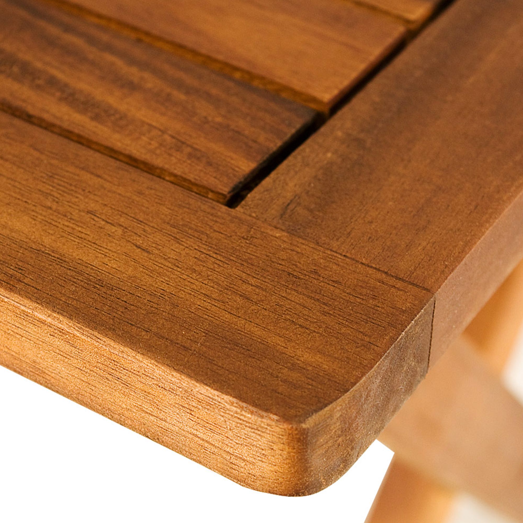 Štvorcový záhradný prístavný stolík ACACIA je vyrobený z olejovaného akáciového dreva, ktoré je odolné voči poveternostným vplyvom.