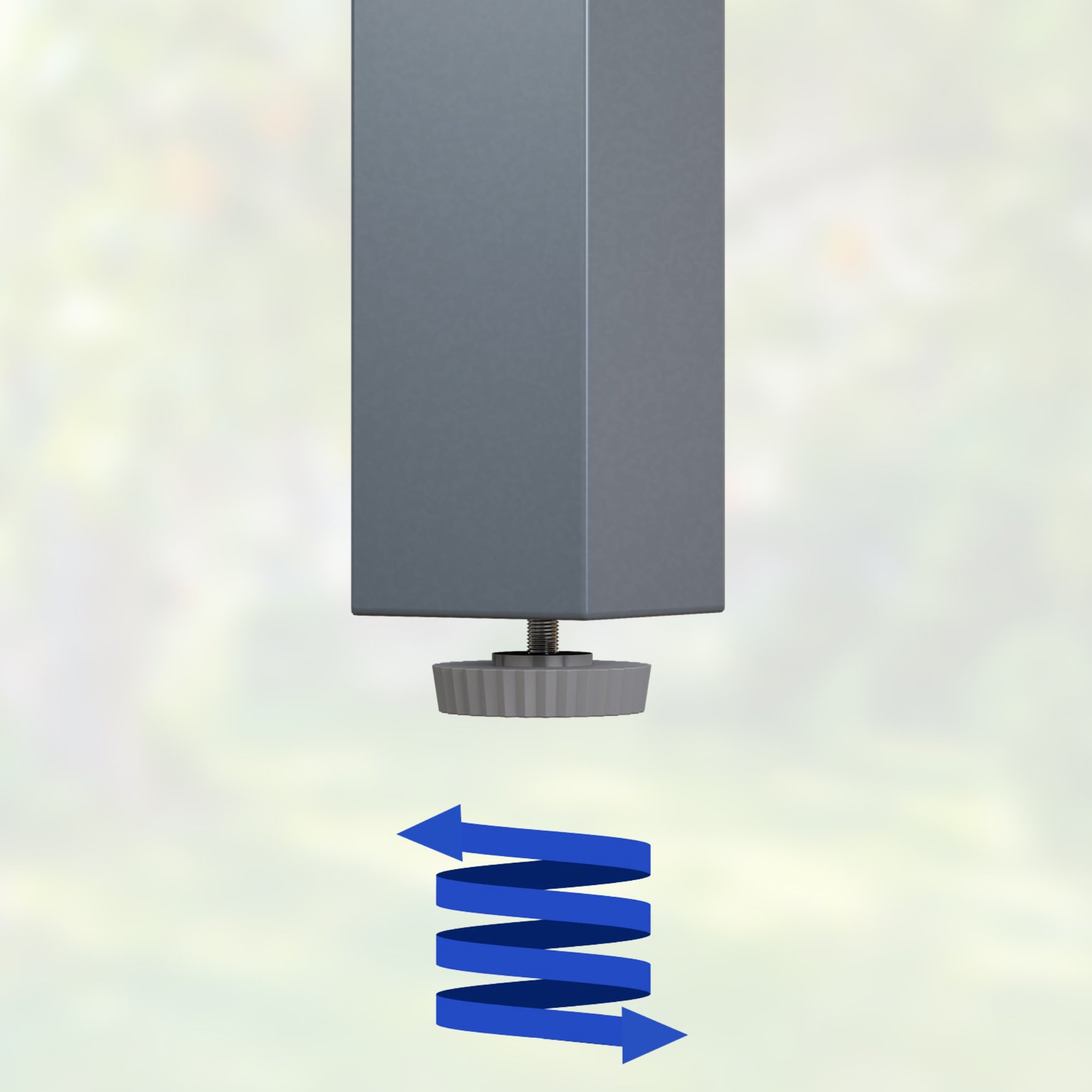 - Pevné a stabilné výškovo nastaviteľné hliníkové nohy s práškovo lakovaným povrchom