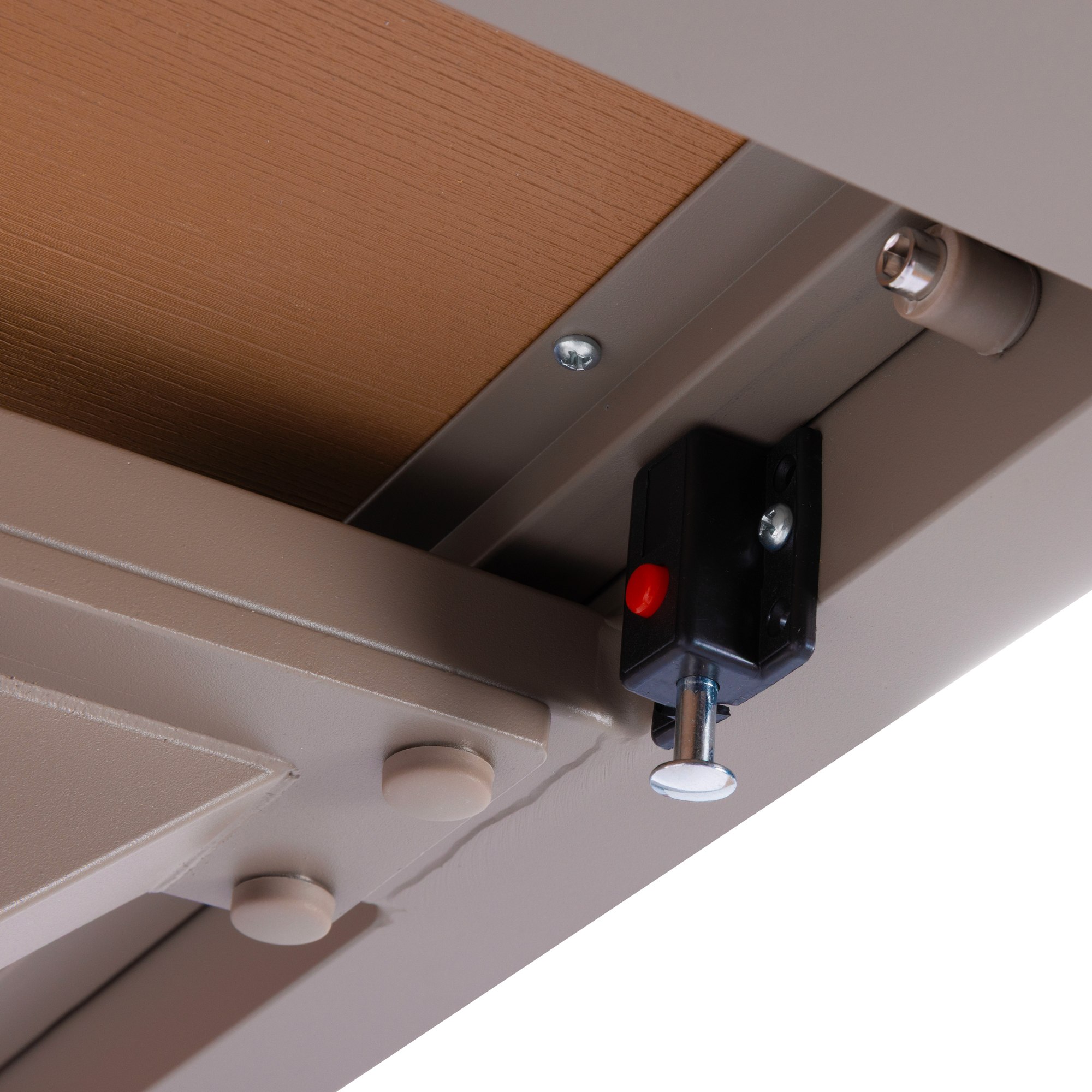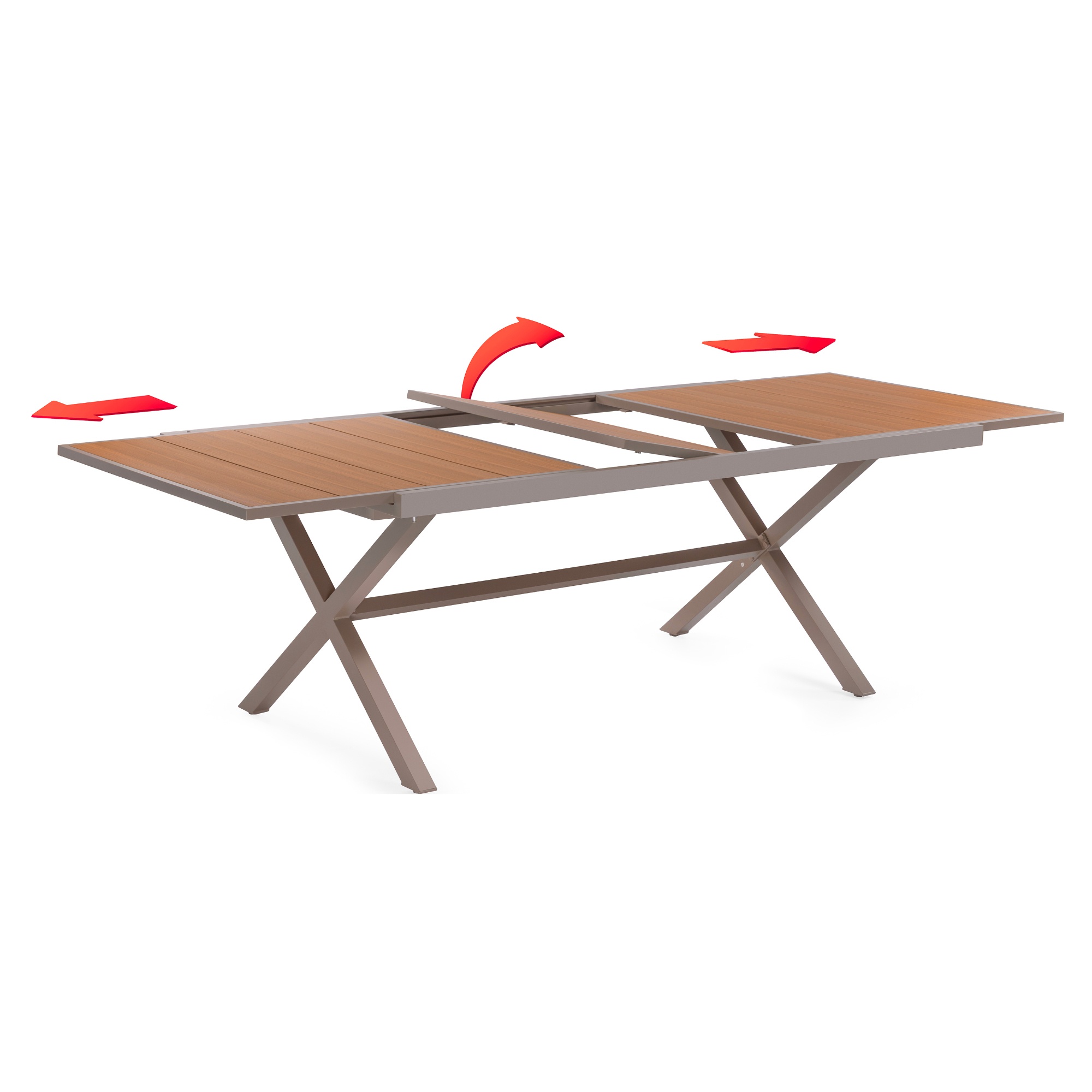 Pevné a stabilné nohy stola sú vyrobené z hliníka. Horná doska je z polywoodu so vzhľadom dreva, ktorý je nielen nenáročný na údržbu, ale aj odolný voči vplyvom počasia.