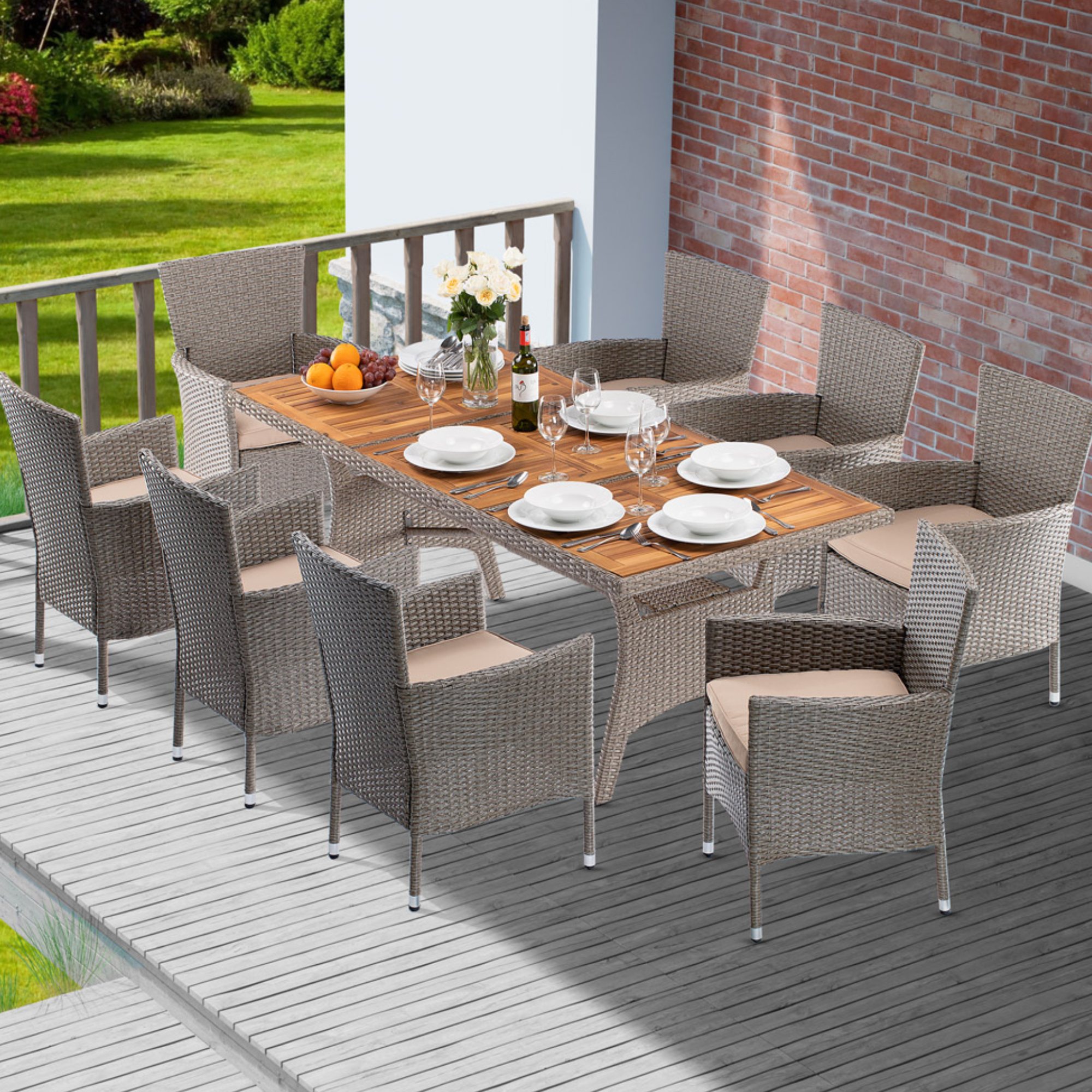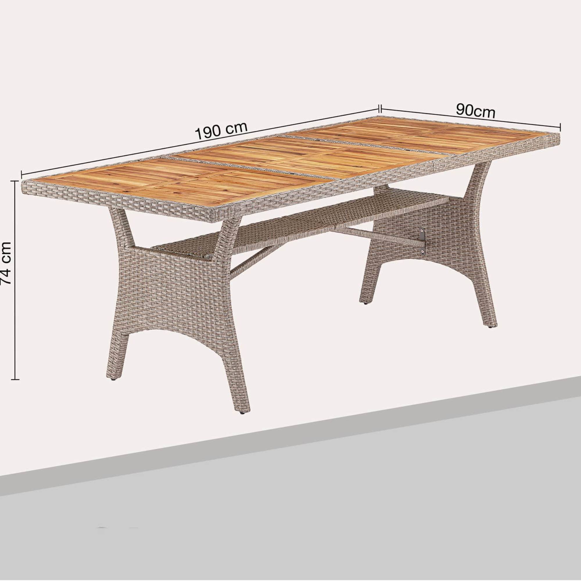 Stôl má pevnú a stabilnú oceľovú konštrukciu, ktorá je práškovo lakovaná a opletená polyratanom. Konštrukcia je odolná voči poveternostným vplyvom a UV žiareniu a ľahko sa čistí. Horná doska je vyrobená z masívneho akáciového dreva, ktorého povrch je olejovaný. Súčasťou stola je 1 vložená polica, na ktorú si môžete odložiť časopisy aj rôzne drobnosti.