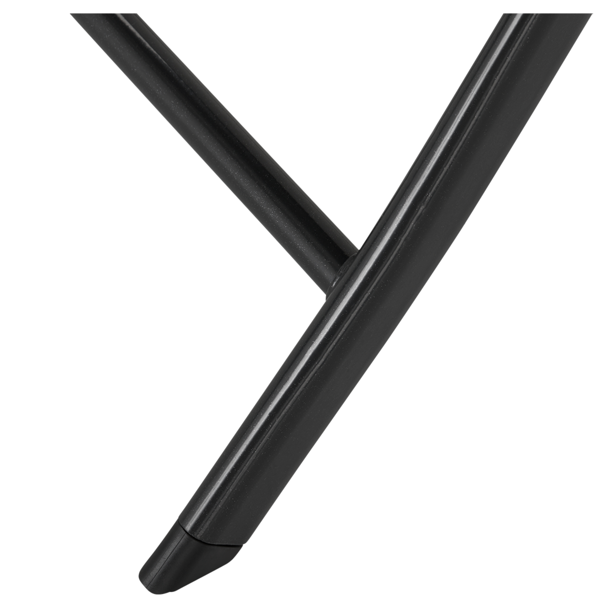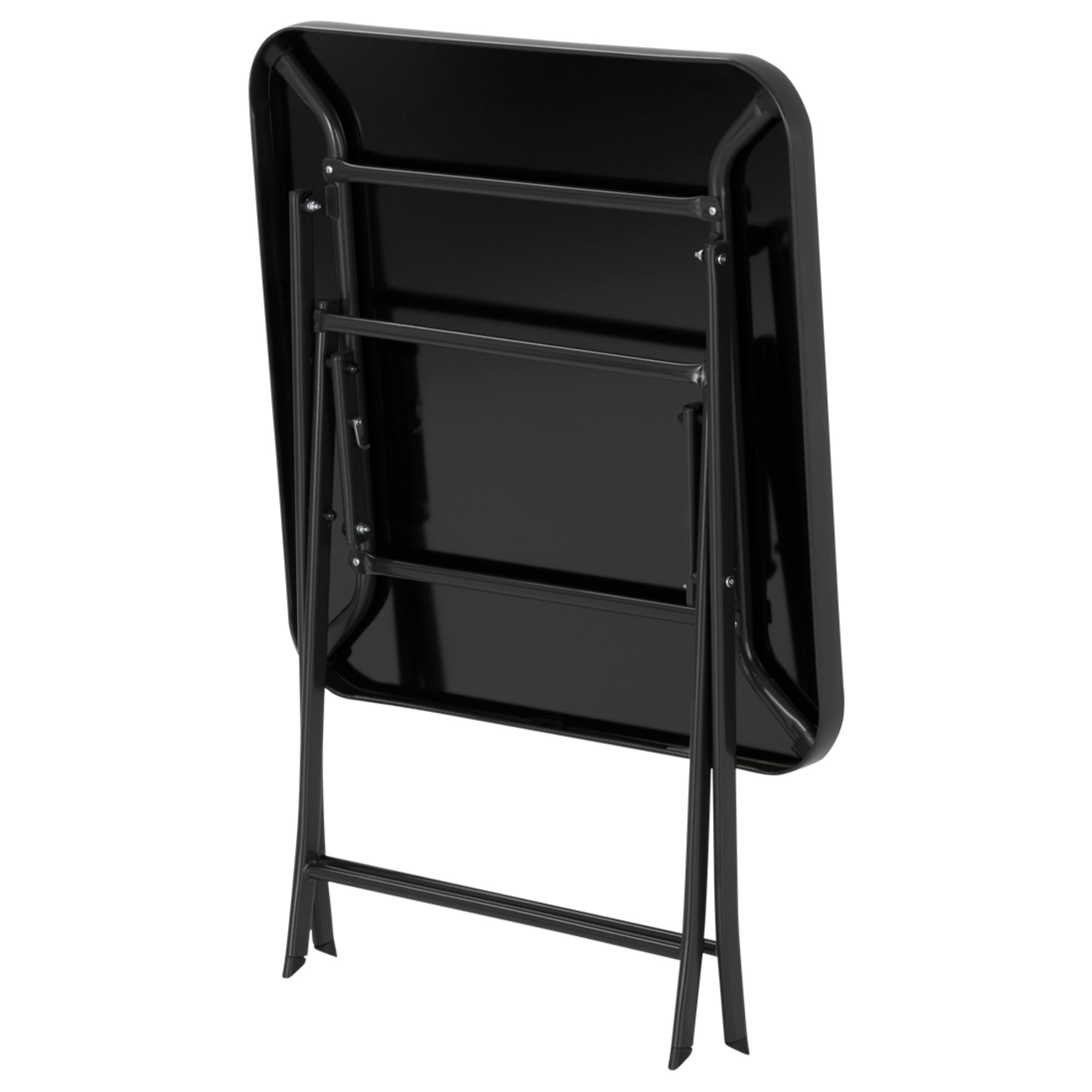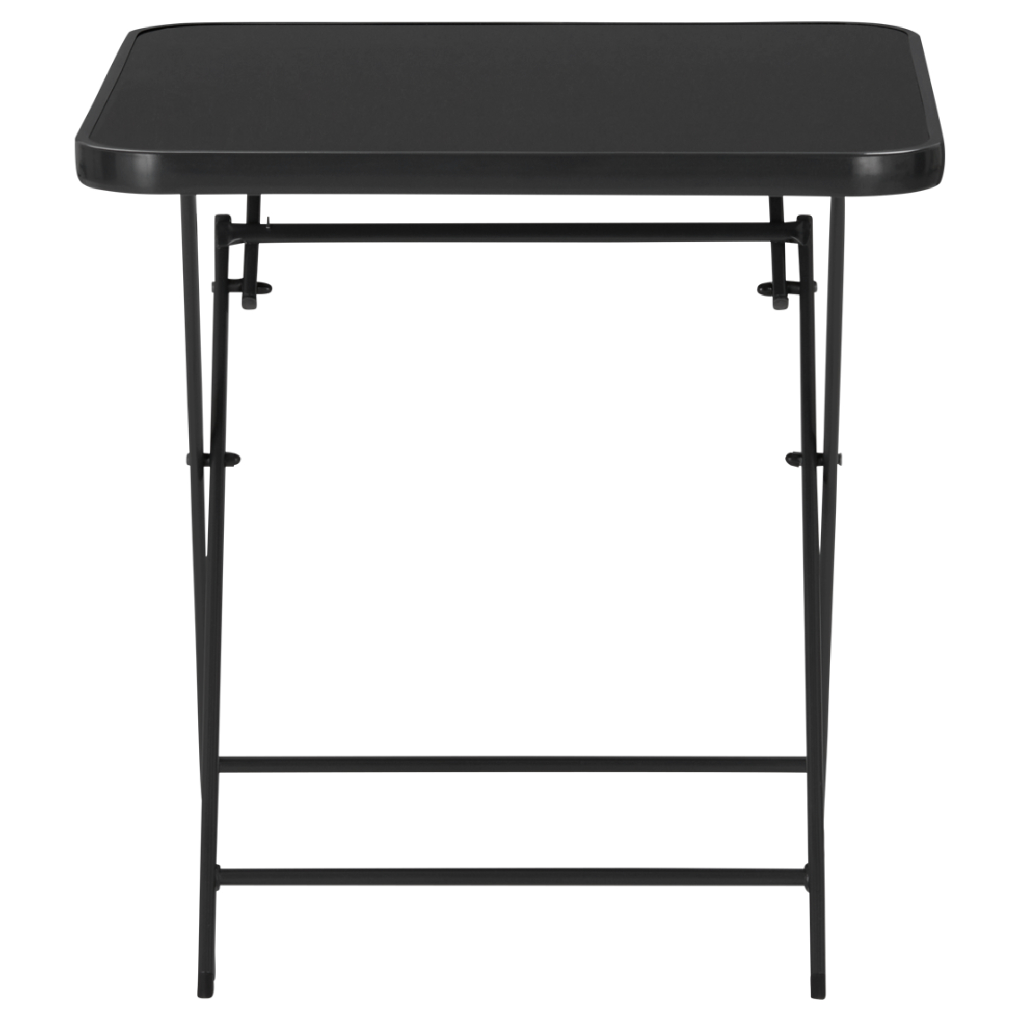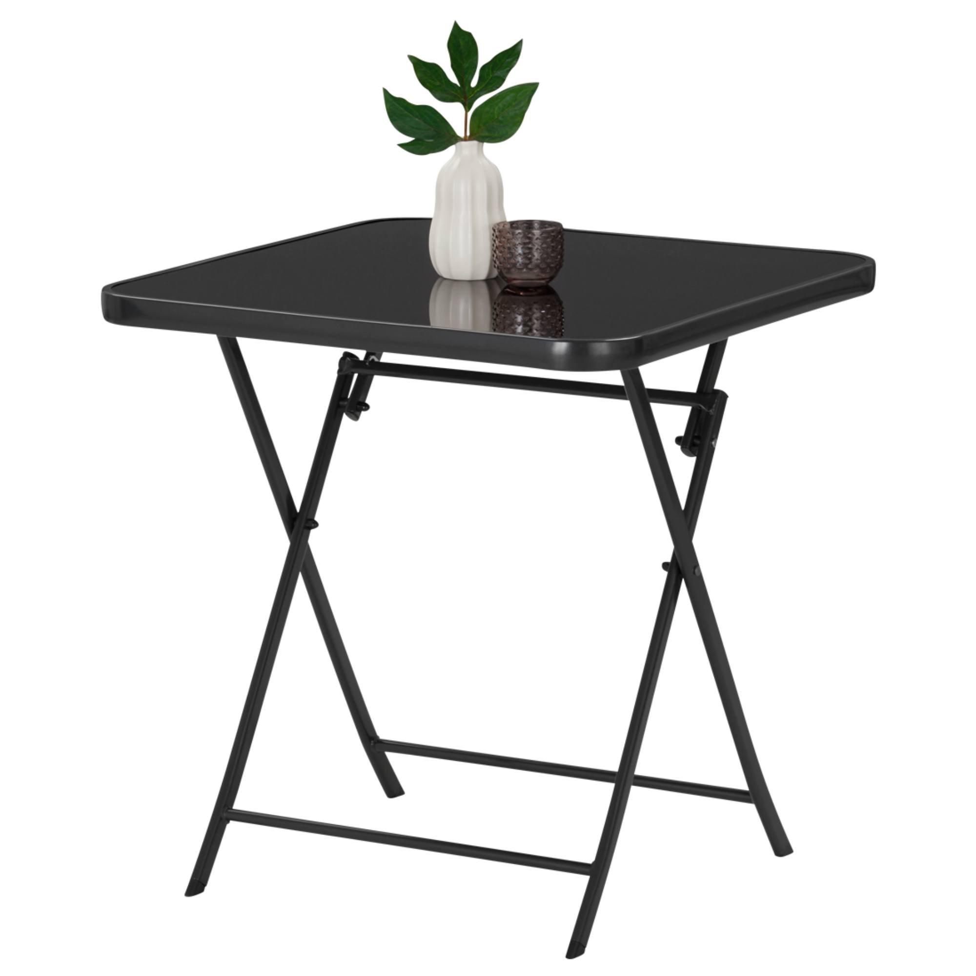 Jeho kovová konštrukcia v antracitovej farbe zaisťuje stabilitu a pevnosť, zatiaľ čo sklenená doska v čiernej farbe dodáva stolu nadčasový vzhľad. Vďaka jednoduchému sklápaniu je stolík veľmi jednoduchý na uskladnenie a nezaberie veľa miesta. Jeho kompaktné rozmery umožňujú využitie aj v menších priestoroch.