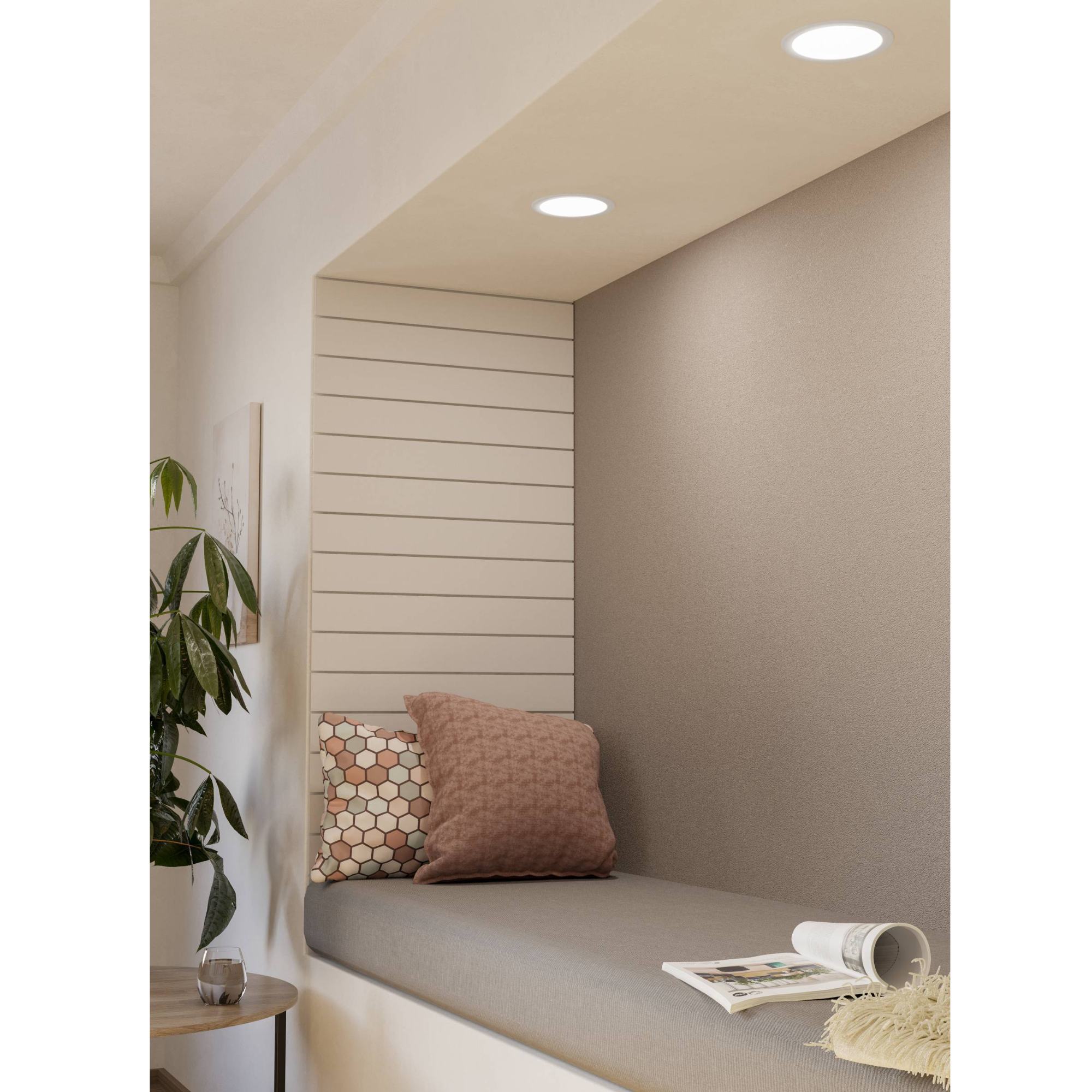 Zapustené svietidlo FUEVA 2 zaujme svojim jednoduchým dizajnom. Ozdobí tak akúkoľvek časť vášho interiéru. Skvele sa hodí ako osvetlenie do chodby, predsiene alebo šatne. Telo je z kovu, tienidlo zase z plastového materiálu bielej farby. Svietidlo je dodávané vrátane LED zdroja v teplej bielej farbe. So zapusteným svietidlom FUEVA 2 si vytvoríte štýlové prostredie vo svojom interiéri.