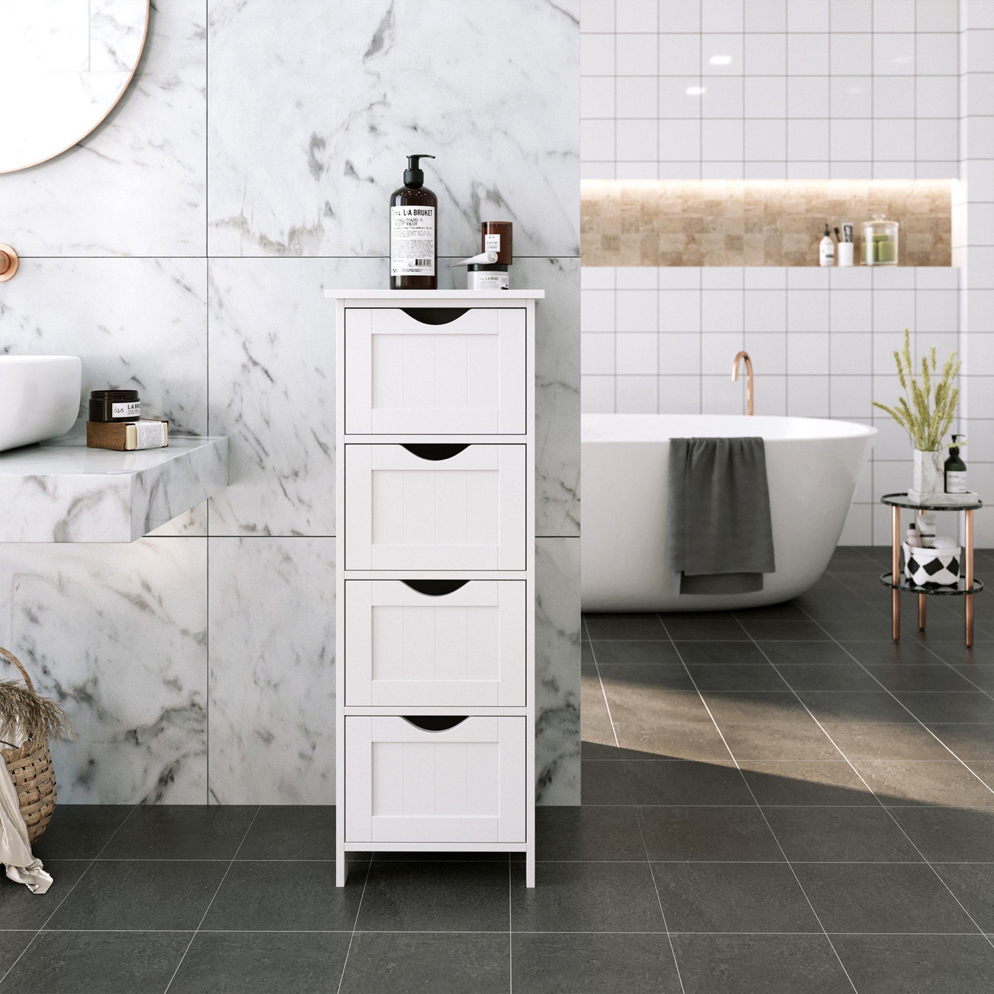 - Typy kúpeľňových skriniek: Nízke kúpeľňové skrinky