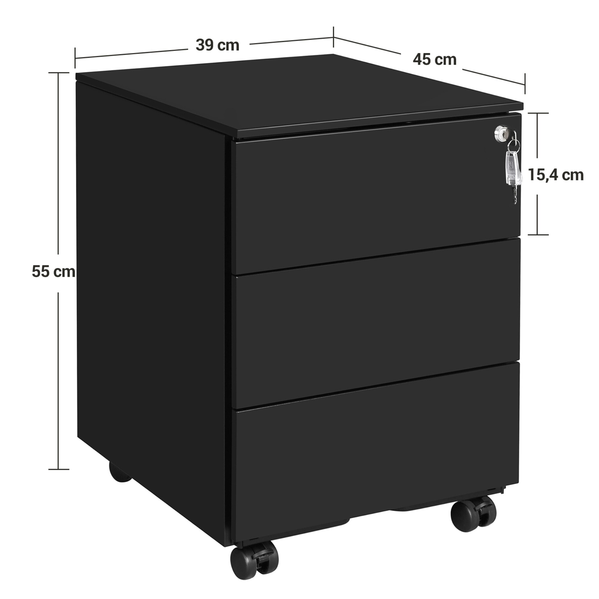 Zásuvkový kontajner CORRO je z odolného kovového materiálu a obsahuje tri priestranné zásuvky. Prvá zásuvka je uzamykateľná. Kontajner je vybavený kolieskami, ktoré umožňujú jednoduchú manipuláciu.