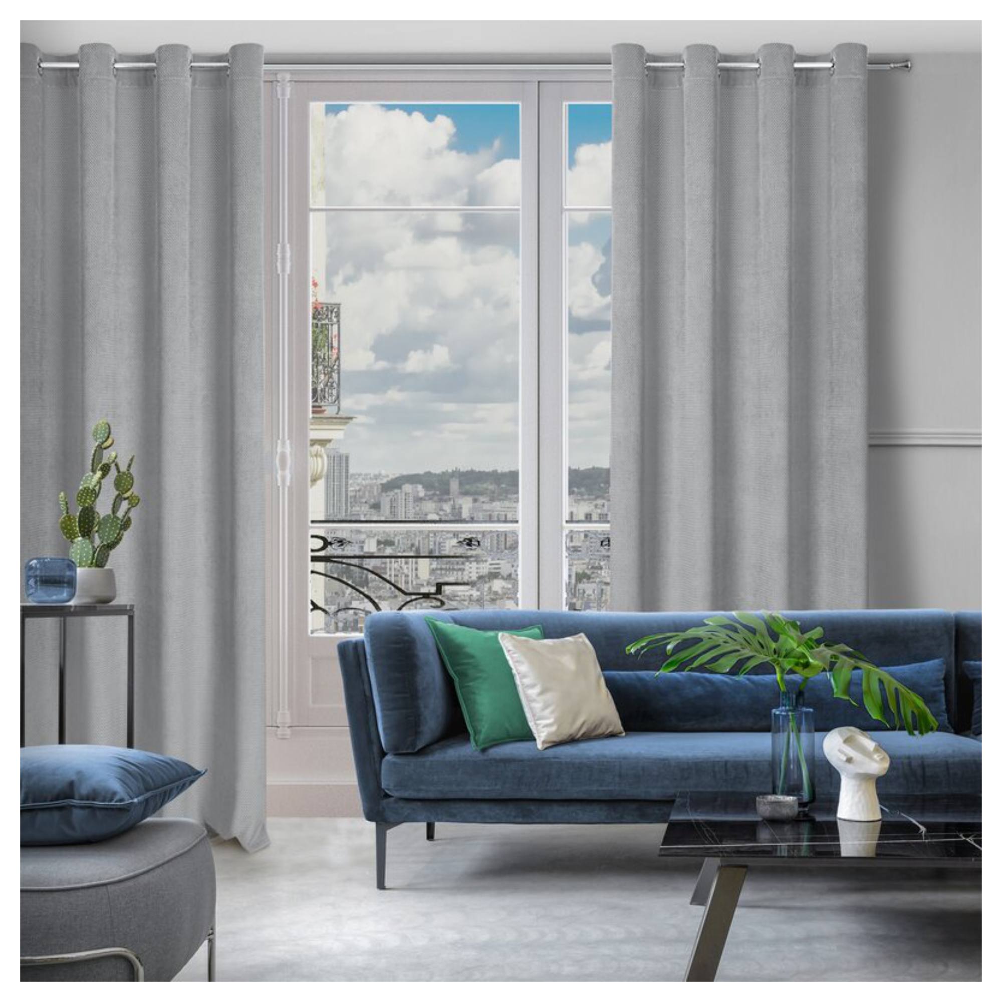 Záves ELIZA s jemným plastickým vzorom je praktickým a dekoratívnym doplnkom, ktorý vkusne oživí váš domov. Vďaka silnejšej látke zamatového vzhľadu záves filtruje priame slnečné žiarenie a vytvára tak v miestnosti príjemnú atmosféru, ale miestnosť úplne nezatemní. Kovové očká slúžia na jednoduché zavesenie závesu na garnižu, umožňujú efektné riasenie a tiež jeho ľahkú výmenu.