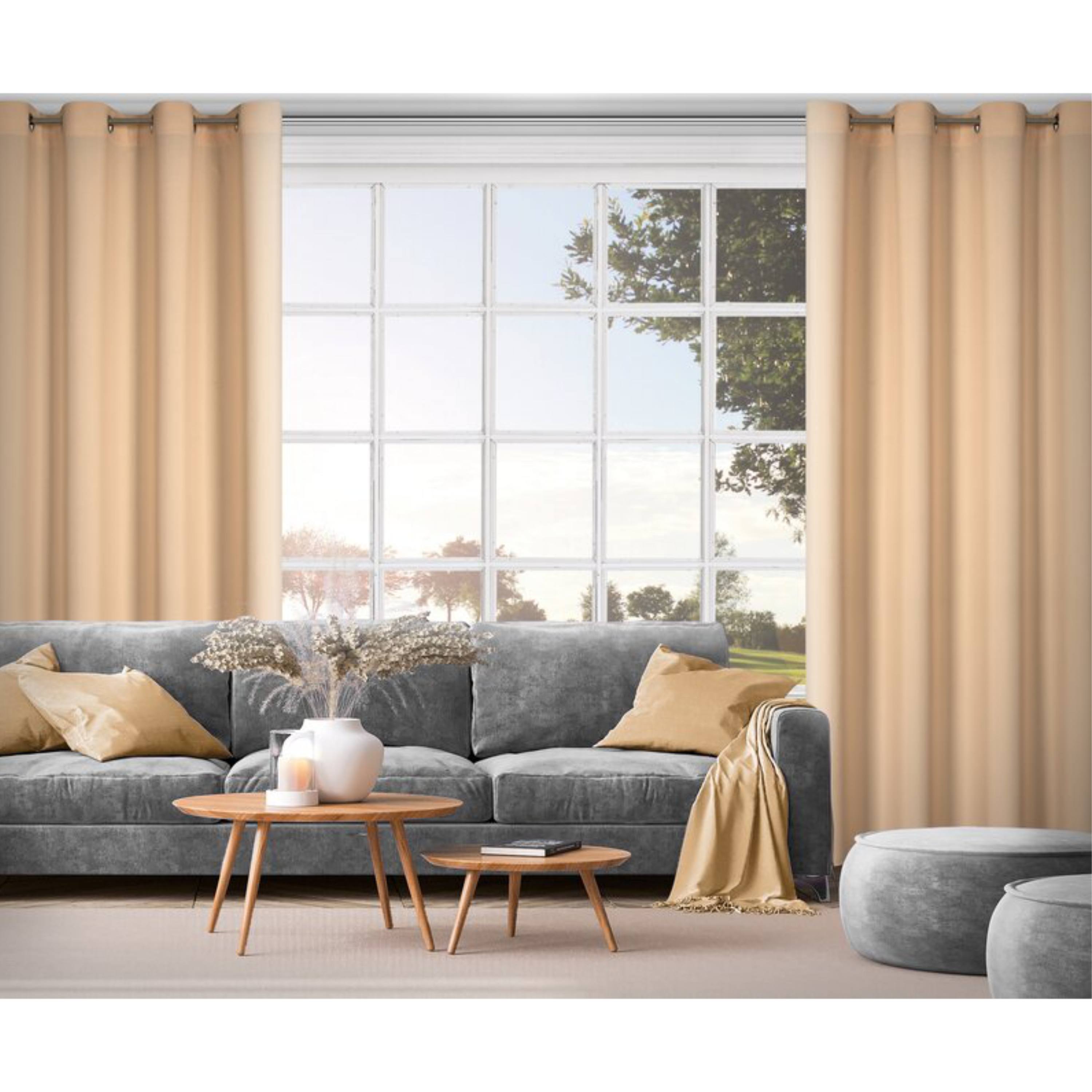 Minimalistický záves RITA je ideálnym bytovým doplnkom, ktorý dokonale zútulní takmer akýkoľvek interiér. Hladká tkanina so štruktúrou plátna chráni pred slnečným svitom, ale miestnosť úplne nezatemní. Jednofarebné vyhotovenie dokonale splní svoju praktickú aj dekoratívnu funkciu. Záves je vyrobený zo 100% polyesteru, vďaka ktorému sa vám bude textil ľahko udržiavať. Na ľahké zavesenie na garnižu slúžia kovové očká, ktoré tiež umožňujú efektné riasenie.