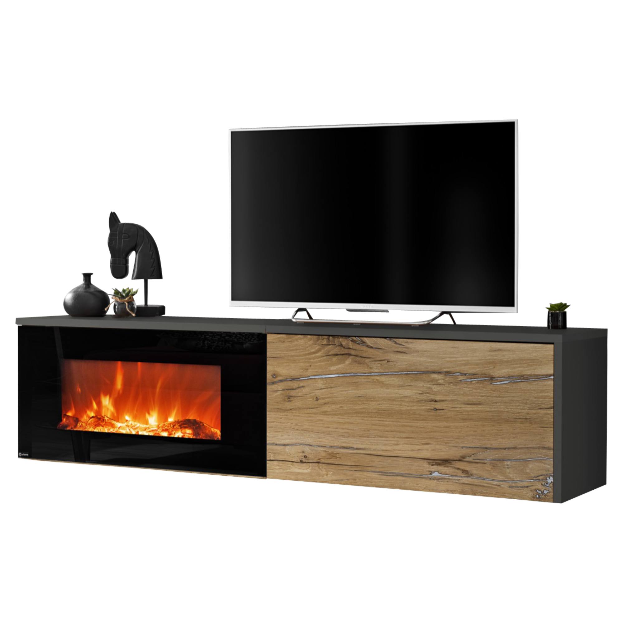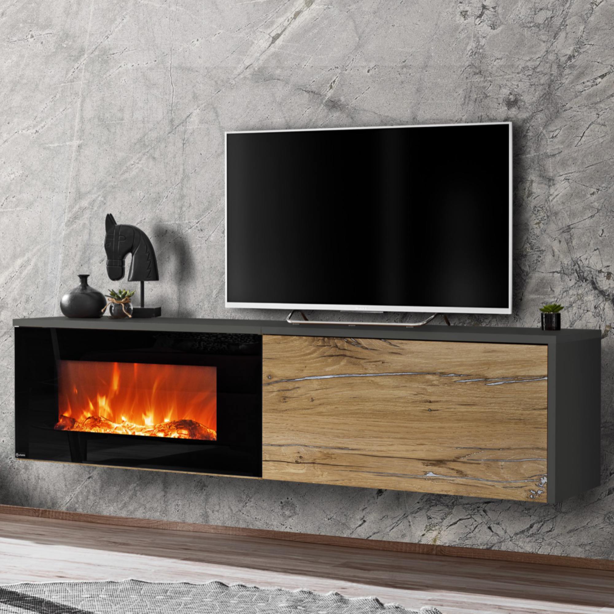 Závesná skrinka s elektrickým krbom DELLOS VI - dub/antracitová