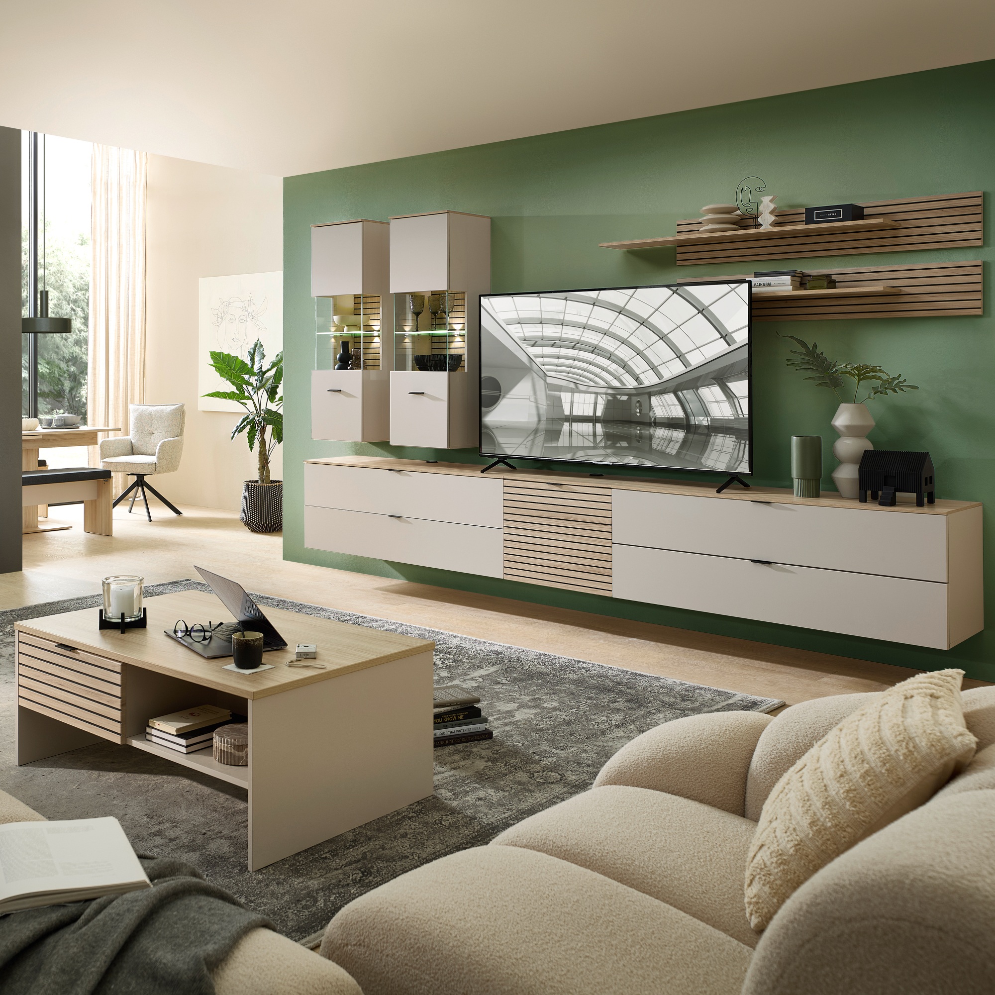 Závesná vitrína CELINA - kašmírová/dub riva
