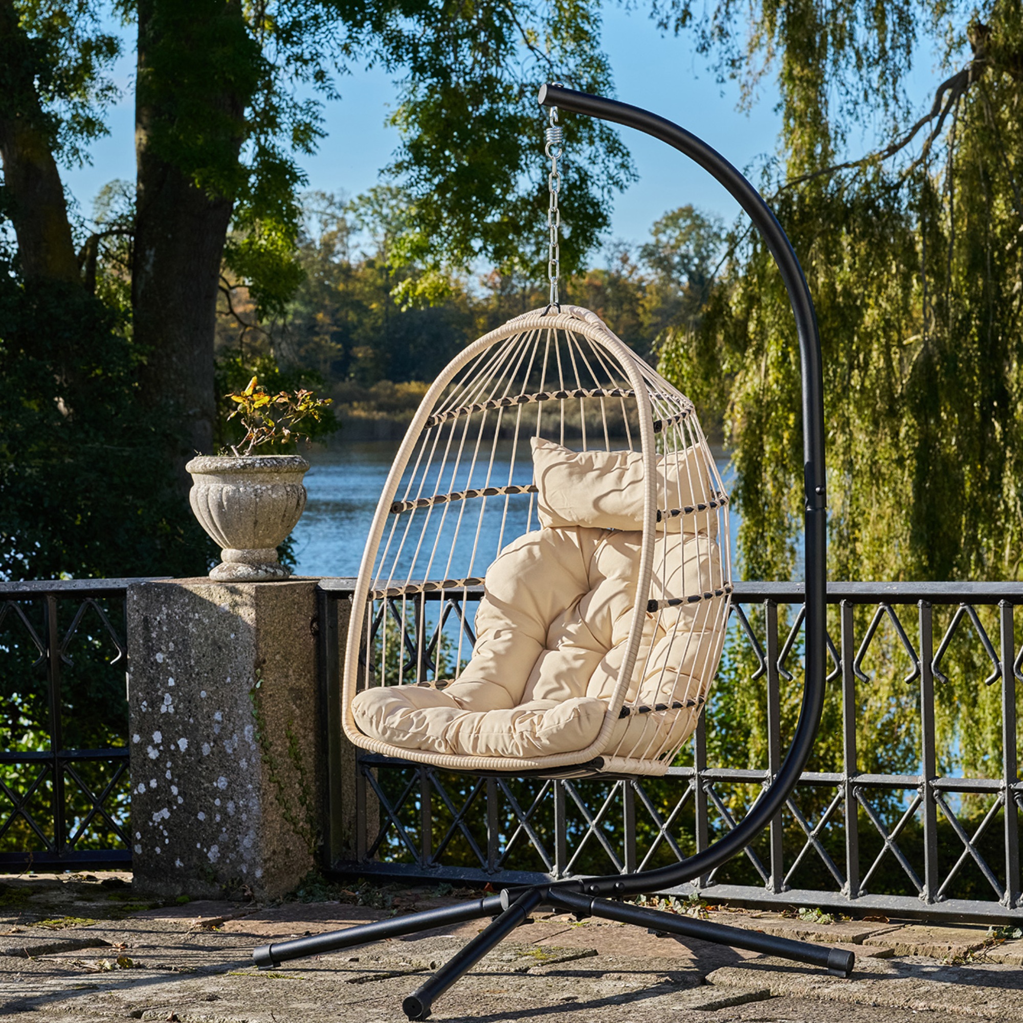 Závesné kreslo POTROS vám umožní prežívať v záhrade príjemné chvíle relaxu.
