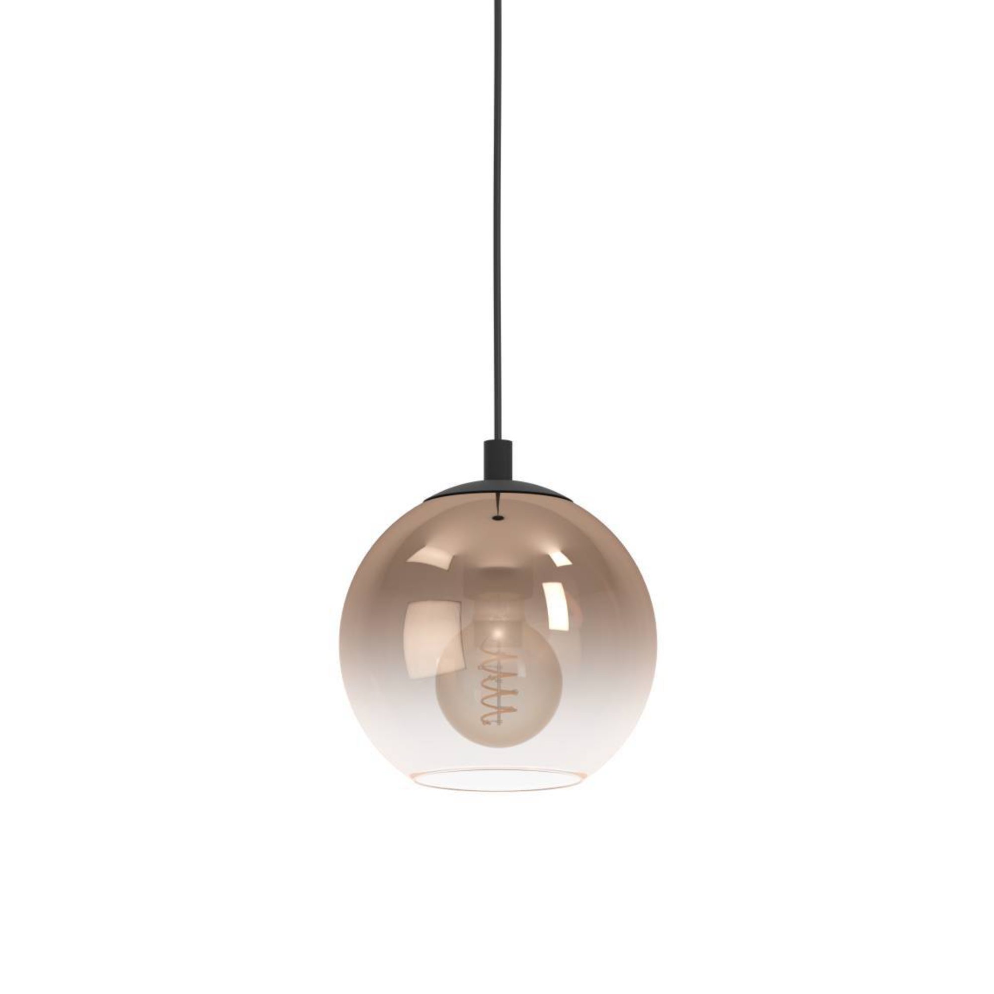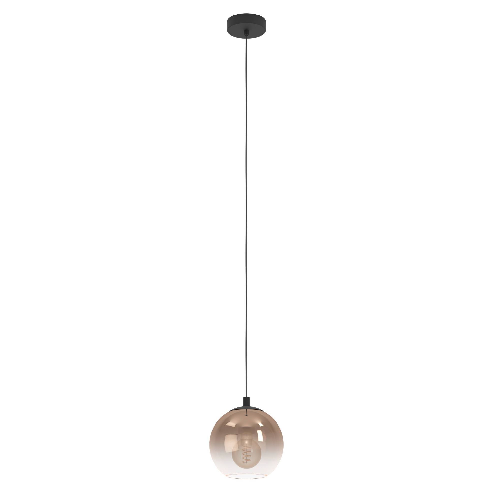 Má kovovú konštrukciu v matnom čiernom prevedení, na ktorej je zavesené tienidlo zo skla s použitím dymového efektu, ktorý mu dodáva neobyčajný retro nádych. Odporúčame použiť žiarovky v retro dizajne napríklad so špirálovou diódou, čím posuniete svietidlo na vyššiu úroveň. Je ideálnym osvetlením do obývacej izby, jedálne či spálne.