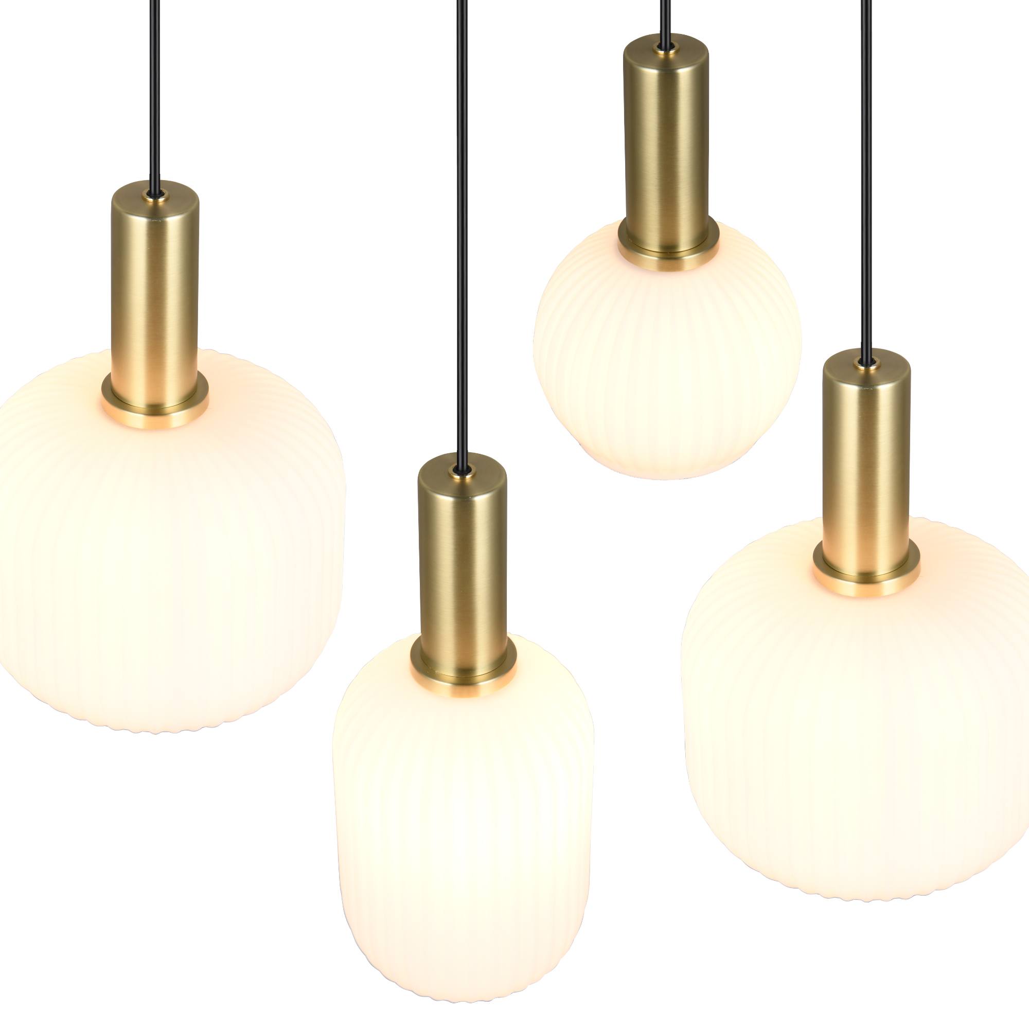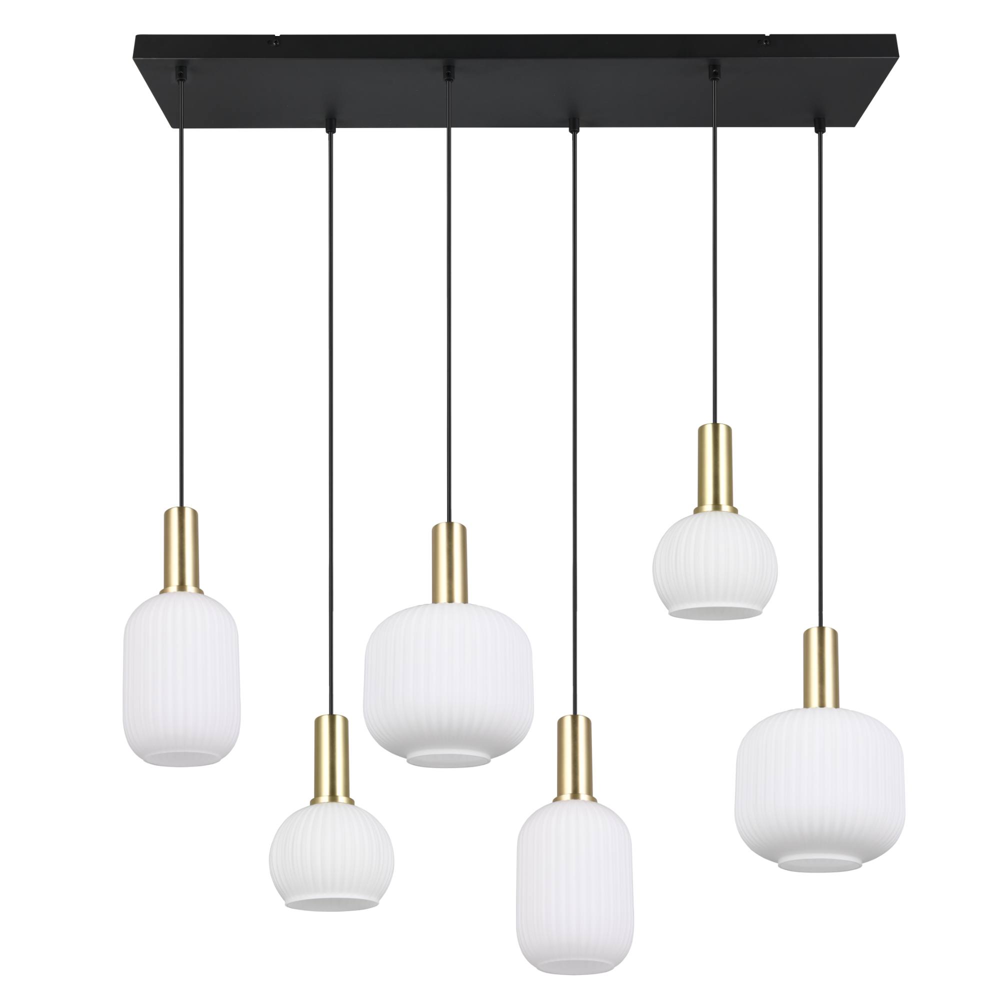 Má čierny kovový základ, na ktorom je zavesených 6 tienidiel v rôznych výškach. Tienidlá sú vyrobené zo skla v rôznych tvaroch a veľkostiach. Tento pútavý originálny dizajn zaujme na prvý pohľad. Zaručene oživí každú miestnosť a dodá interiéru luxusný nádych. Je ideálnym osvetlením nad konferenčný alebo jedálenský stôl.