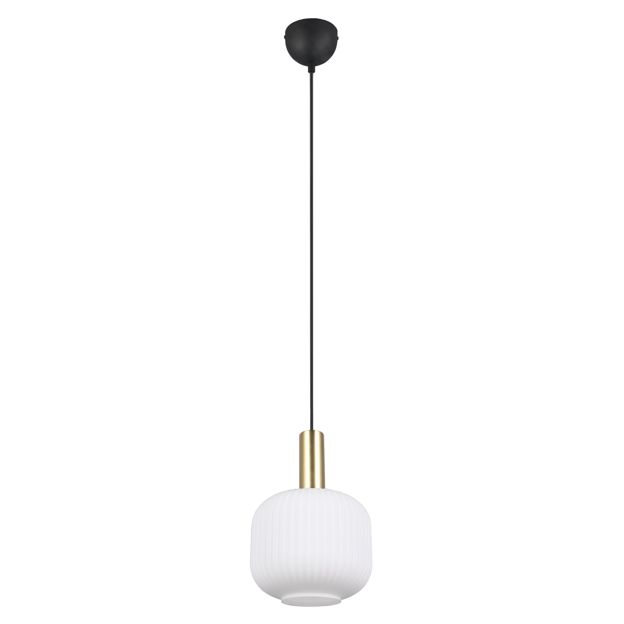 Má čierny kovový základ, na ktorom je zavesené sklenené tienidlo s priemerom 20 cm. Jeho výrazný a elegantný dizajn zaručene oživí každý priestor a dodá interiéru luxusný nádych. Vynikne v obývačke, jedálni aj spálni. Je ideálnym doplnkom nad barový pult alebo jedálenský stôl.