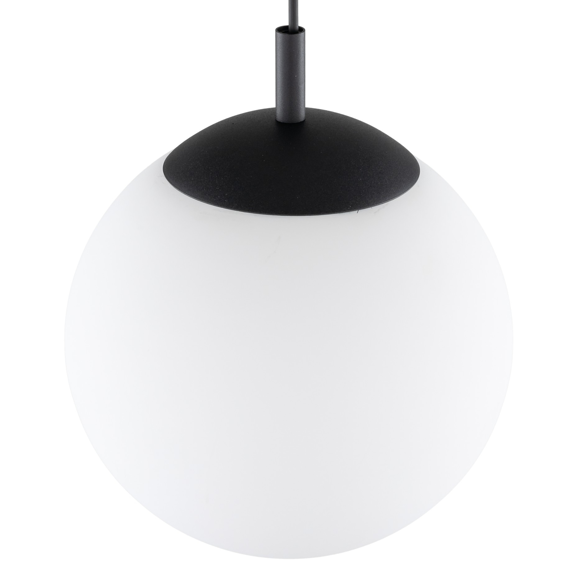 Má čiernu kovovú konštrukciu, na ktorej je zavesené okrúhle tienidlo z bieleho skla s priemerom 30 cm. To rovnomerne rozptyľuje svetlo po miestnosti a vytvára útulnú atmosféru. Bude skvelým doplnkom nad barový pult, konferenčný alebo jedálenský stôl. Vďaka svojmu čistému minimalistickému dizajnu sa ľahko kombinuje s rôznymi štýlmi interiéru.