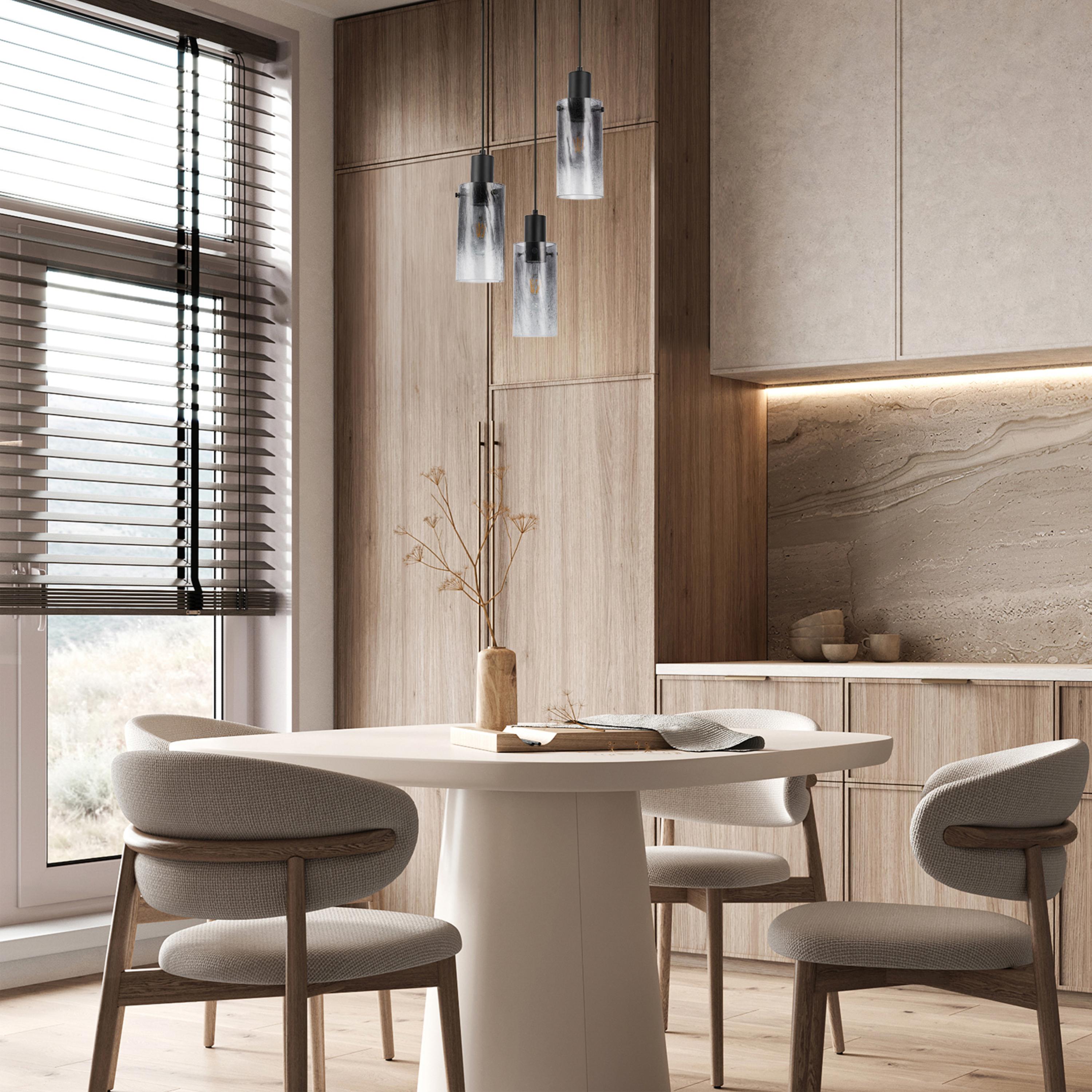 Závesné svietidlo FUMEA 3 v sebe spája modernú jednoduchosť s jemným nádychom industriálneho štýlu. Kombinácia čierneho kovového tela a tienidiel z dymového skla vytvára príjemný kontrast, ktorý vynikne ako v moderných, tak aj v klasicky ladených interiéroch. Dymové sklo jemne rozptyľuje svetlo a vytvára útulnú atmosféru. Osvetlenie je tak ideálne na zavesenie nad jedálenský stôl, do obývacej izby či ako dekoratívne osvetlenie v spálni. Svietidlo je výškovo nastaviteľné, takže ho jednoducho prispôsobíte priestorovým možnostiam.