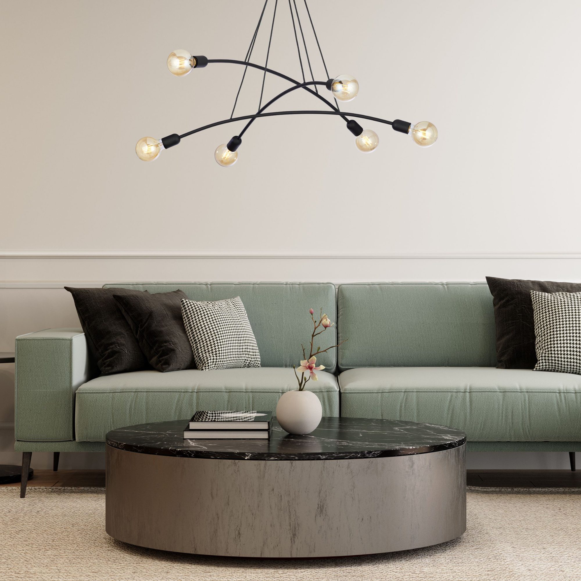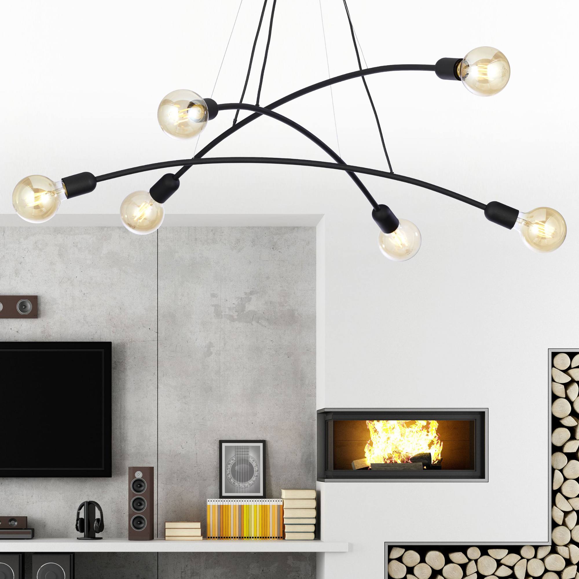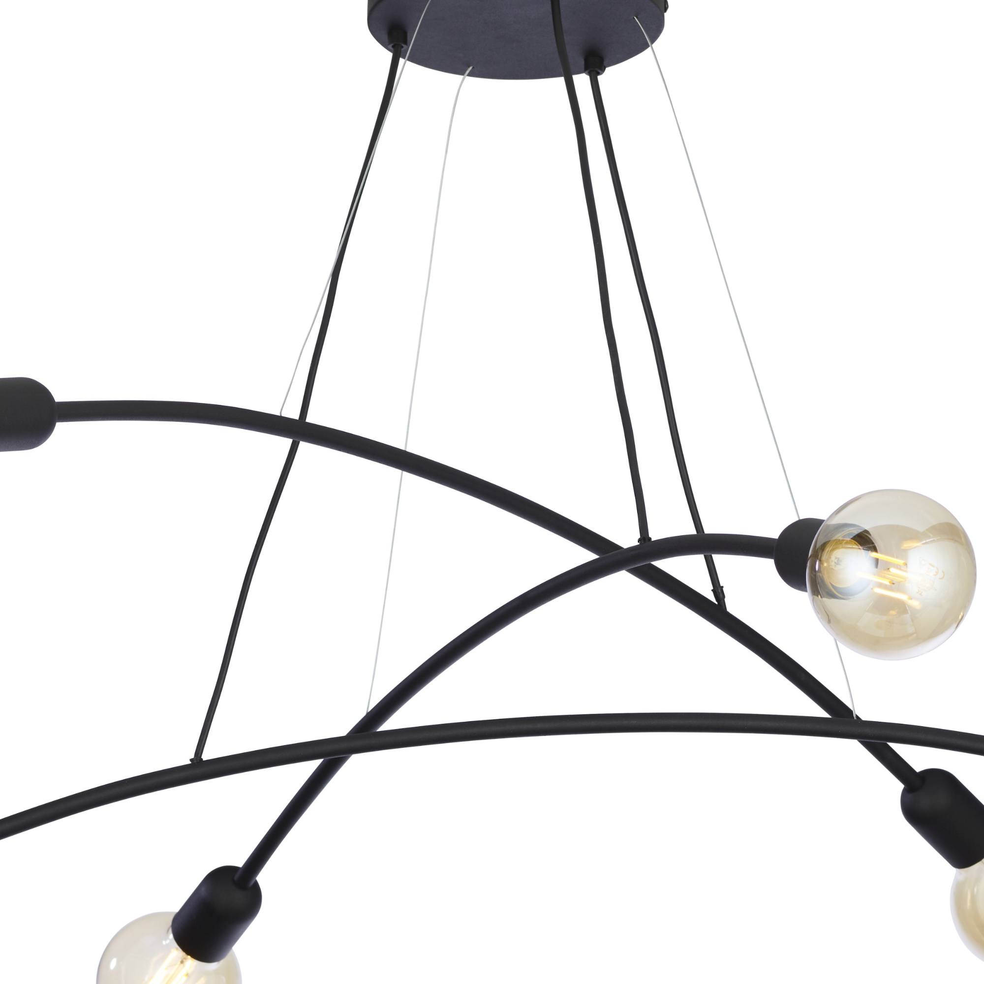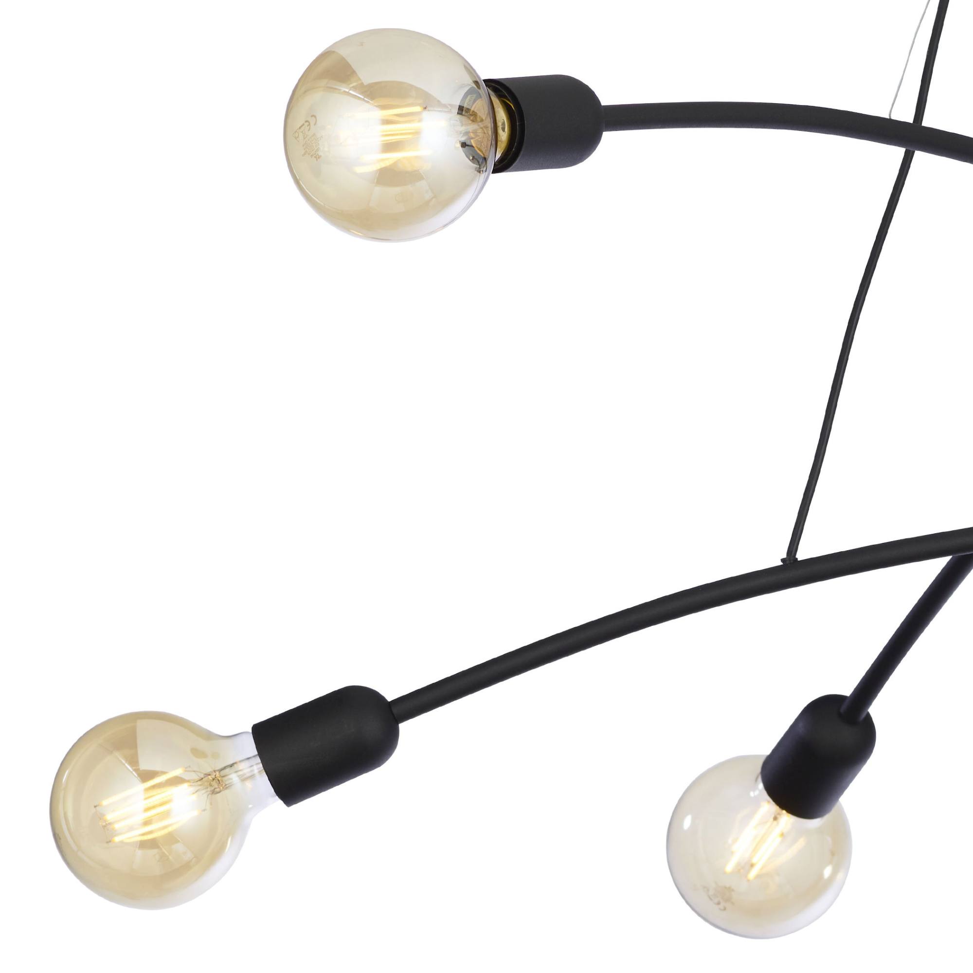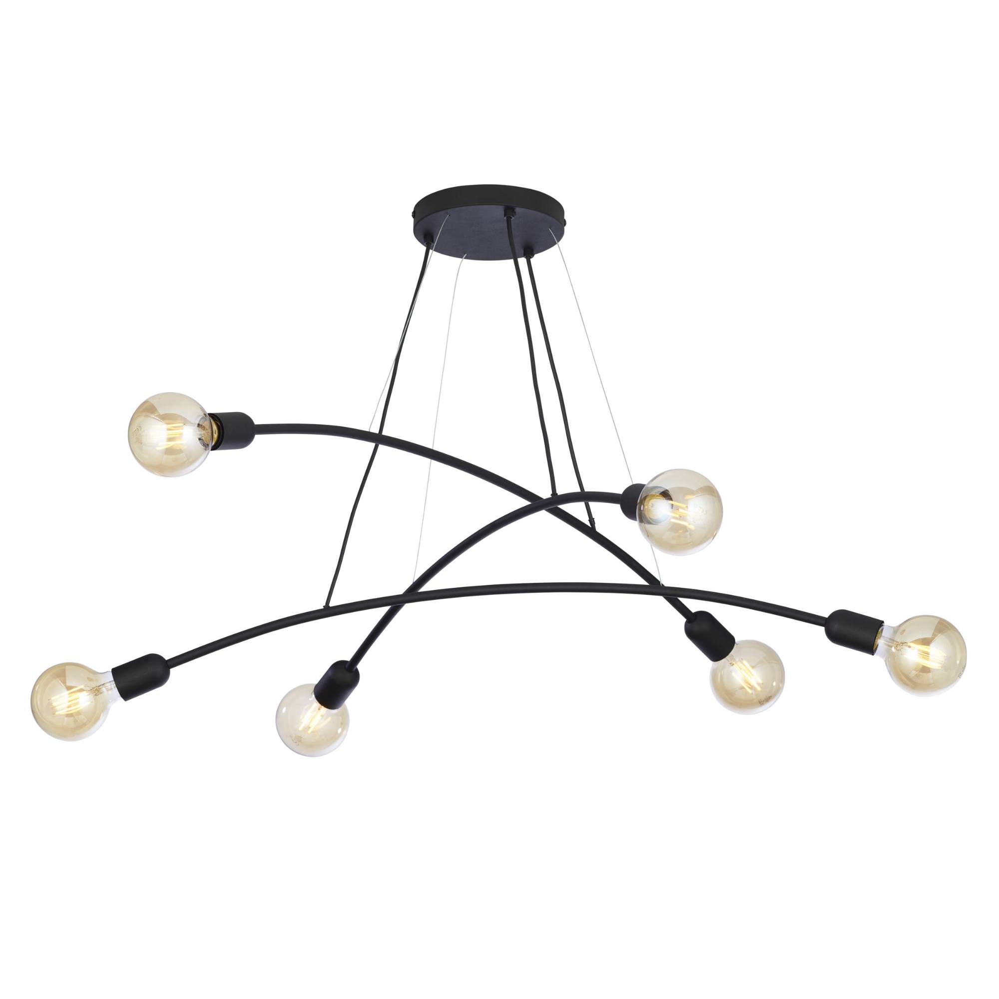 Má kovovú konštrukciu v čiernej farbe, na ktorej sú zavesené 3 ramená. Na každom ramene sú umiestnené 2 objímky, ktoré zabezpečujú príjemné rozloženie svetla. Tento jednoduchý vzdušný dizajn bude elegantným doplnkom každého obývacieho priestoru, jedálne aj spálne. Odporúčame doplniť svietidlo zaujímavými žiarovkami, čím posuniete tento dizajn na ďalšiu úroveň.