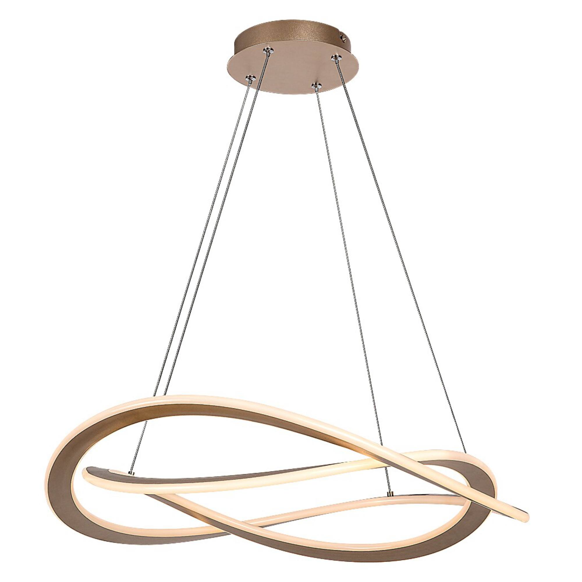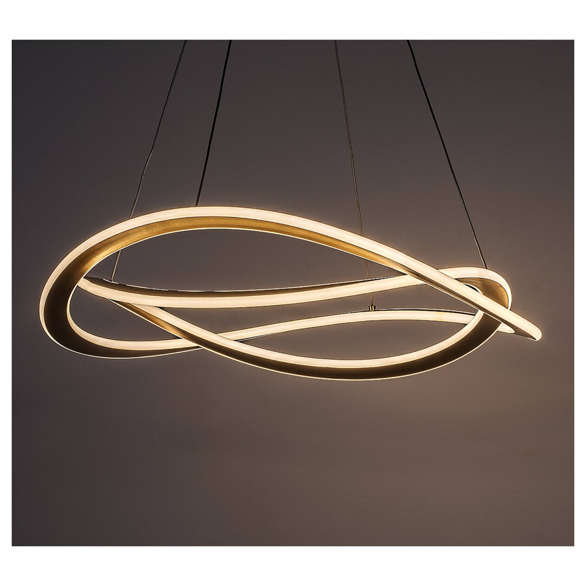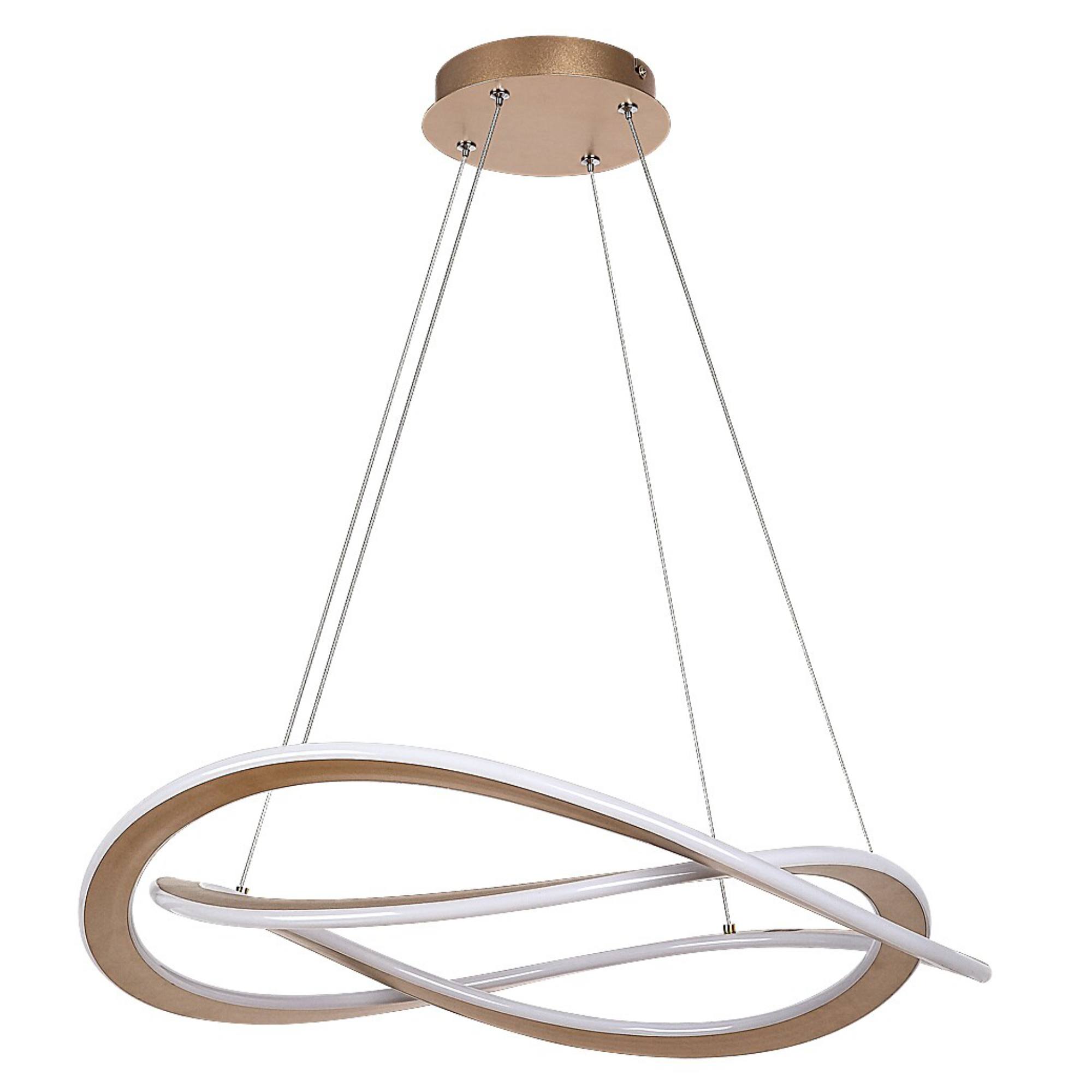 Zaujme svojou konštrukciou, zloženou z 2 rôzne veľkých kruhov v mierne vlnitom tvare, ktoré zo svietidla vytvárajú jedinečný dizajnový prvok každej miestnosti. Je vyrobené z kovu v zlatej farbe a upevnené pomocou laniek k okrúhlej základni. Bude ideálnym osvetlením nad konferenčný či jedálenský stôl.