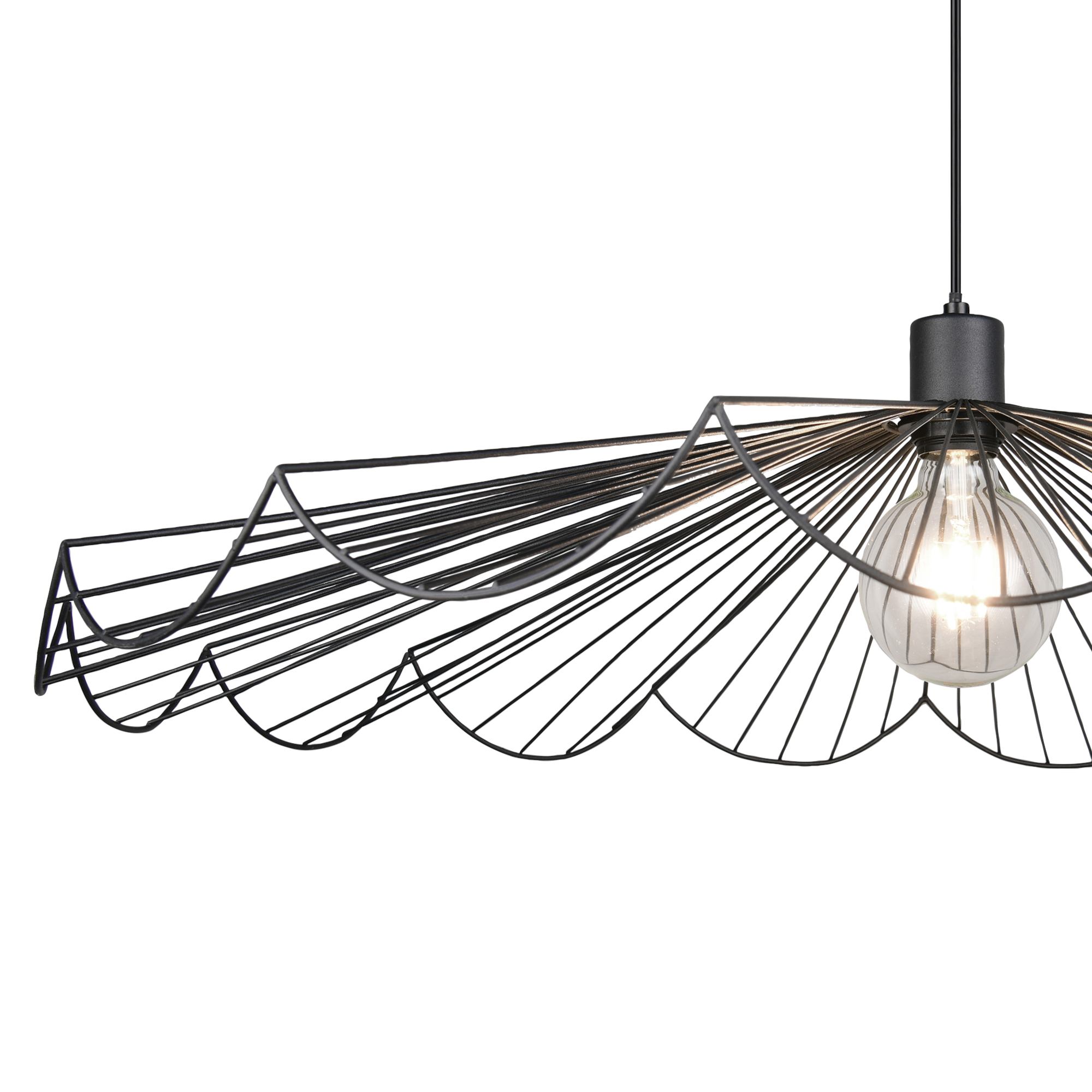Má kovovú konštrukciu v čiernej farbe. Disponuje unikátnym tienidlom pripomínajúcim rozkvitnutý kvet. Vlnitá otvorená konštrukcia pôsobí jemne a elegantne. Doplní moderný aj klasický interiér, či už ho umiestnite do obývačky, spálne alebo nad jedálenský stôl.