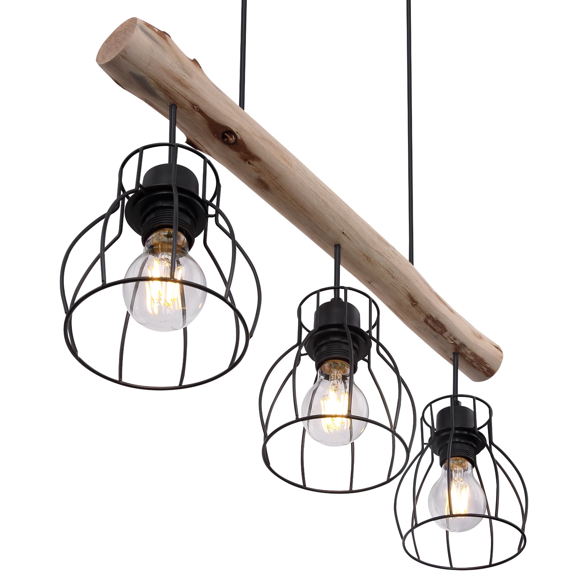 Závesné svietidlo MINA - čierny kov/svetlé drevo