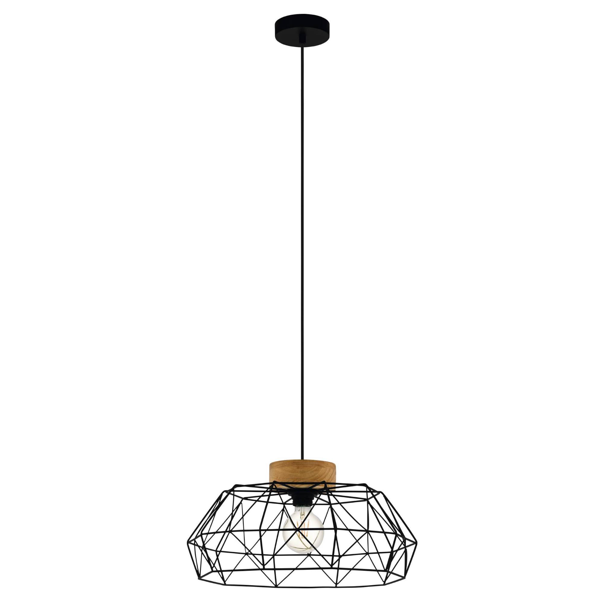 Závesné svietidlo PADSTOW - čierny kov/svetlé drevo