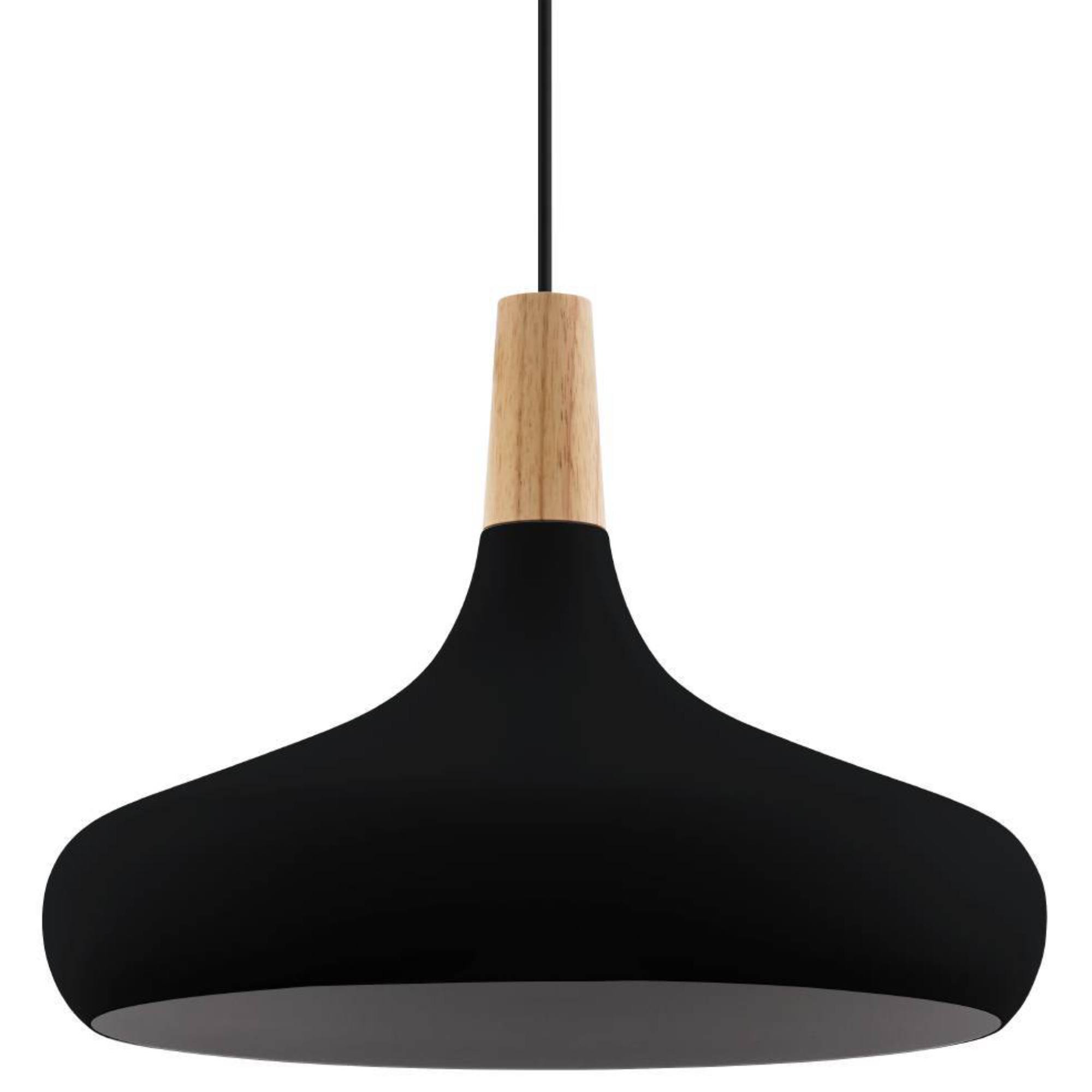 Závesné svietidlo SABINAR - čierny kov/svetlé drevo, priemer 40 cm