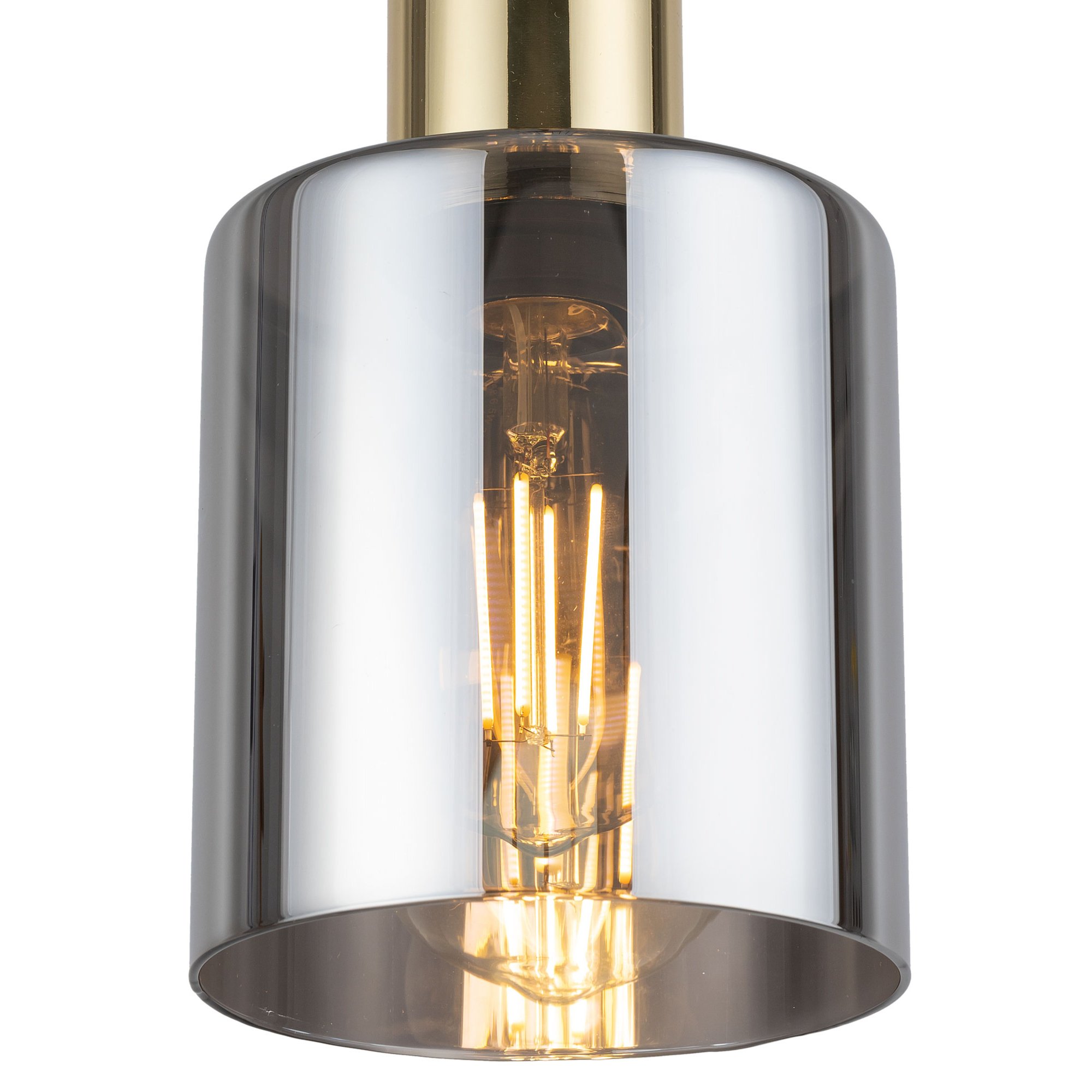 Má malú čiernu základňu, na ktorej je zavesené tienidlo zo skla s dymovým efektom a doplnené zlatým detailom. Zaručene oživí každú miestnosť a dodá interiéru luxusný nádych. Je ideálnym osvetlením nad barový pult alebo konferenčný či jedálenský stôl. Odporúčame použiť žiarovky so zaujímavým dizajnom, čím posuniete svietidlo na vyššiu úroveň.
