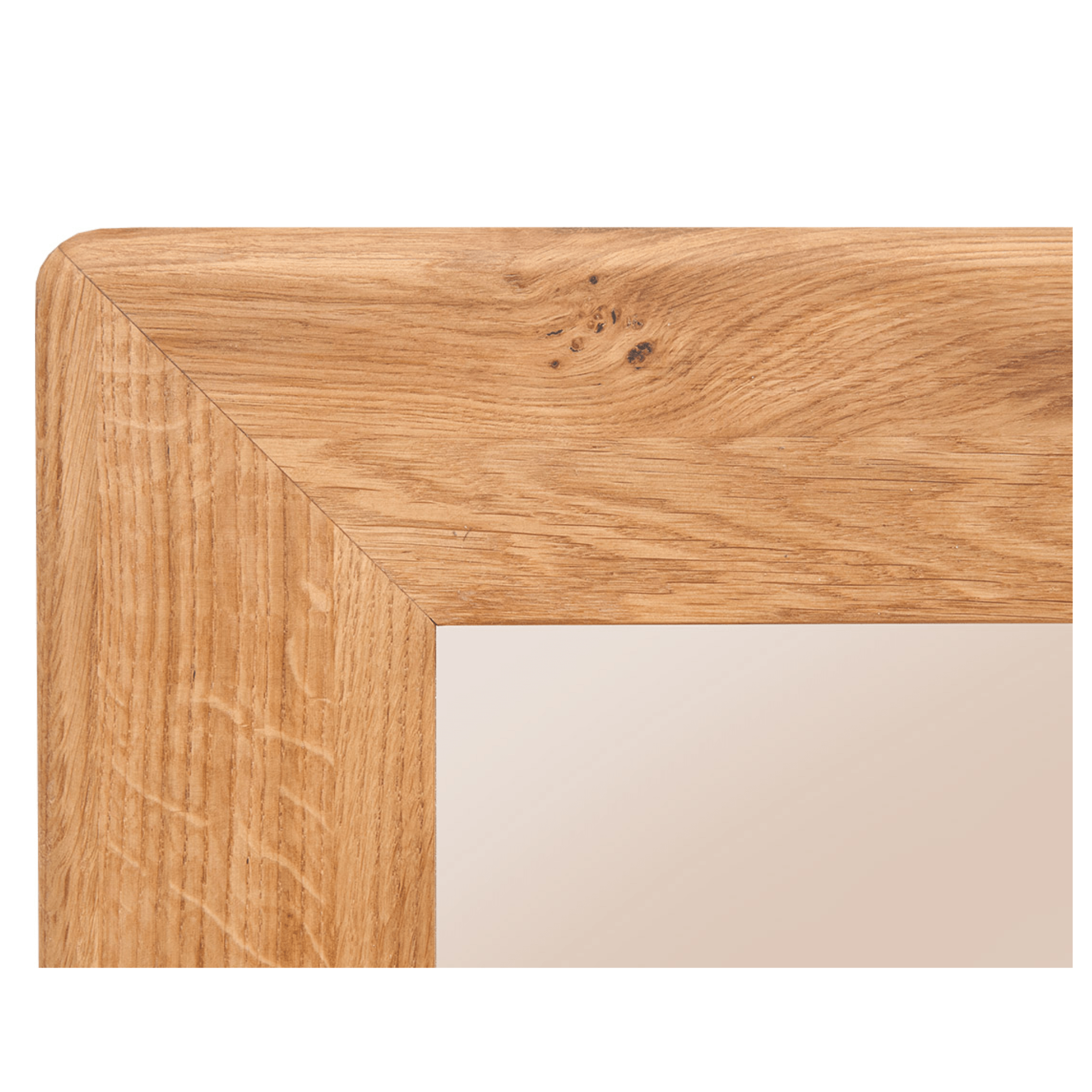 Rám tohoto obdĺžnikového zrkadla je vyrobený z masívneho dubového dreva, ktoré dodáva potrebnú odolnosť a životnosť. Vyhotovené je v prírodnom vzhľade s prírodnou kresbou dreva, ktorá robí z každého kusa originál. Praktické nástenné vyhotovenie predstavuje bezpečnejšie riešenie, ktoré šetrí cenné miesto v miestnosti oproti stojacím zrkadlám.