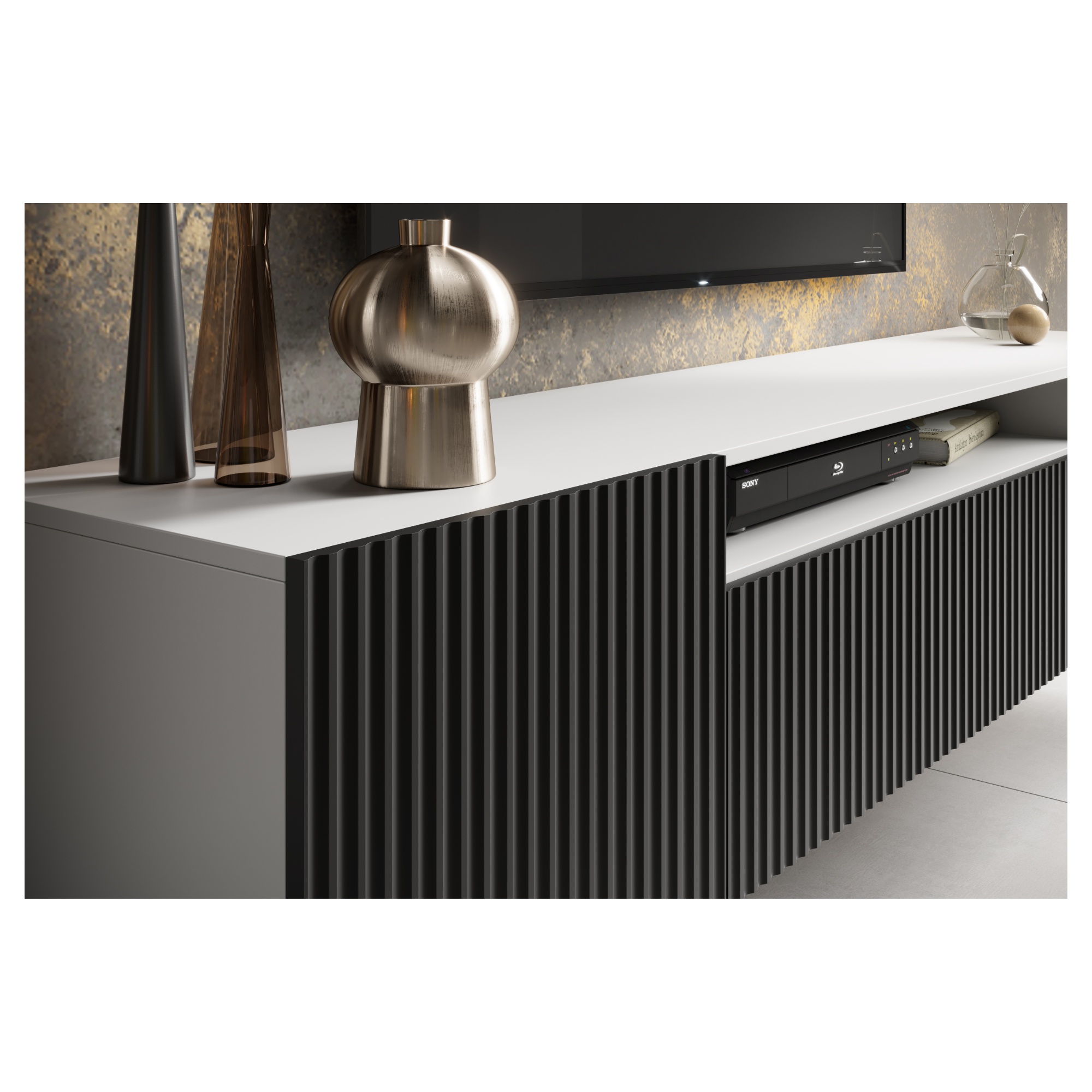 Závesný TV stolík NONIE, ktorý zaujme štýlovým bezrúčkovým prevedením, moderným vzhľadom i praktickosťou, dokonale zapadne do každej obývacej izby.