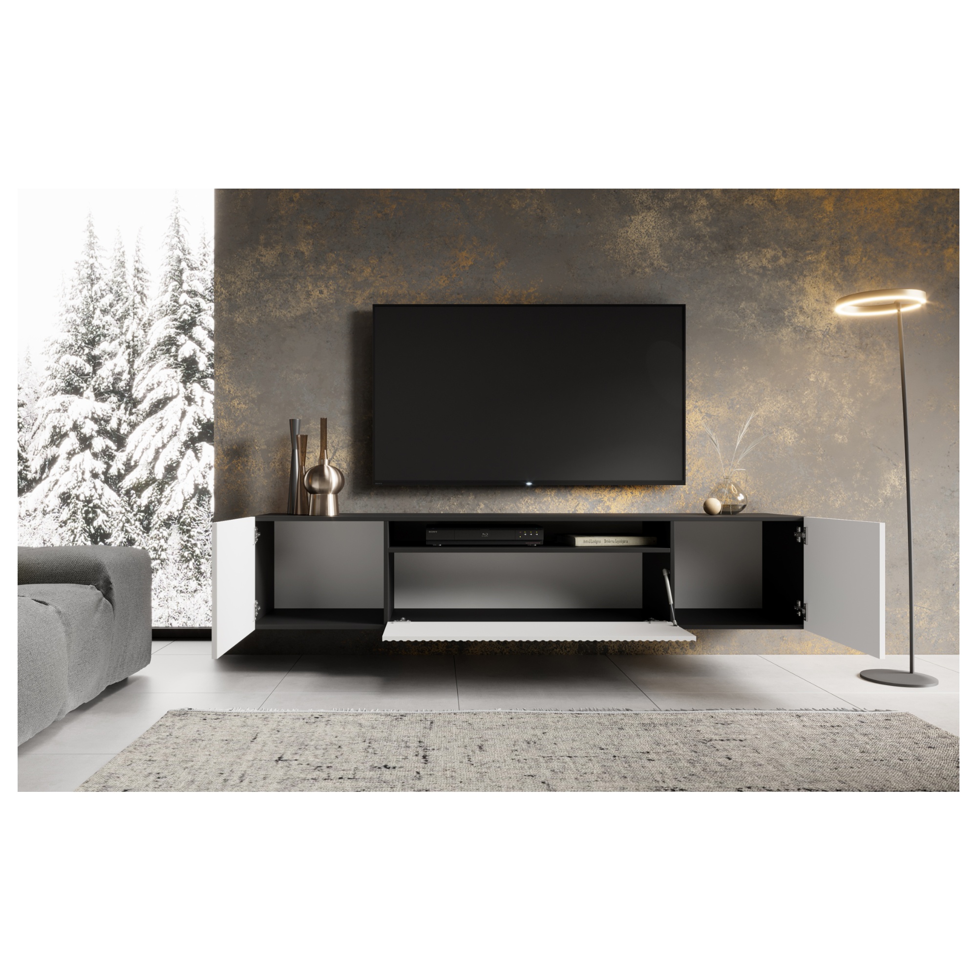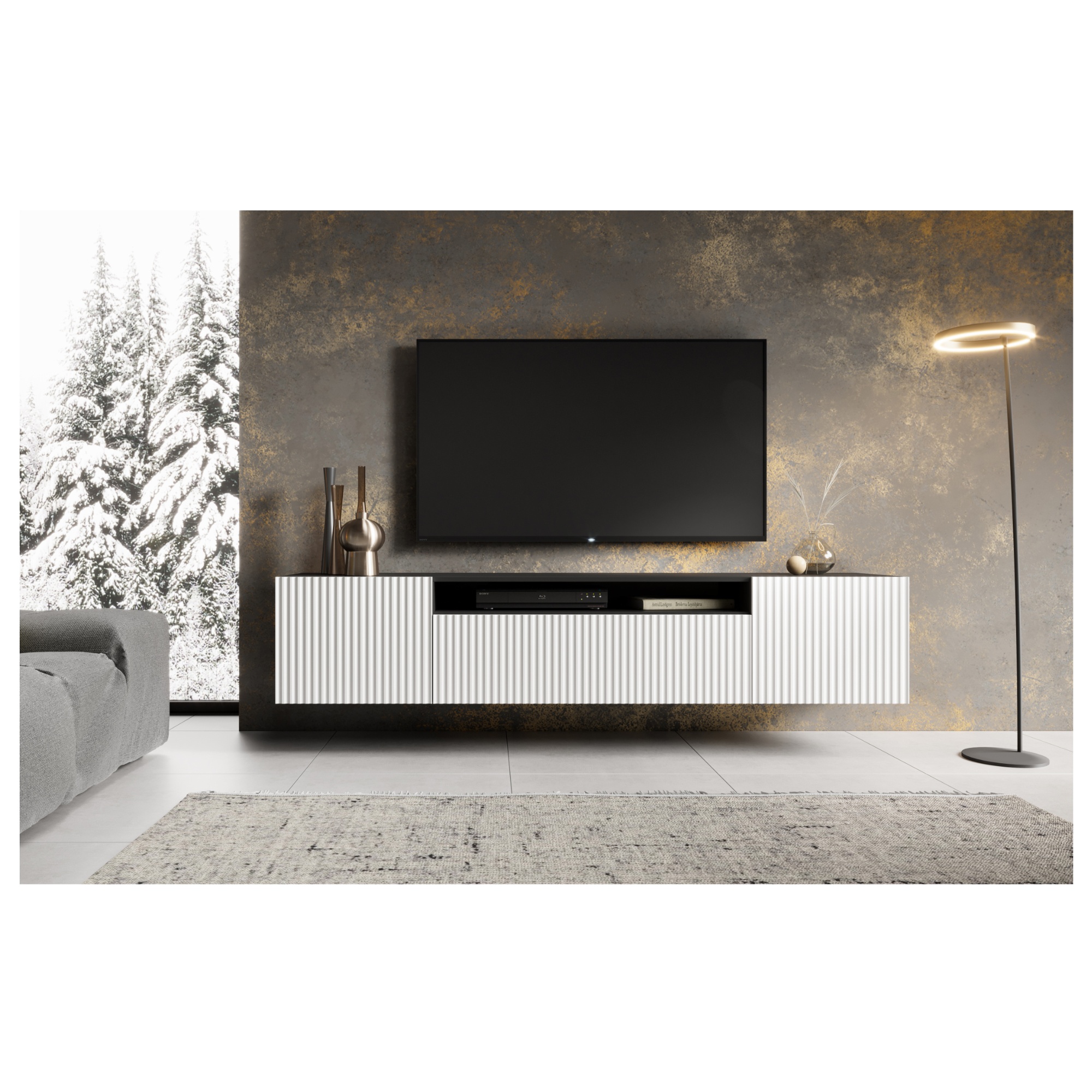 Závesný TV stolík NONIE, ktorý zaujme štýlovým bezrúčkovým prevedením, moderným vzhľadom i praktickosťou, dokonale zapadne do každej obývacej izby.